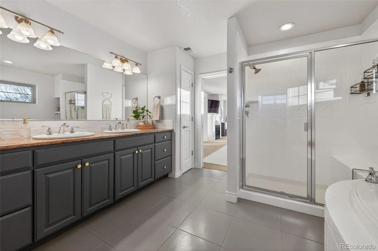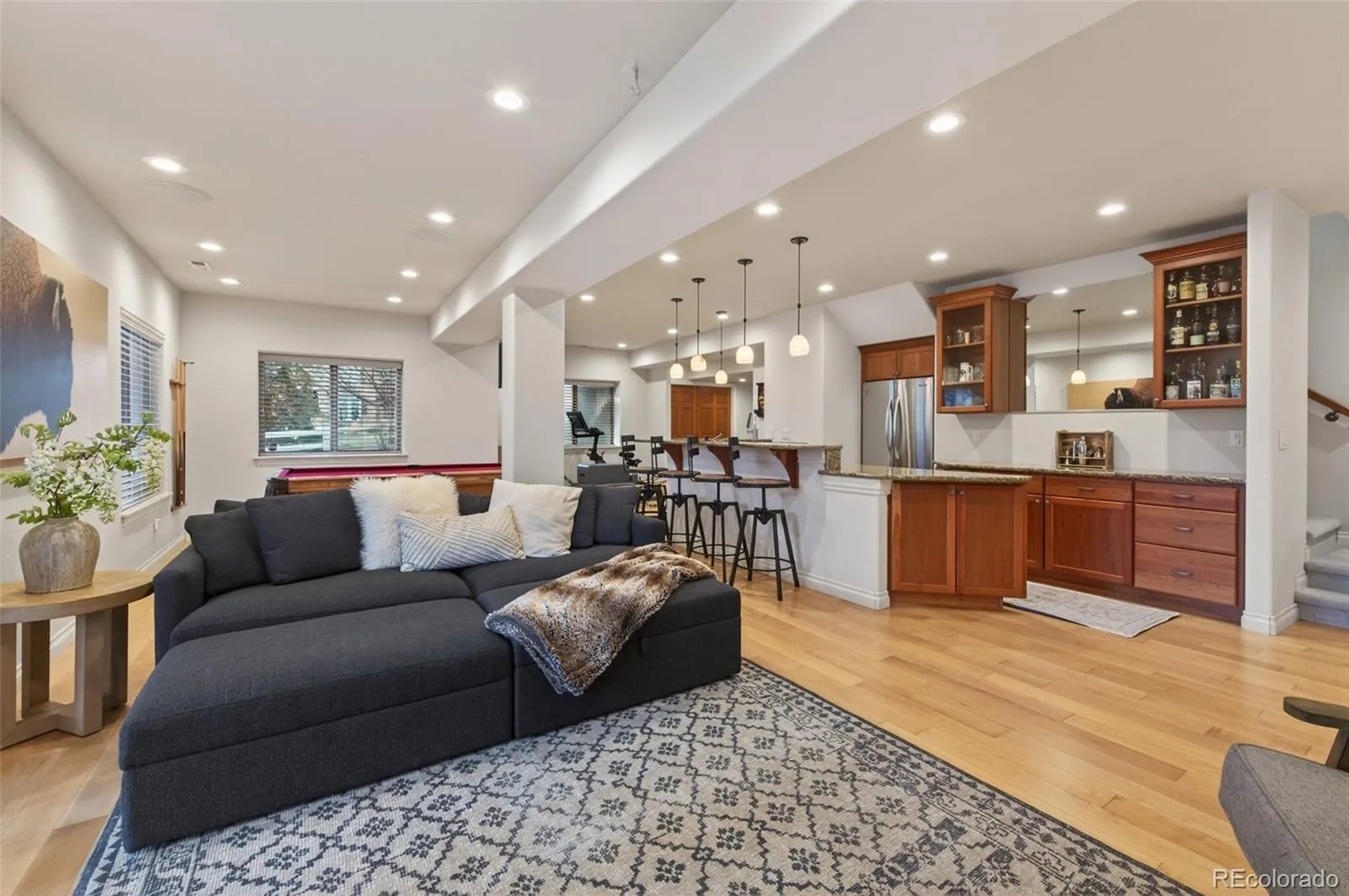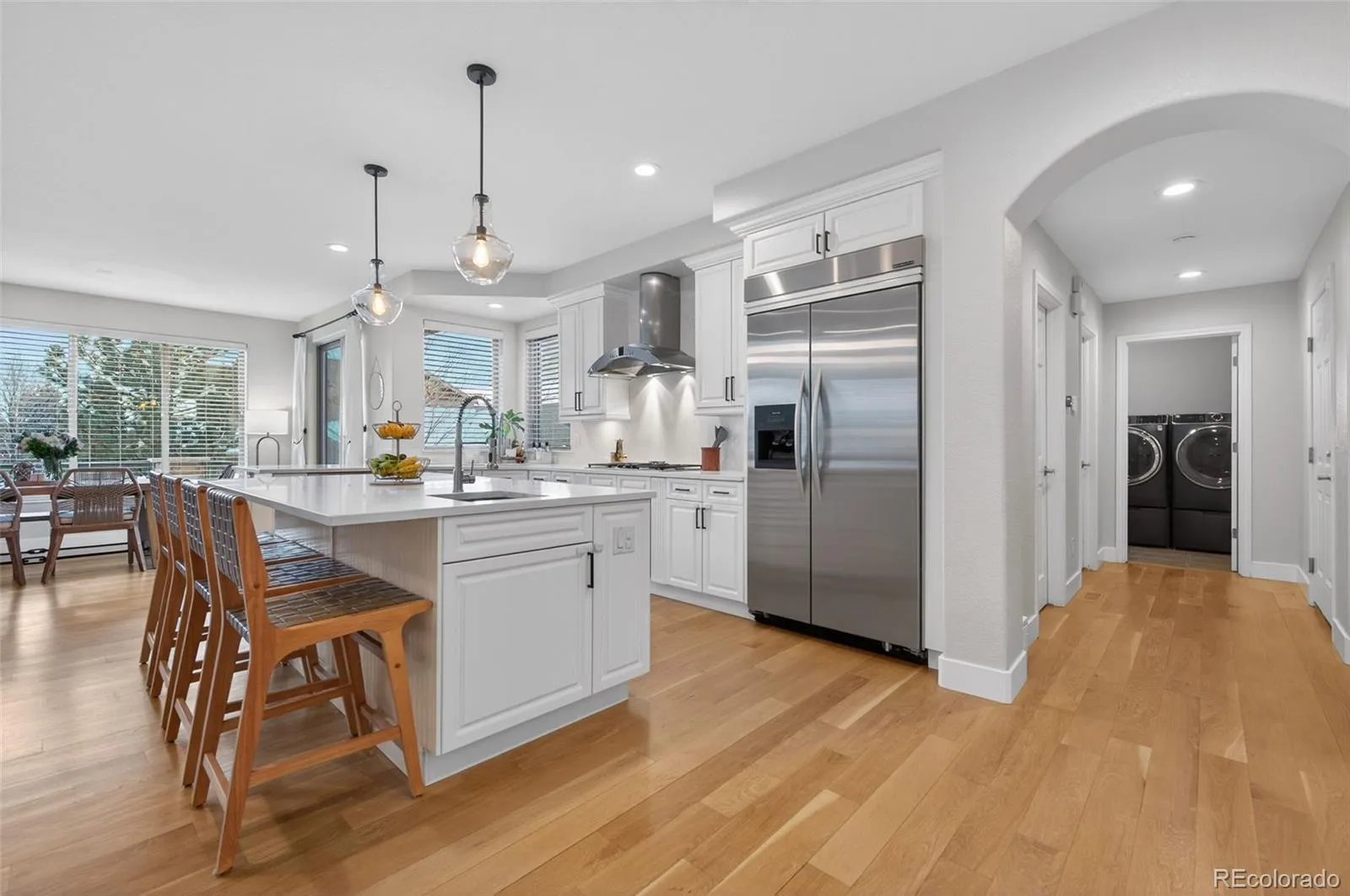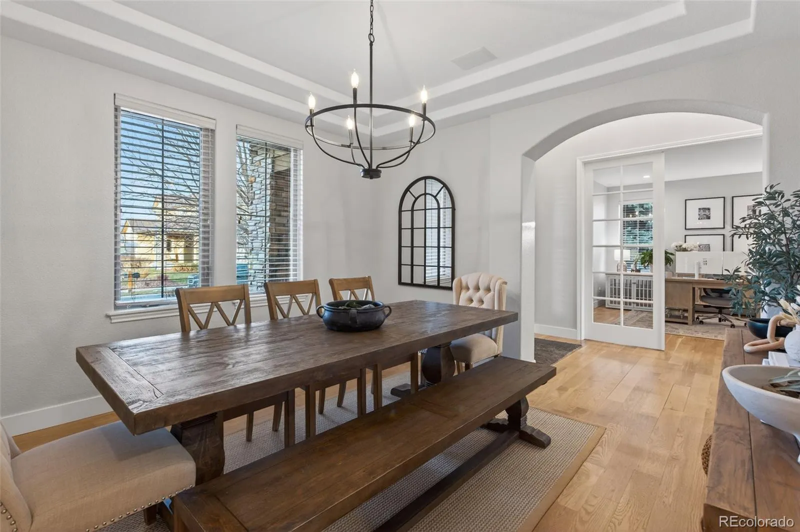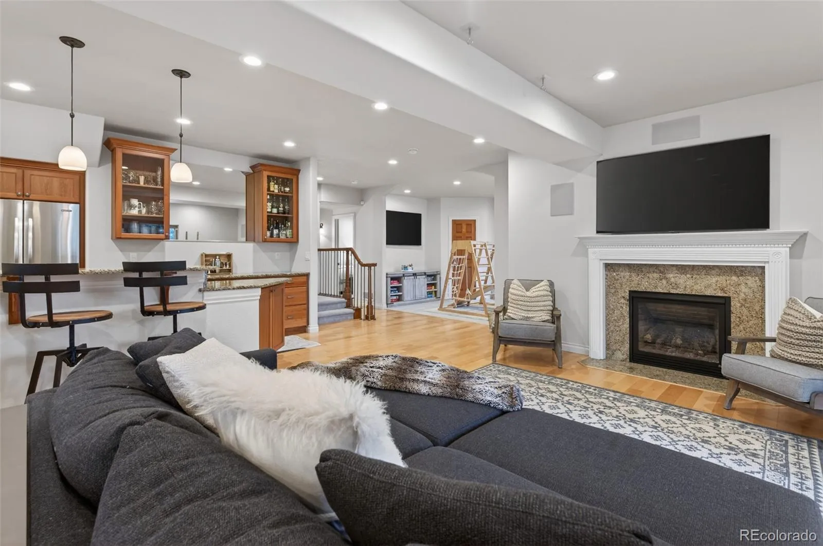Welcome to “The Fairway House”, a refined 6-bedroom, 5-bath oasis on a lovely corner lot, ideally located in Broomfield’s highly desirable Broadlands Island neighborhood. With 5,570 sq ft of light-filled living, the home pairs high-end finishes with thoughtful design for an atmosphere that has everyone who steps inside exhaling and enjoying the space’s specialness. Stepping inside, you will first notice the wide-plank white oak floors, abundant windows, custom lighting, and designer window treatments. The main living room centers on a floor-to-ceiling Venetian plaster fireplace with tailored built-ins. The chef’s kitchen features a high-output gas range, double ovens, luxury built-ins, prep sink, walk-in pantry, and a butler’s pantry with custom wine storage. Two main-level offices—one with a private deck & pass-through fireplace—offer flexible workspaces. The vaulted primary suite captures mountain views & includes a private deck, jetted tub, dual sinks, and a generous walk-in closet; every bedroom has ample closet space & abundant storage throughout. The walkout basement offers 9-foot ceilings, a half kitchen, a large bonus room, and a dedicated gym space. Practical upgrades include whole-home water filtration, wired audio, remote-access security and garage doors, and an oversized three-car garage with built-ins. The list of desirable finishes and characteristics goes on, but you must visit this home to appreciate its indoor/outdoor flow, which is ideal for entertaining. Beautiful inside and out, with tranquil, low-maintenance water features, a new perimeter fence, a wrap-around deck, a covered porch, outdoor lighting, and fully irrigated, professional landscaping. The location rivals the home itself, situated near Boulder Valley schools, parks, trails, a private community pool and clubhouse, Omni Interlocken Golf Club, and Flatiron Crossing. Don’t wait, set your showing today and experience this luxurious yet comfortable and inviting home for yourself!