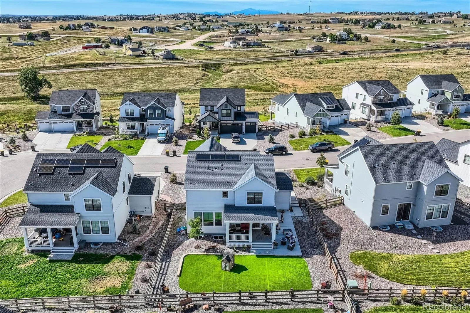 gathering around a fire pit. The low-maintenance backyard features turf grass, saving on water bills and upkeep. The home