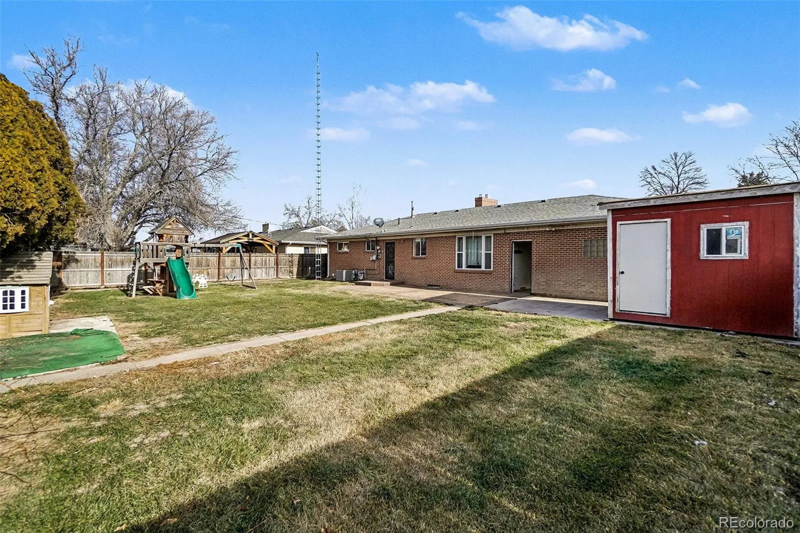 Located in the heart of the desirable Park Lanes neighborhood and close to local parks, this classic brick ranch offers solid bones and great potential. The home features 3 bedrooms and 2 bathrooms, two fireplaces, and a full basement that is mostly finished, providing plenty of flexible living space. A 2-car attached garage adds convenience, while alley access opens to a spacious backyard with a large stamped concrete patio—perfect for entertaining or relaxing outdoors. Additional features include a storage shed and a charming playhouse. This property needs work throughout, making it an excellent opportunity for buyers looking to renovate, customize, or invest in a well-located home with timeless appeal.