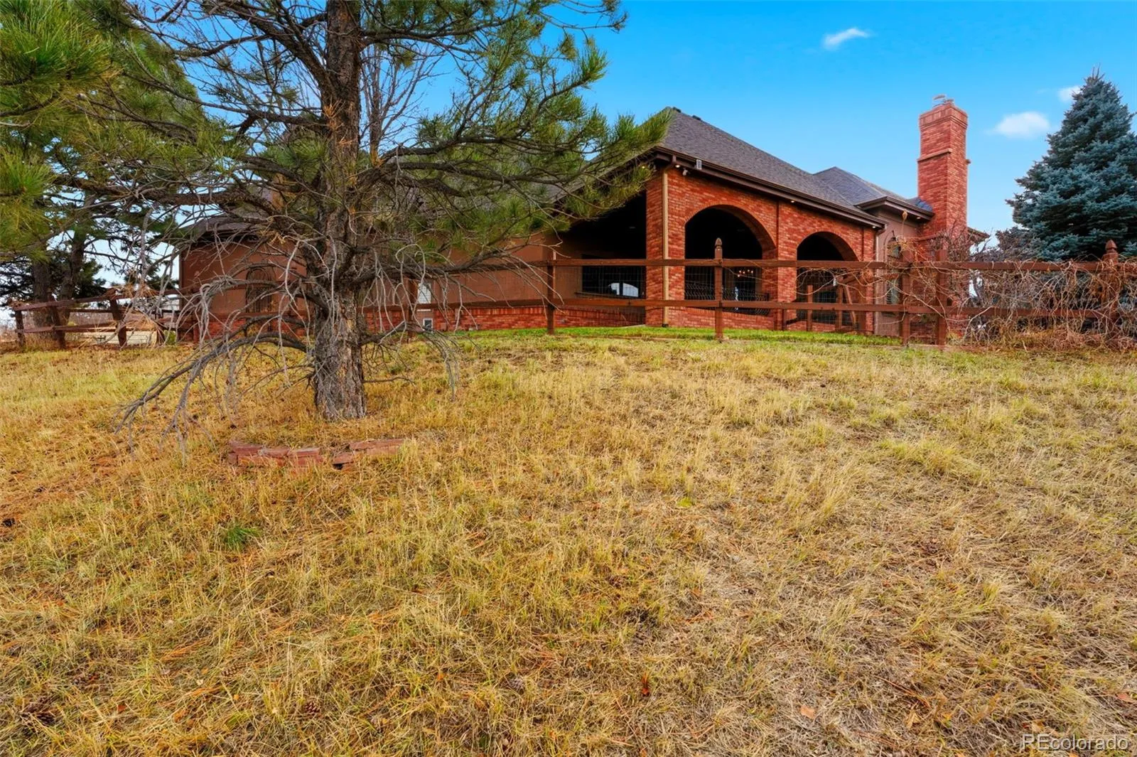 What a beautiful setting. Almost 11 Acres. Wonderful views of the front range, close proximity to Denver, Castlerock and Colorado Springs. You can wash dishes and watch the elk, deer and fox run through the pasture. The entry has a beautiful 10 ft solid wood door. The living room is almost 20 x 20 with gas fireplace and wooden hearth. The kitchen has granite countertops, 6 burner gas cook top with pot filler, trash compactor, a double sink and one in the island, 2 dishwashers, 2 freezer drawers, sub zero refrigerator, Thermador stacked oven and a walk in pantry. What a great kitchen for entertaining or for the person that enjoys cooking. Right off the kitchen is an office desk. The master suite is 28 x 15 with a walk out to the balcony, sitting area, gas fireplace. the bath is 16 x15 with a jetted tub, 2 separate counters with sinks and 2 separate walk in closets. The second bedroom and office are joined by a jack and jill bathroom. The office could also make a beautiful library. The upstairs is an open slate with a large room and a bath. Guestroom, game room, office, craft room, just about what ever you need. The basement has a family room that is 41 x 23, with wet bar, wine room, 2 large bedrooms with walk in closets, and lots of storage The mechanicals in this home are 2 – 50 gal water heaters and 2 separate furnaces, central air, humidifier and water softener. Nothing has been missed in this wonderful, beautiful home. Now, the outside. You will find a 29 x 11 covered deck, fenced backyard and a paved road to get there. This property is zoned for horses and comes with a barn with 4 stalls, tack room and a small arena. This is such a wonderful area to call home. You need to take a look at it today.