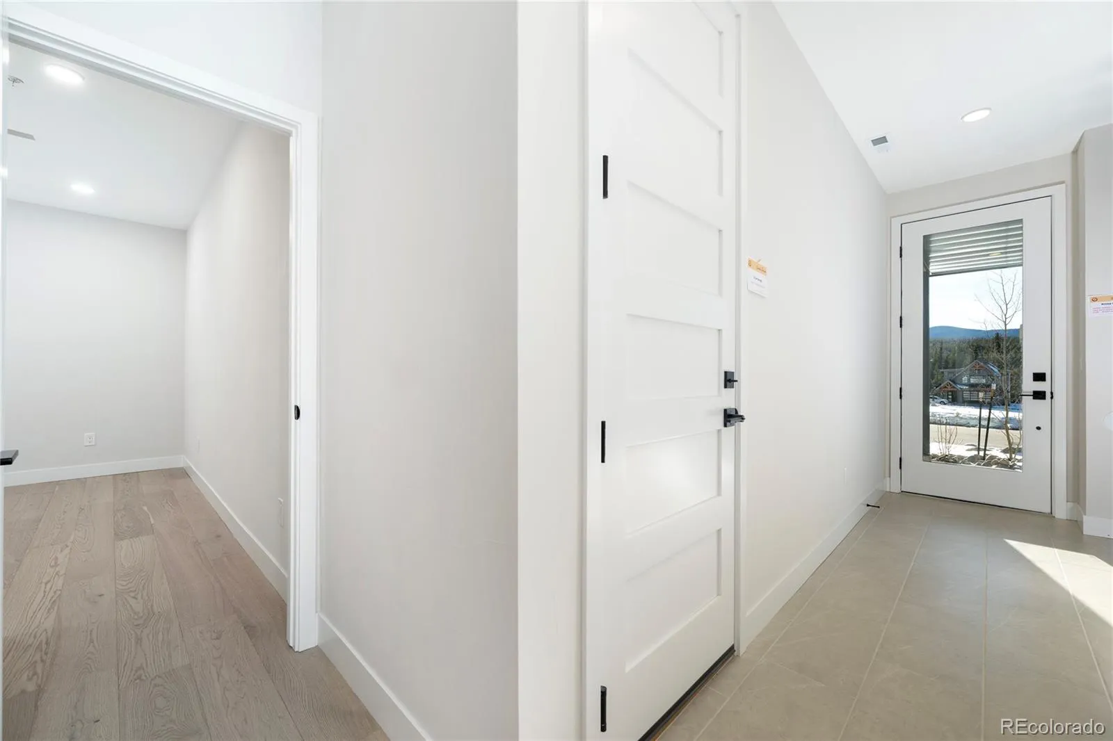 Introducing our largest floor plan to date, a contemporary retreat nestled in the serene setting of Winter Park, CO, just a 5-minute walk to Hideaway Park. This stunning home boasts a sleek, modern design with 4 bedrooms & 4 bathrooms, offering 2,115 square feet of refined living space plus 230 sq ft on the deck! The open floor plan starts with a welcoming foyer including a built-in “drop zone” for organizing essentials. Bask in the natural light streaming through 500+ sqft of floor-to-ceiling windows, perfectly positioned to capture breathtaking mountain views. The heart of the home is here, an enormous great room with fireplace, seamlessly connects to a large wrap around deck—ideal for entertaining or savoring the peaceful surroundings. The gourmet kitchen is equipped w/ Black SS KitchenAid appliance package, including hood above the gas range & under-counter microwave. Oversized island, ample counterspace with quartz tops, near private outdoor patio with more than 150 sqft – hot tub ready, allowing for easy indoor-outdoor living. Open-iron rail stairway enhances the spaciousness of the great room. The upper floor includes a luxurious primary suite, featuring enormous shower, double sinks, & a walk-in closet, offering a tranquil escape within the home. Two additional bedrooms on this floor share a full bath, ensuring comfort & privacy for all occupants. This level also includes convenient laundry closet. A fourth bedroom awaits on the lower level, complete with a 3/4 bathroom, creating a separate private quarters—perfect for guests or a secluded retreat. Additional amenities include an oversized, EV-ready 2-car garage + 2 driveway spots to meet all parking & storage needs. Whether you’re hosting lively gatherings on the deck or enjoying quiet moments of relaxation, this home is designed for both entertainment & rejuvenation, offering endless opportunities for recreation & leisure. Your mountain lifestyle awaits in this exceptional Winter Park residence.