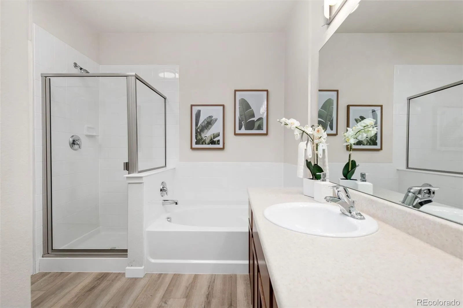 Welcome to this beautiful 2 bed, 2 bath spacious 1st-level condo in a prime Broomfield location! Do you travel frequently for work or appreciate getting to Union Station in only 15 minutes? If so, you’ll love the convenience of having a Flatiron Flyer stop at your complex going directly to & from DIA, and being only a hop-skip-jump from the RTD Westminster rail station! This well-designed floorplan is perfect for roommates, featuring two primary suites with two separate full bathrooms for added privacy. This 1277 sq ft model has a separate dining nook that other similar 2-bedroom units may lack and provides adequate space for a full-size dining table! In this highly flexible floorplan the 2nd bedroom could also be used for a gigantic home office, storage space, craft room, or second living room! Step inside to find brand new carpet and luxury vinyl flooring throughout, as well as new light fixtures adding that modern feel you’ve been searching for. The kitchen includes stainless steel appliances, granite counters, bar seating, and a pantry too! The living room has desirable entertainment potential with plenty of space for a sectional sofa and large TV. This ground access patio will also be very convenient during your move-in! You’ll also enjoy a nearby covered parking garage with assigned parking spot conveniently close to the unit for easy access. Enjoy the convenience of being able to walk to Starbucks and other nearby amenities! With just a 5-minute drive to Flatirons Mall and 15 minutes to Boulder, you’ll have quick access to shopping, dining, and entertainment always at your fingertips. Plus, commuting in any direction is a breeze with easy access to the toll road, Hwy 36, and the rail station. This condo combines comfort, convenience, and modern updates, making it an ideal place to call home. Don’t miss out on this fantastic opportunity! **This condo IS WARRANTABLE ***