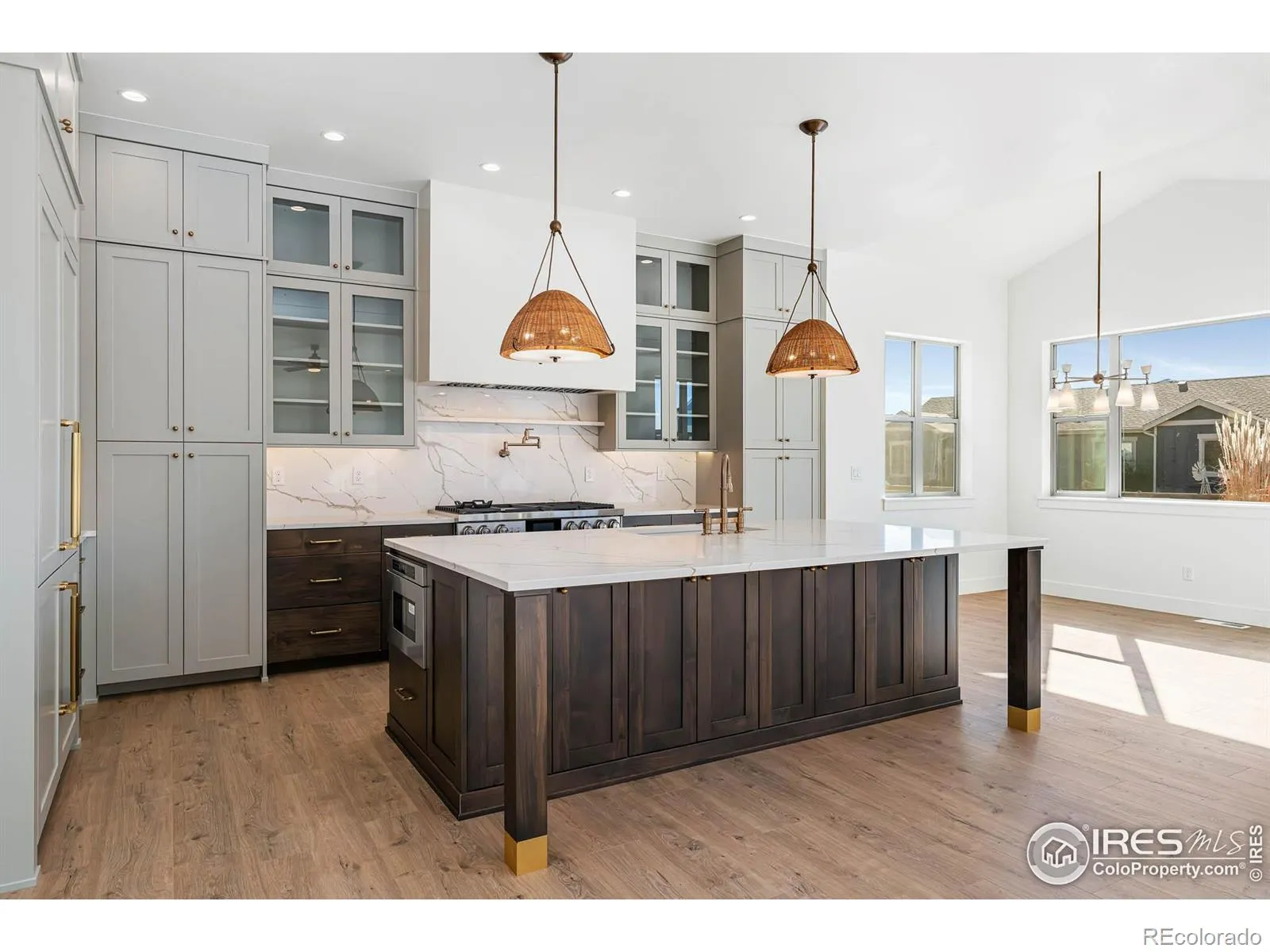 Contract now and move in this summer. This thoughtfully designed two-story home offers a private main-floor guest or in-law suite-perfect for multigenerational living. Located in the highly desirable Greenspire at Windsor Lake community, it sits on a 12,325 sq ft south-facing garden-level lot backing to a private greenbelt. Natural light fills every level, including the basement, and you’re just a short walk to Windsor Lake and downtown Windsor for the best blend of peace and convenience.Arrive to custom double front doors, striking curb appeal, and a dedicated study ideal for working from home. The main-floor guest suite includes an ensuite bath and direct access to the covered front porch. The heart of the home is a gourmet kitchen built for everyday living and entertaining, featuring oversized Dacor appliances (48″ range), a 42″ built-in paneled refrigerator, light-finished Milarc cabinetry with glass uppers and open shelving, warm brass fixtures, a large contrasting island, and quartz countertops. A walk-in pantry with added cabinetry provides extra storage and prep space. The dining nook flows into the living room with a cozy fireplace, and the covered deck is ready for morning coffee or summer BBQs.Upstairs, three bedrooms each feature private ensuite baths, plus a spacious loft and convenient upstairs laundry. The primary suite is a true retreat with a freestanding soaking tub, oversized walk-in shower, generous walk-in closet, and a private balcony.The finished, sun-filled garden-level basement expands your living space with a large rec room, stylish wet bar, an additional bedroom with ensuite bath, and a flexible bonus room ideal for a gym, playroom, or hobby space. A three-car garage offers plenty of storage for vehicles and gear. Front and rear landscaping plus full fencing are included for an easy, stress-free move-in. Schedule your private tour today!