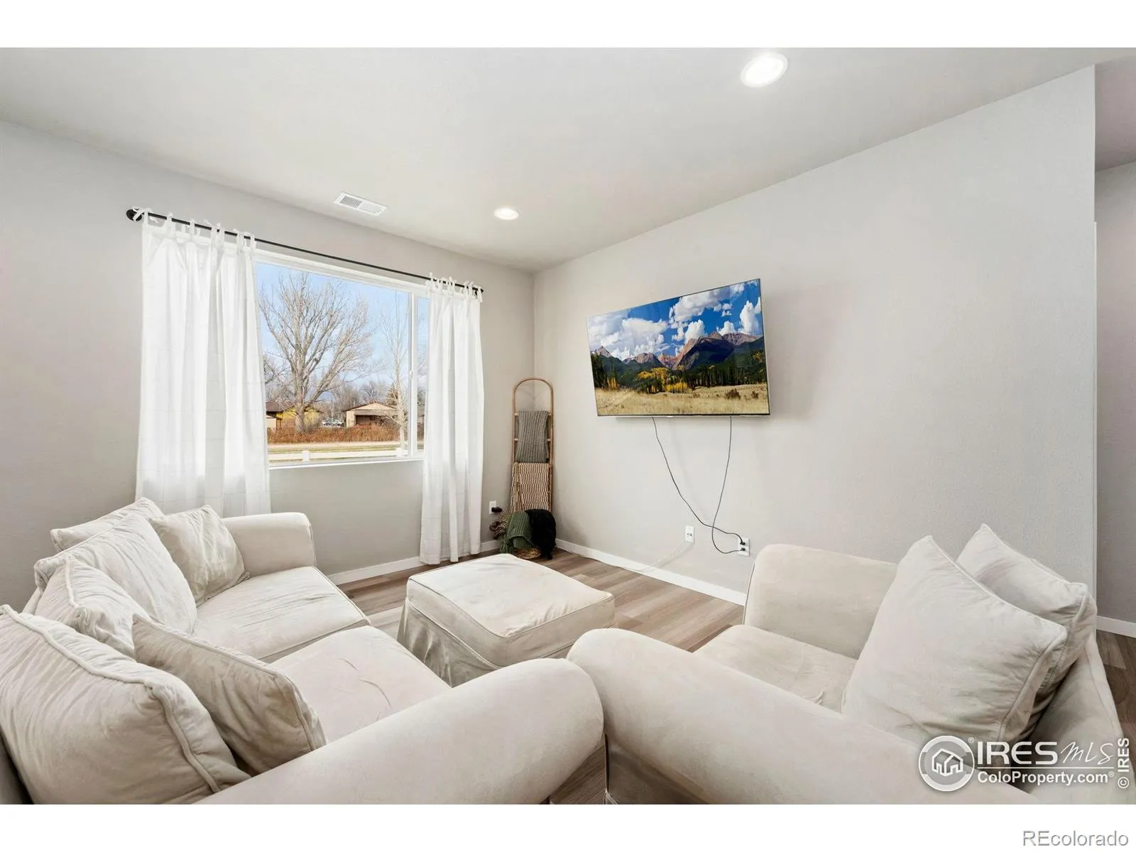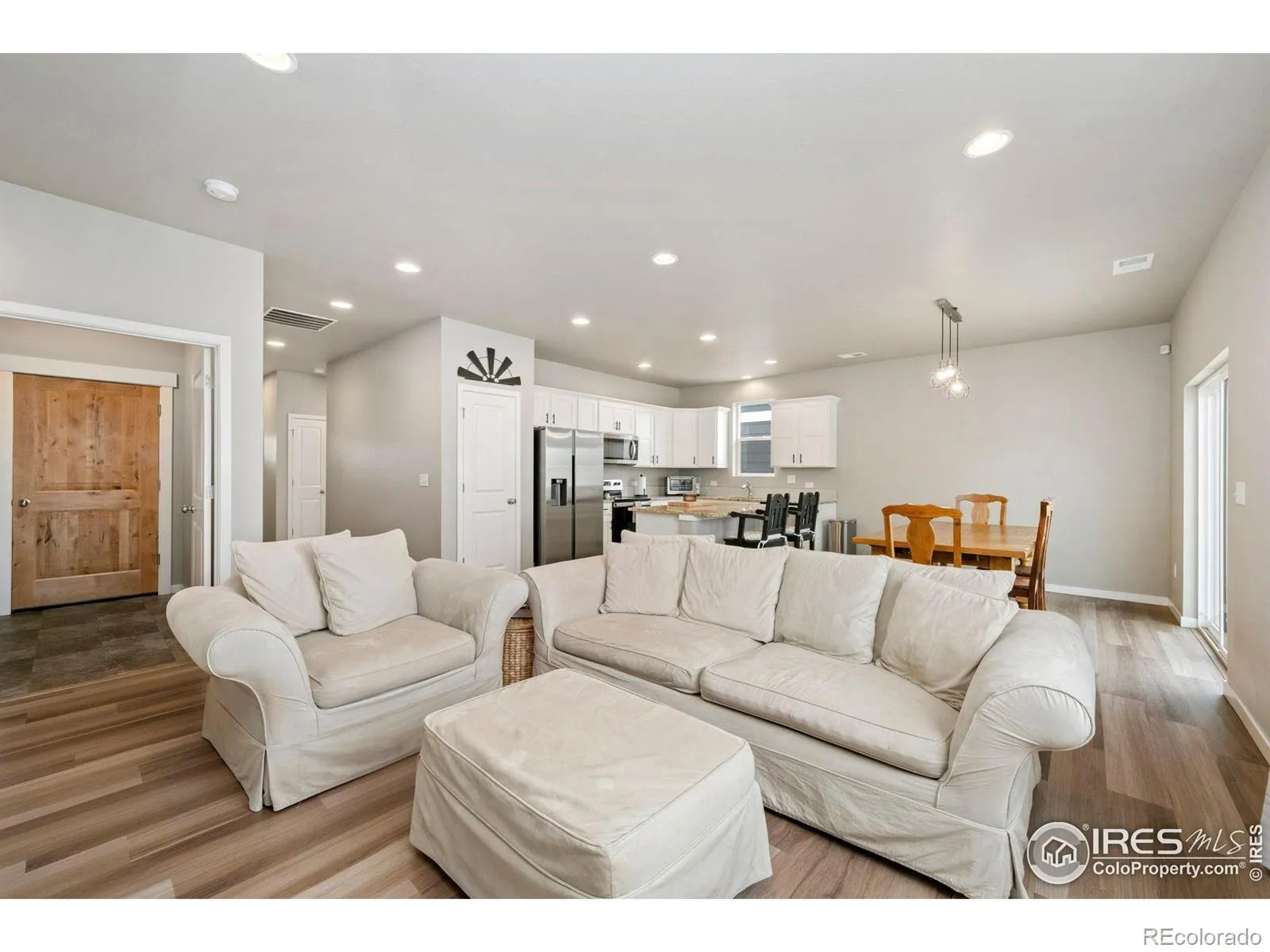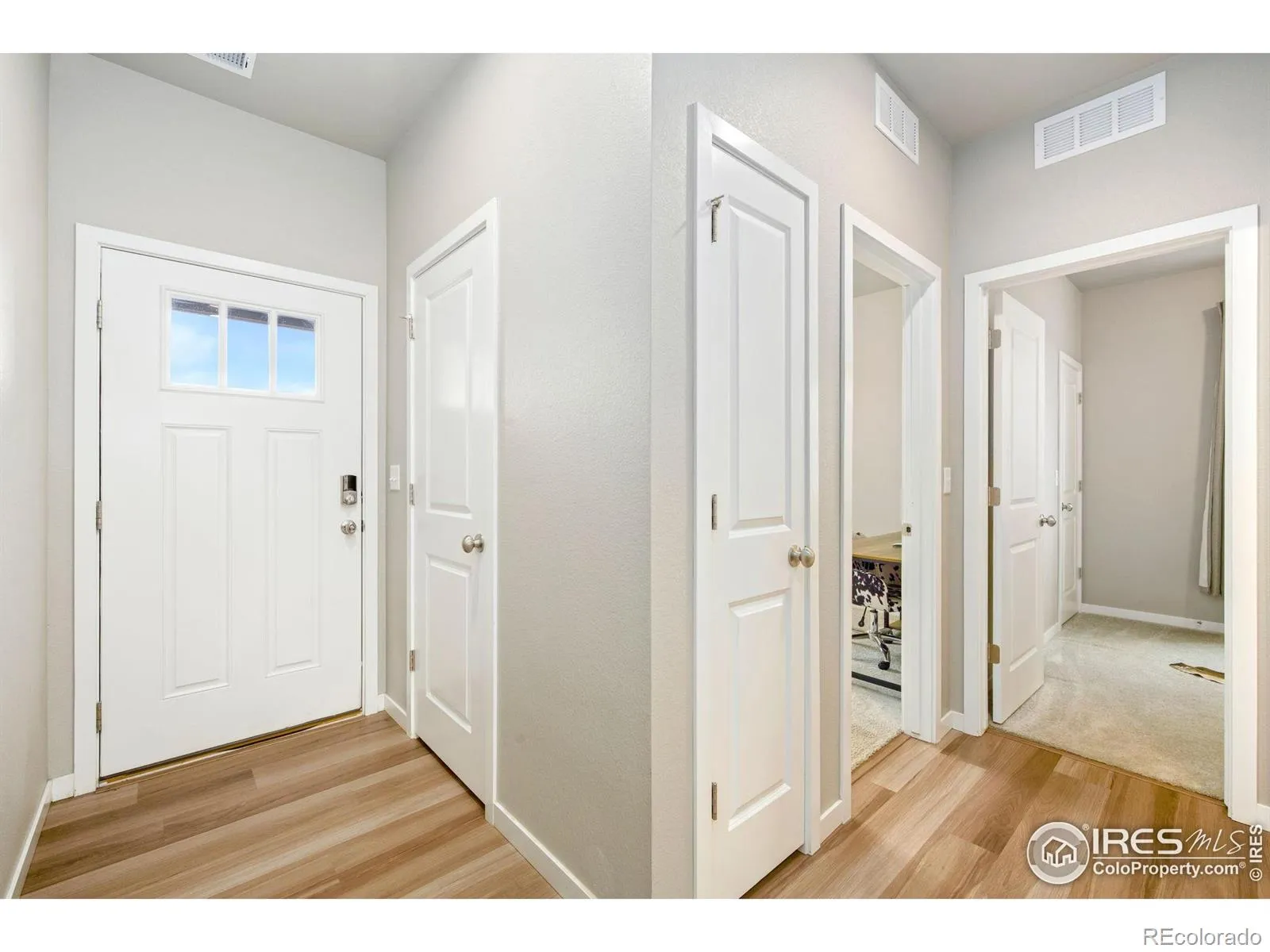 You’ll fall in love with this easy-living, modern-style ranch home in nearly new condition with brand new carpeting in the primary bedroom and closet, all kitchen appliances included plus washer & dryer, backing to a greenbelt so no back yard neighbor and a feeling of spaciousness in the back yard. Great option for those upsizing from a condo or downsizing into one level living. Easy care luxury vinyl plank throughout the main living areas, crisp white trim and stylish two-panel interior doors make everything light and bright. Chef’s delight in the kitchen featuring stainless appliances, granite counter tops, abundant cabinetry plus a pantry. The kitchen is illuminated with numerous can lights and the dining room has a fun light fixture. Retreat to your primary suite after a long day and unwind in the oversized shower. The large back patio overlooks the plush greenbelt and is a perfect spot for summer barbecues or relaxing with your favorite beverage. Full sprinkler system front and back with drip system serviced by non-potable water provided by the HOA. No back-yard neighbor is such a benefit! Three-car garage is 659 sqft and offers plenty of storage space along with room for two cars. This popular floor plan by Hartford was very well built and has been lightly lived in. You’ll enjoy the easy access to Old Town Fort Collins, I-25 for commuting and exploring the great local shops and breweries popping up in Wellington! Home warranty included for added value and extra peace of mind.