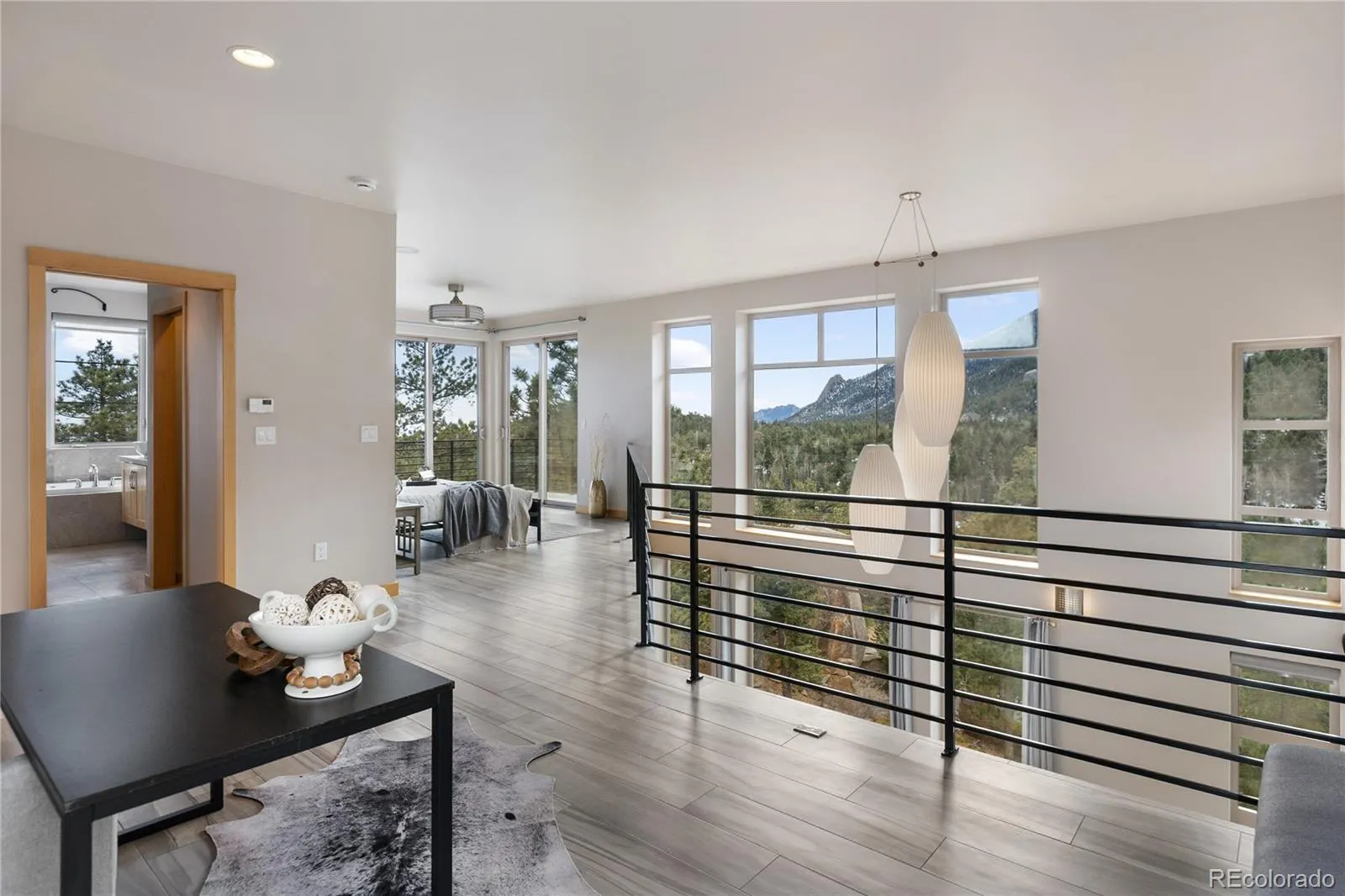 The upper-level primary retreat is nothing short of spectacular, featuring three private terraces with 360-degree views of the Western Rockies and Southern Colorado. A spa-inspired bath with a deep Jacuzzi tub, walk-in closet, and convenient laundry completes this luxurious escape.