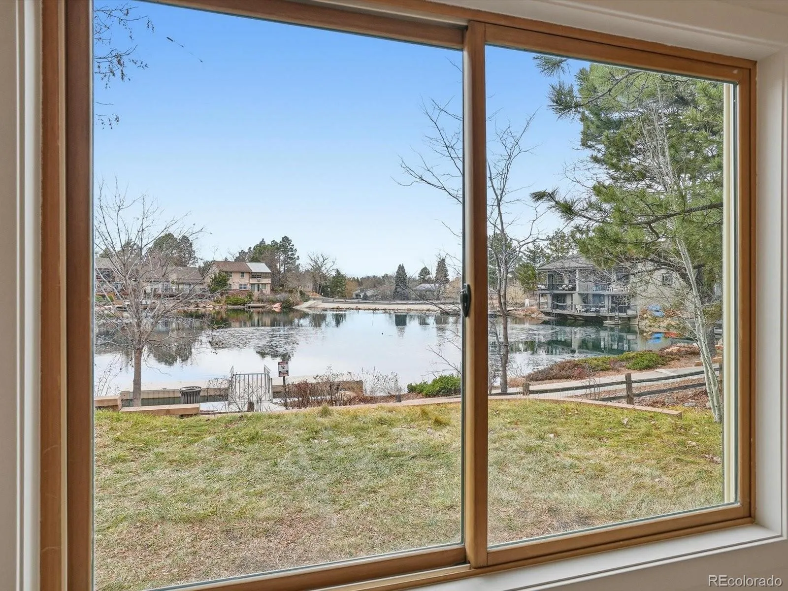 The home offers five bedrooms and four bathrooms, including a beautifully finished basement that adds valuable living space with an additional bedroom and bathroom, ideal for guests, a private retreat, or recreation room. The primary suite is a true sanctuary, complete with a fireplace and private deck overlooking the lake. Two additional main-floor bedrooms provide exceptional versatility, including one with an en-suite bath and another ideal for a home office or guest room. Step outside to the expansive lake-view patio, perfect for morning coffee, evening dinners against a serene water backdrop. With only a limited number of homes positioned directly on the lake, this is a rare opportunity to own a premier waterfront property. All of this is enhanced by award-winning Cherry Creek Schools and easy access to the DTC, I-25, downtown Denver, DIA, shopping, dining, and entertainment. This is refined Colorado luxury, where thoughtful design and an unmatched setting come together.