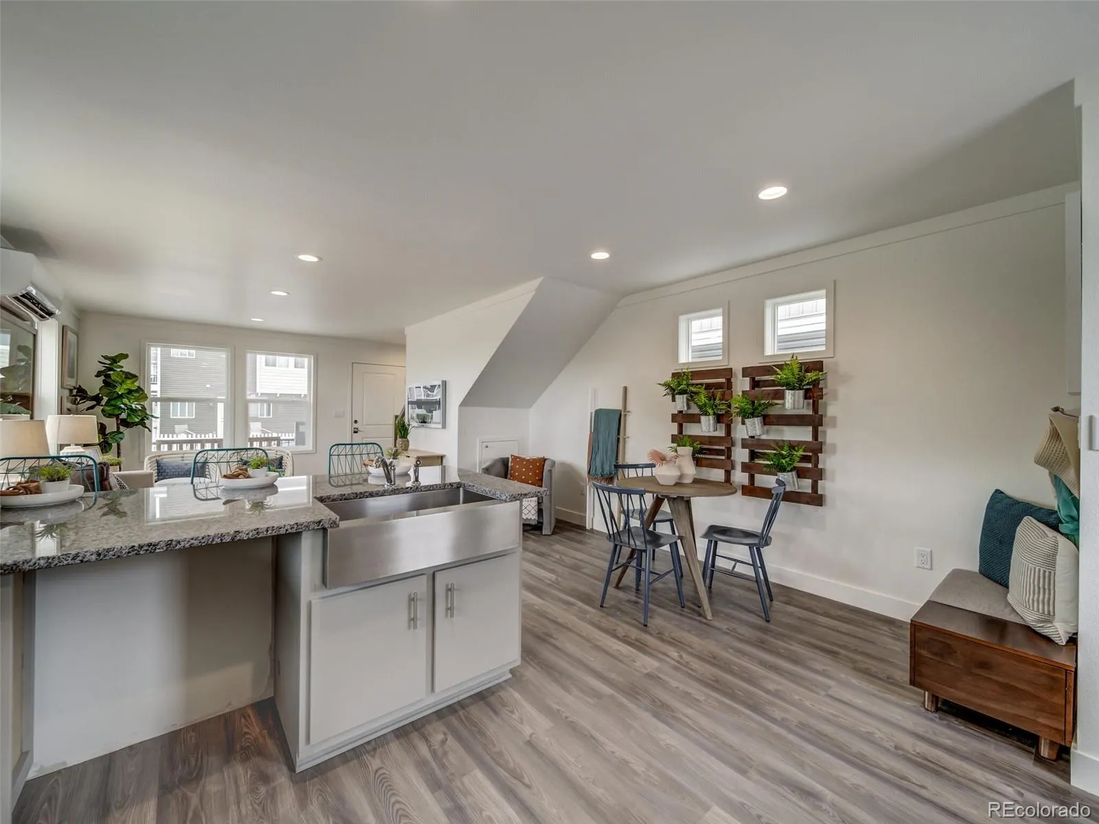 Welcome to the Edison – On2 Collection at Reunion Ridge, a brand-new, energy-efficient single-family home located in Reunion’s vibrant master-planned community, with buyers eligible for up to $10,000 toward their new home when using the preferred lender; restrictions apply, see sales counselor for details. This home features an inviting open-concept main floor with luxury vinyl plank flooring, abundant natural light, and a stylish kitchen with a large island and granite countertops, flowing seamlessly into the living and dining areas. Upstairs offers two bedrooms including a serene primary retreat, a conveniently located laundry closet, and modern bathrooms with clean-line finishes. Enjoy your morning coffee on the charming front porch, along with a detached single-car garage and an additional dedicated guest parking space. Reunion offers outstanding amenities including a 21,000 sq ft recreation center with pools and fitness, 52 acres of parks, trails, lakes, and playgrounds, the Reunion Coffee House, Buffalo Run Golf Course, and excellent nearby schools. Artist renderings shown; photos may differ than actual home.
