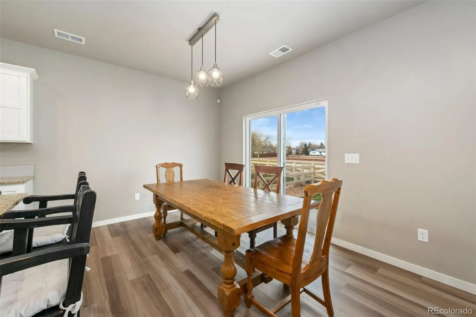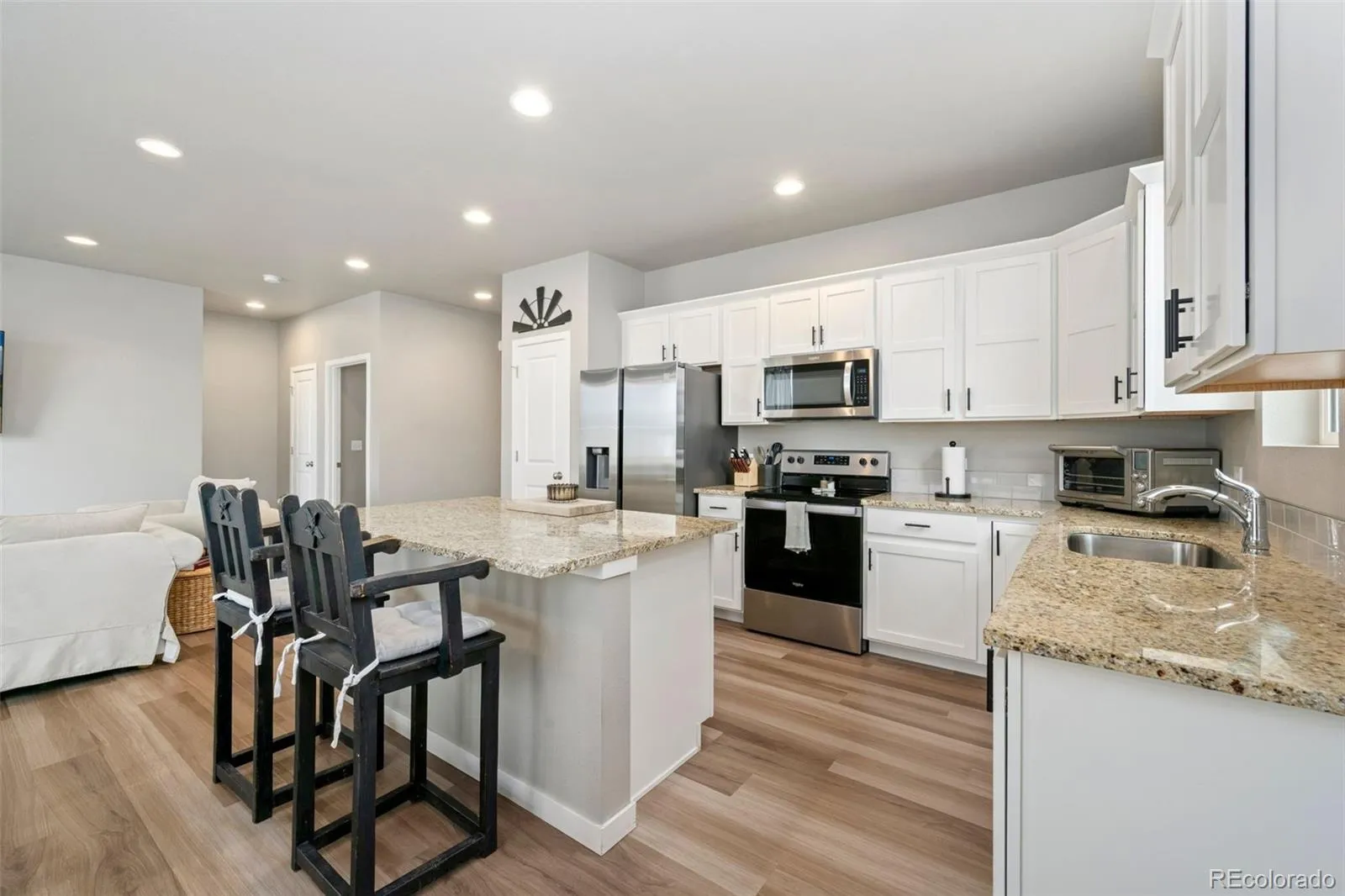 You’ll fall in love with this easy-living, modern-style ranch home in nearly new condition with brand new carpeting in the primary bedroom and closet, all kitchen appliances included plus washer & dryer, backing to a greenbelt so no back yard neighbor and a feeling of spaciousness in the back yard. Great option for those upsizing from a condo or downsizing into one level living. Easy care luxury vinyl plank throughout the main living areas, crisp white trim and stylish two-panel interior doors make everything light and bright. Chef’s delight in the kitchen featuring stainless appliances, granite counter tops, abundant cabinetry plus a pantry. The kitchen is illuminated with numerous can lights and the dining room has a fun light fixture. Retreat to your primary suite after a long day and unwind in the oversized shower. The large back patio overlooks the plush greenbelt and is a perfect spot for summer barbecues or relaxing with your favorite beverage. Full sprinkler system front and back with drip system serviced by non-potable water provided by the HOA. No back-yard neighbor is such a benefit! Three-car garage is 659 sqft and offers plenty of storage space along with room for two cars. This popular floor plan by Hartford was very well built and has been lightly lived in. You’ll enjoy the easy access to Old Town Fort Collins, I-25 for commuting and exploring the great local shops and breweries popping up in Wellington! Home warranty included for added value and extra peace of mind.
