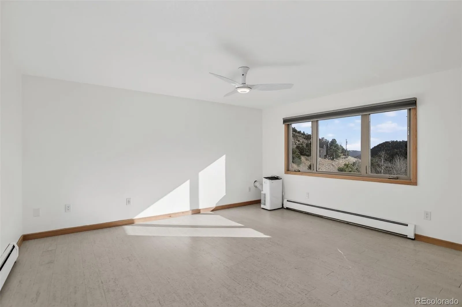 Beautifully updated and thoughtfully designed, this mountain contemporary home in the heart of North Evergreen offers the perfect blend of style, function, and location. Highlights include travertine tile throughout, artistic live-edge finishes, built in appliances and thoughtful amenities, adding timeless warmth and sophistication. The chef-inspired kitchen is a centerpiece, featuring concrete countertops, soft-close drawers, and a custom dog feeding and storage station. The spacious dining room offers plenty of room for large gatherings and features a folding glass door that leads to a beautiful composite deck with stylish wire railings. The great room is anchored by a modern electric fireplace set against a brick accent wall, complemented by natural light and views of the valley. A tranquil primary suite offers a peaceful retreat, providing plenty of rest and rejuvenation. Fitness enthusiasts will appreciate the dedicated home gym with professional flooring, wall mirrors, and space for fitness or dance. The sleek basement office with acoustic panels and wood detailing is perfectly suited for remote work, podcasting, or creative pursuits. The oversized two-car garage provides ample space for vehicles, equipment, and adventure-ready storage and new James Hardie siding enhances curb appeal with durability and modern design. Outdoor living is equally impressive, with a private turf dog run, a custom henhouse and a shed for tools, gear and mountain toys. Close to shopping, dining, hiking, golf, downtown Evergreen, and Evergreen Lake. Just minutes to I-70, providing an easy commute to Denver or world-class ski resorts.