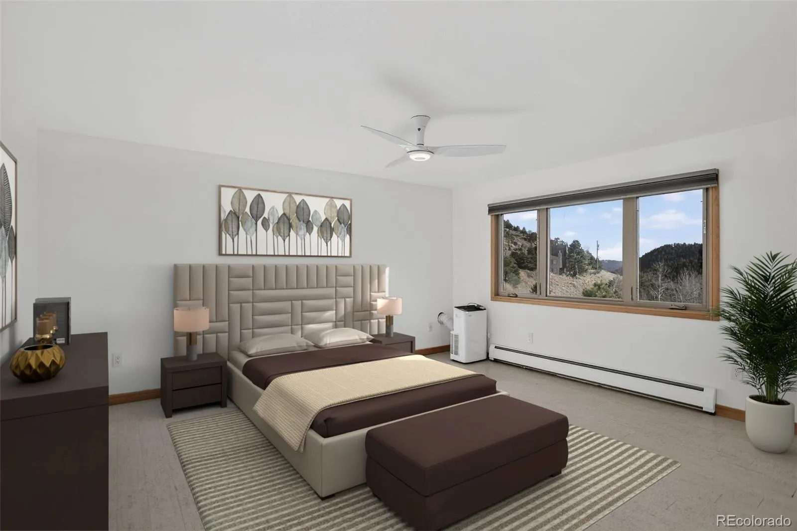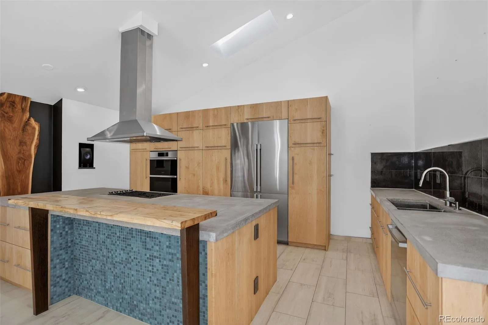 Beautifully updated and thoughtfully designed, this mountain contemporary home in the heart of North Evergreen offers the perfect blend of style, function, and location. Highlights include travertine tile throughout, artistic live-edge finishes, built in appliances and thoughtful amenities, adding timeless warmth and sophistication. The chef-inspired kitchen is a centerpiece, featuring concrete countertops, soft-close drawers, and a custom dog feeding and storage station. The spacious dining room offers plenty of room for large gatherings and features a folding glass door that leads to a beautiful composite deck with stylish wire railings. The great room is anchored by a modern electric fireplace set against a brick accent wall, complemented by natural light and views of the valley. A tranquil primary suite offers a peaceful retreat, providing plenty of rest and rejuvenation. Fitness enthusiasts will appreciate the dedicated home gym with professional flooring, wall mirrors, and space for fitness or dance. The sleek basement office with acoustic panels and wood detailing is perfectly suited for remote work, podcasting, or creative pursuits. The oversized two-car garage provides ample space for vehicles, equipment, and adventure-ready storage and new James Hardie siding enhances curb appeal with durability and modern design. Outdoor living is equally impressive, with a private turf dog run, a custom henhouse and a shed for tools, gear and mountain toys. Close to shopping, dining, hiking, golf, downtown Evergreen, and Evergreen Lake. Just minutes to I-70, providing an easy commute to Denver or world-class ski resorts.