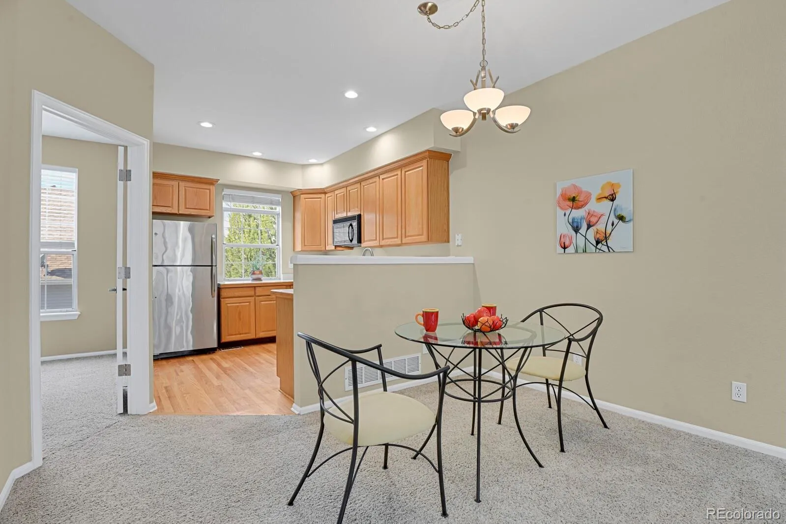 Neighborhood has good access to major highways, schools, shopping, employment centers and all supporting facilities. D-line Station is within walking distance. Corner lot with view of mountains. New paint on outside and inside. The design and floor plan accentuate the available natural light. Oversized windows, high ceilings and skylights and open layout maximizes the livable area. AS you enter the property you’ll find a large living room area, gas log fireplace (serviced & updated 12-25), main floor bedroom and 3/4 bath and ample sized kitchen. 2nd floor features primary en-suite bedroom with walk in closet, a great loft area perfect to use as an office /den/or kids area. Oversized 2 car attached garage (430 sq ft.)is ideal for storage, Laundry room includes washer and dryer. Additional storage available in laundry room. Front porch patio is 150 sq ft.