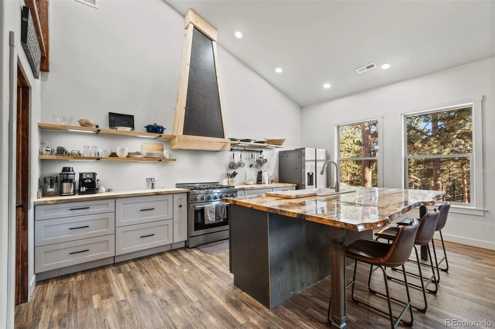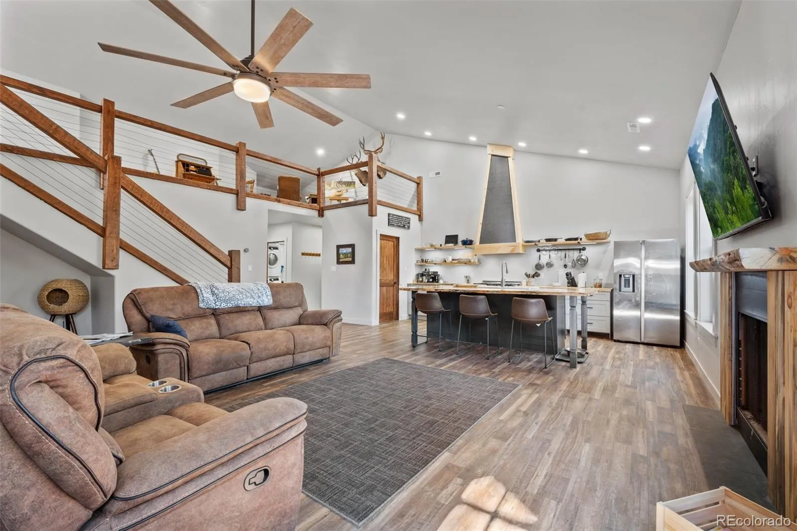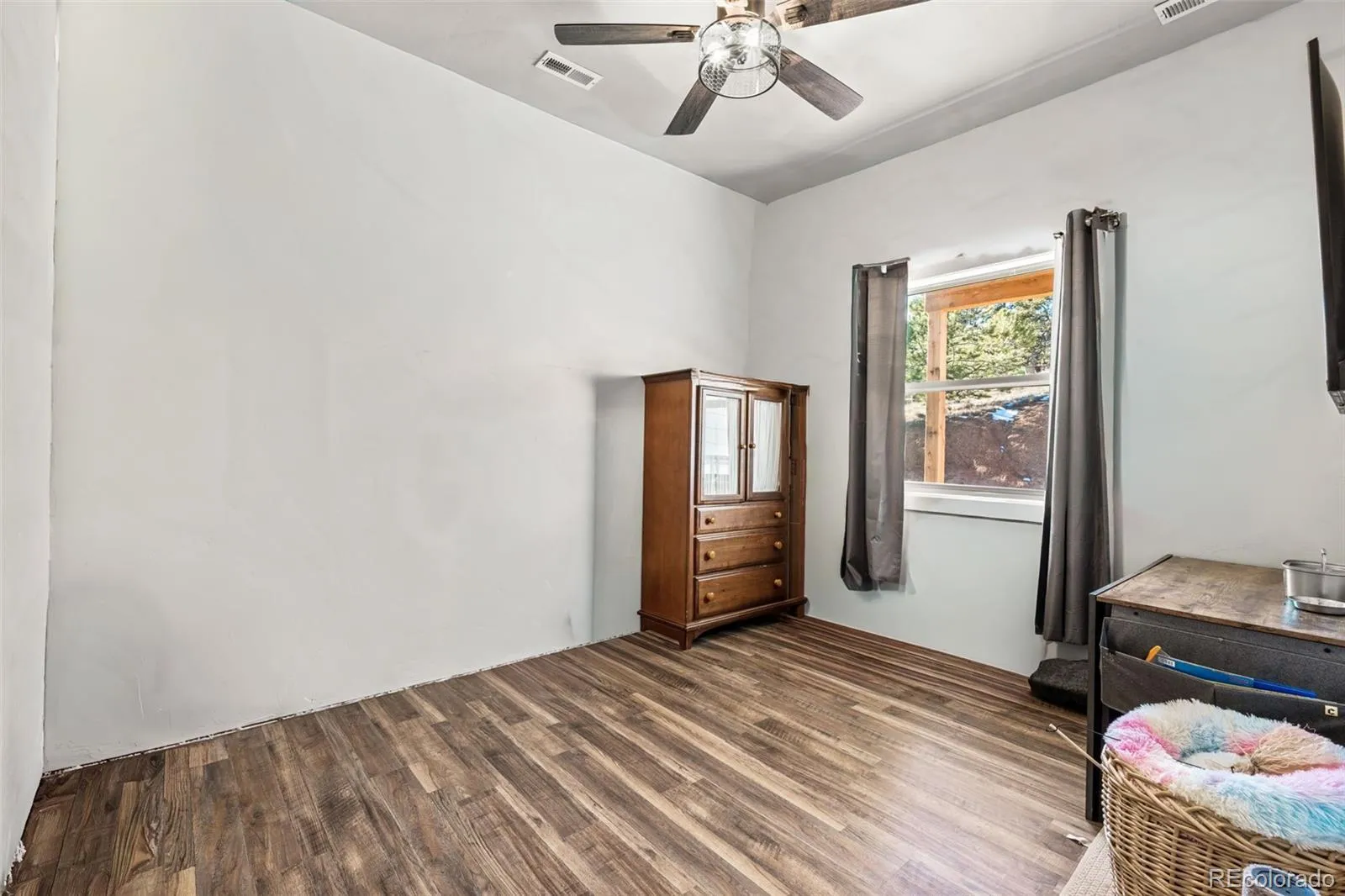 Discover this stunning modern mountain home set on 4 fully usable acres, offering privacy, functionality, and endless possibilities. The home features a large open-concept layout with a cozy wood-burning fireplace—perfect for keeping warm on cool mountain nights. The spacious primary suite includes a double vanity, walk-in closet, and a private sitting area with direct access to the beautiful forested surroundings. In addition to the main home, the property includes an approximately 480 sq ft potential ADU, ideal for guest quarters, rental income, multigenerational living, or workshop/art studio . Utilities are already in place, including a septic system. There is an additional storage unit for storage and other possibilities Enjoy easy access with a circular driveway and ample parking, all surrounded by peaceful, private scenery. This unique property offers limitless potential—mountain living at its best.