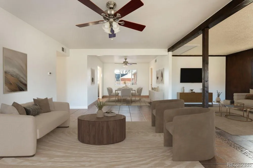 Perfectly set on an oversized corner lot in the quaint neighborhood of Hoffman Township, this lovingly maintained brick ranch is move-in ready. Offering wide-open living spaces and thoughtfully updated to be ADA compliant, the home seamlessly blends modern functionality with its original 1950s charm and character. A spacious entry and sitting area, along with an adjacent family room, create an inviting layout ideal for both entertaining and everyday living. Hard-surface flooring and wide doorways throughout provide smooth transitions between living spaces, while large windows fill the home with abundant natural light. The dining room flows effortlessly into the kitchen, which features ample cabinetry and generous counter space. The spacious primary bedroom serves as a private retreat, complete with an ensuite bathroom featuring a large walk-in and no-step, tile-surround shower. Additional bedrooms are well-sized and positioned to create a comfortable and functional layout along with a full bathroom between the bedrooms. The non-conforming bedroom is perfect for a nursery or home office. Privately located on the opposite side of the house is a large, additional bedroom with exterior access. A dedicated laundry room provides additional storage and includes a full-size washer and dryer. Step outside to the expansive, fully fenced backyard—truly a dream outdoor space—perfect for pets, entertaining, or relaxing on the expanded back patio. Fire hydrant conveniently located in front yard for safety and insurance. Recent improvements include dual HVAC (one furnace and AC unit for each side of the house), fresh interior paint, tuck-pointed brickwork, a newer roof, and fresh sod. A large two-car garage and additional off-street parking add everyday convenience. Centrally located with easy access to major thoroughfares, shopping, and dining, and just minutes from Anschutz Medical Campus and Children’s Hospital. Don’t miss the opportunity to make this special home your own.