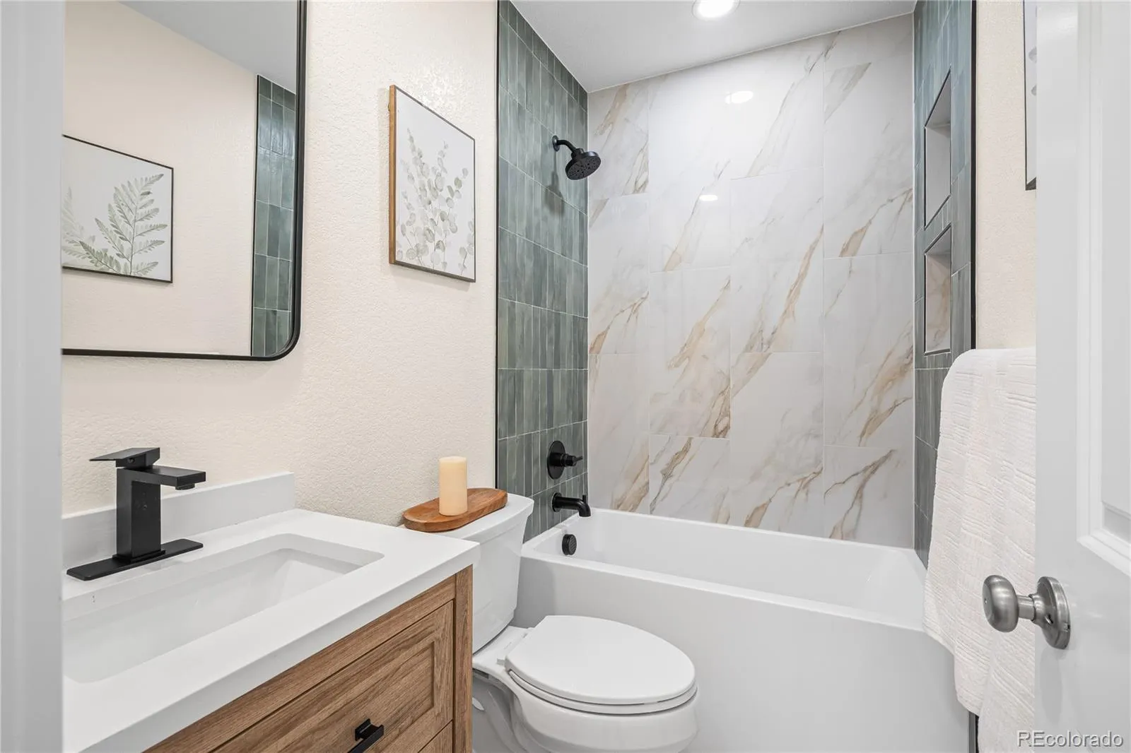 Welcome to this 4-bedroom, 3-bathroom Tudor in Denver’s coveted Hale–Mayfair neighborhood—fully remodeled and permitted for peace of mind. The main level is bright and airy with refinished hardwood floors, ambient lighting, new windows, and a sleek electric fireplace. The kitchen features white shaker cabinets, quartz counters, and stainless steel appliances. You’ll find two bedrooms and two baths on the main, including a primary suite with a walk-in shower and double vanity, plus a stylish hall bath with a tub. The finished lower level offers two conforming bedrooms with egress windows, a generous bath with double vanity and walk-in shower, a comfortable family/rec room, laundry, and storage. Major upgrades include a new furnace & AC, updated electrical panel/wiring, and new plumbing & fixtures. Outside, enjoy new landscaping with an automatic sprinkler system and fresh sod, plus a 1-car garage and two additional off-alley parking spaces with new concrete. Minutes to 9+CO dining (Postino, Culinary Dropout, Blanco), Trader Joe’s, Rose Medical Center, Lindsley Park, and a quick hop to Cherry Creek and downtown.