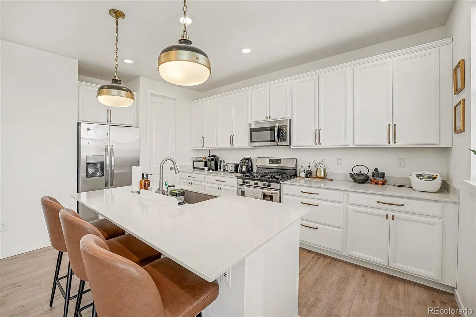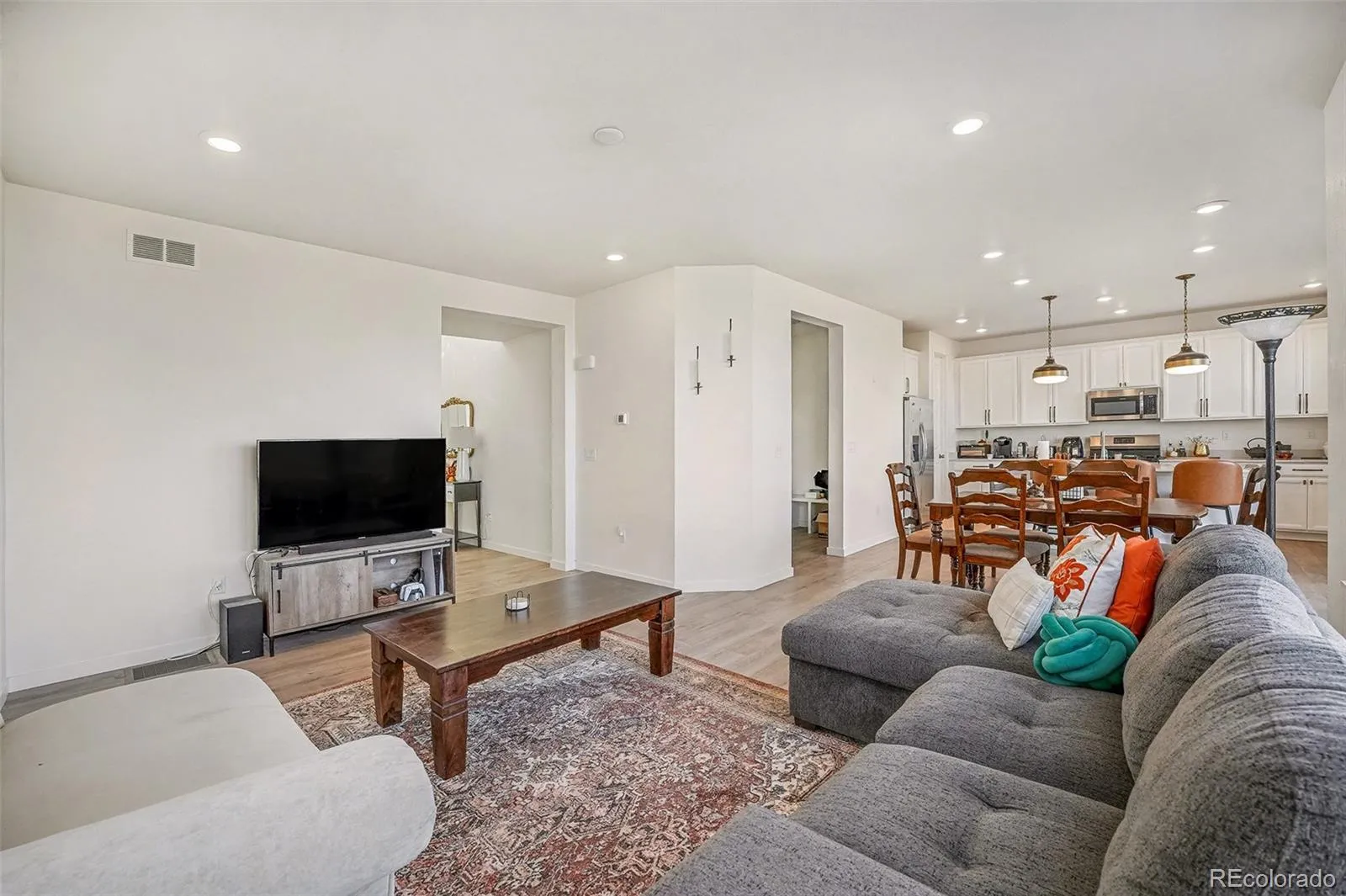 Welcome home to contemporary living in this stunning 2-story home in the heart of Reunion Ridge, perfectly showcasing functional everyday living and stunning mountain and open space views. Beautiful luxury vinyl plank flooring, grand 10’ ceilings, and abundant natural light greet you upon entry and unfold to over 2,000+ sqft including 3 bedrooms and 3 bathrooms. The spacious and inviting great room easily transitions to the dining area for easy entertaining. Enjoy preparing a meal in the gourmet kitchen featuring an oversized center island, quartz countertops, ample white cabinetry, a pantry, and stainless steel appliance package. Step outside to a sizeable patio, ready for summer BBQs and al fresco dining. The lower steel-covered pergola patio is the ideal spot for a firepit and to take in the stunning mountain and open space views. Upstairs, the private living areas include two generously sized secondary bedrooms, a full bath with dual sinks, laundry, and the primary suite. This spacious sanctuary is complete with tre-ceilings, a large walk-in closet with closet system, and an upgraded 4-piece ensuite bath. Additional features of this turnkey residence includes an attached 2-car garage, all appliances included, an unfished basement for future expansion, and installed solar for increased home efficiency. Reunion Ridge is ideally located within minutes of shopping, dining, neighborhoods schools, and major roadways. Come experience contemporary living on a premium lot and schedule your showing for 13015 East 102nd Place today!