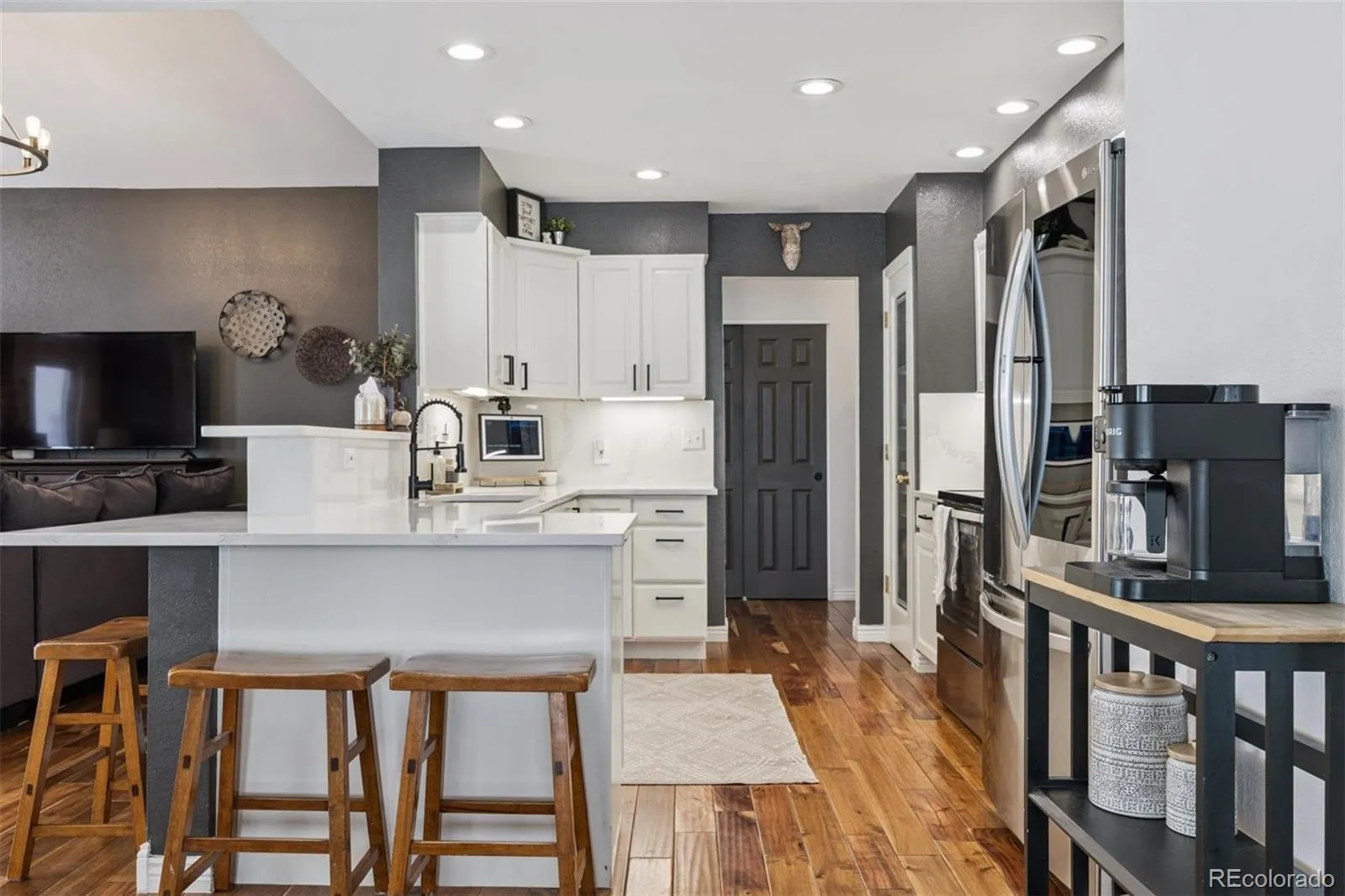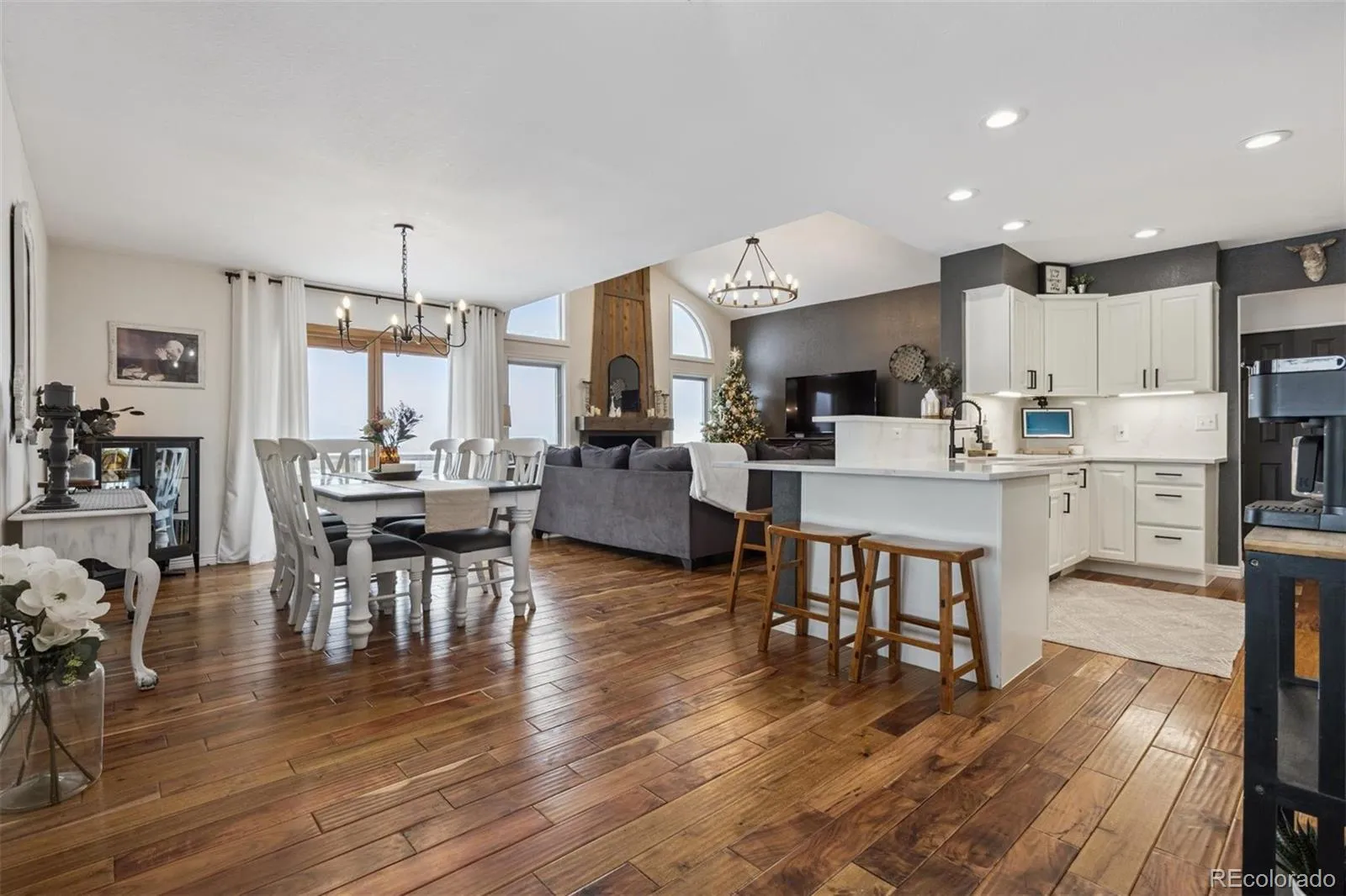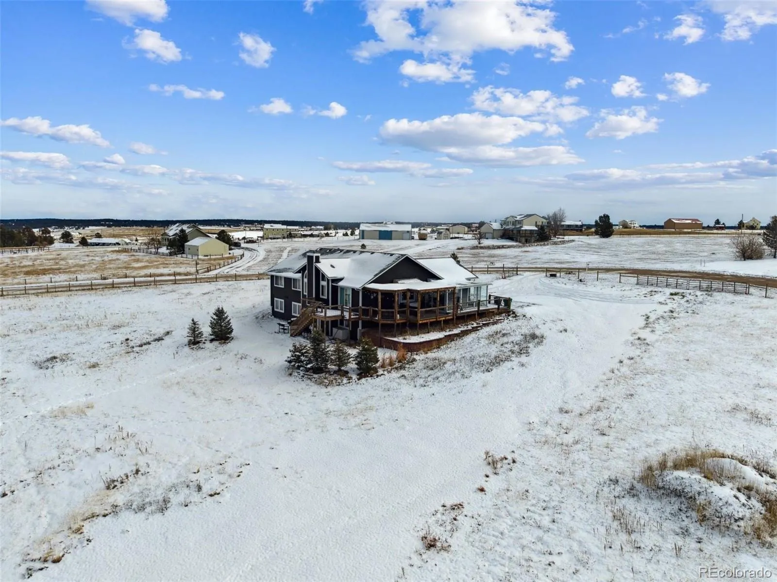 Located just minutes from shopping and restaurants in downtown Elizabeth, this beautifully maintained home offers a 5.03-acre setting, more than 3,360 finished square feet with 5 bedrooms and 3 baths, and a 40×60 outbuilding. It offers a quiet, country lifestyle, with the ability to slow down, be present, and savor life! This one-story ranch, with finished walk-out basement, provides an updated main-floor primary suite with dual vanities, soaker tub, tiled shower, and sizeable walk-in closet, with two additional main-level bedrooms (or bedroom/study) with a shared full bath. The open floor plan features extensive hardwood floors, with a gorgeous, updated kitchen, quartz countertops & full backsplash, stainless appliances, and walk-in pantry. Adjacent to the kitchen, the dining space accesses the covered back deck and flows seamlessly with the family room, where a vaulted ceiling, cozy fireplace, and handcrafted mantel accentuate the heart of the home. You’ll appreciate the convenient main-floor laundry, as well as a second laundry in the basement. An unheated sunroom and an extensive wrap-around deck are perfect for enjoying plentiful days of Colorado sunshine. The basement includes a fantastic great room with wet bar, flex spaces for workout area or playroom, two bedrooms (one with a walk-in closet), a shared ¾ bath, an additional laundry and plenty of unfinished storage. The perimeter of the property is fenced for horses. The 40×60 steel outbuilding features a cement floor, 220v power for RV hook-up or generator, water/sink/floor drain, hot water heater, workbench and storage shelves, air hose lines from front to back, and an overhead RV door. The upper driveway and both exits to the barn are covered with crushed asphalt. The sought-after Pawnee Hills community offers a riding barn, round pen, and miles of bridle paths. The clubhouse features event facilities, pool/sauna, tennis, pickleball, basketball, horseshoes, and monthly/holiday events!