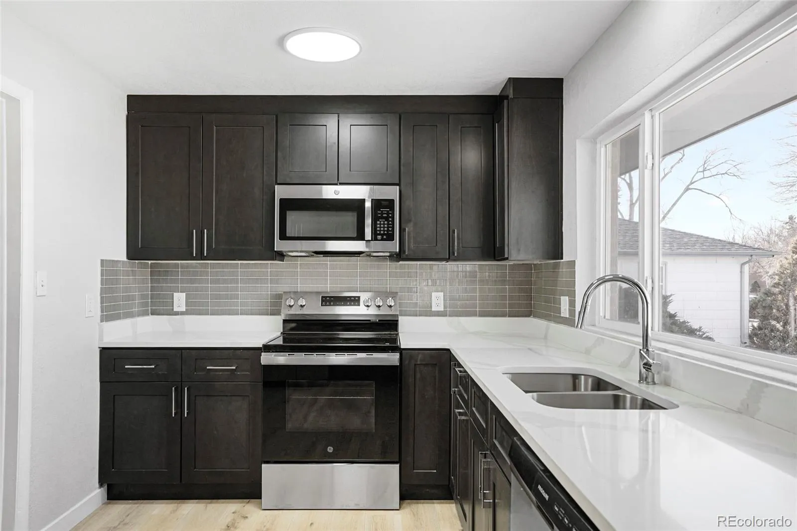 This beautifully renovated home blends modern design with classic charm, offering a rare combination of style, plenty of space, and modern functionality – all in a great location! The brand new designer kitchen shines with all-new shaker-style cabinets, quartz countertops, stainless steel appliances, glass tile backsplash, and abundant countertop/storage space. The bathrooms have been updated too! Large windows flood the home with natural light, highlighting original character details such as built-in cabinetry and shelving, as well as elegant coved wall-to-ceiling detailing.