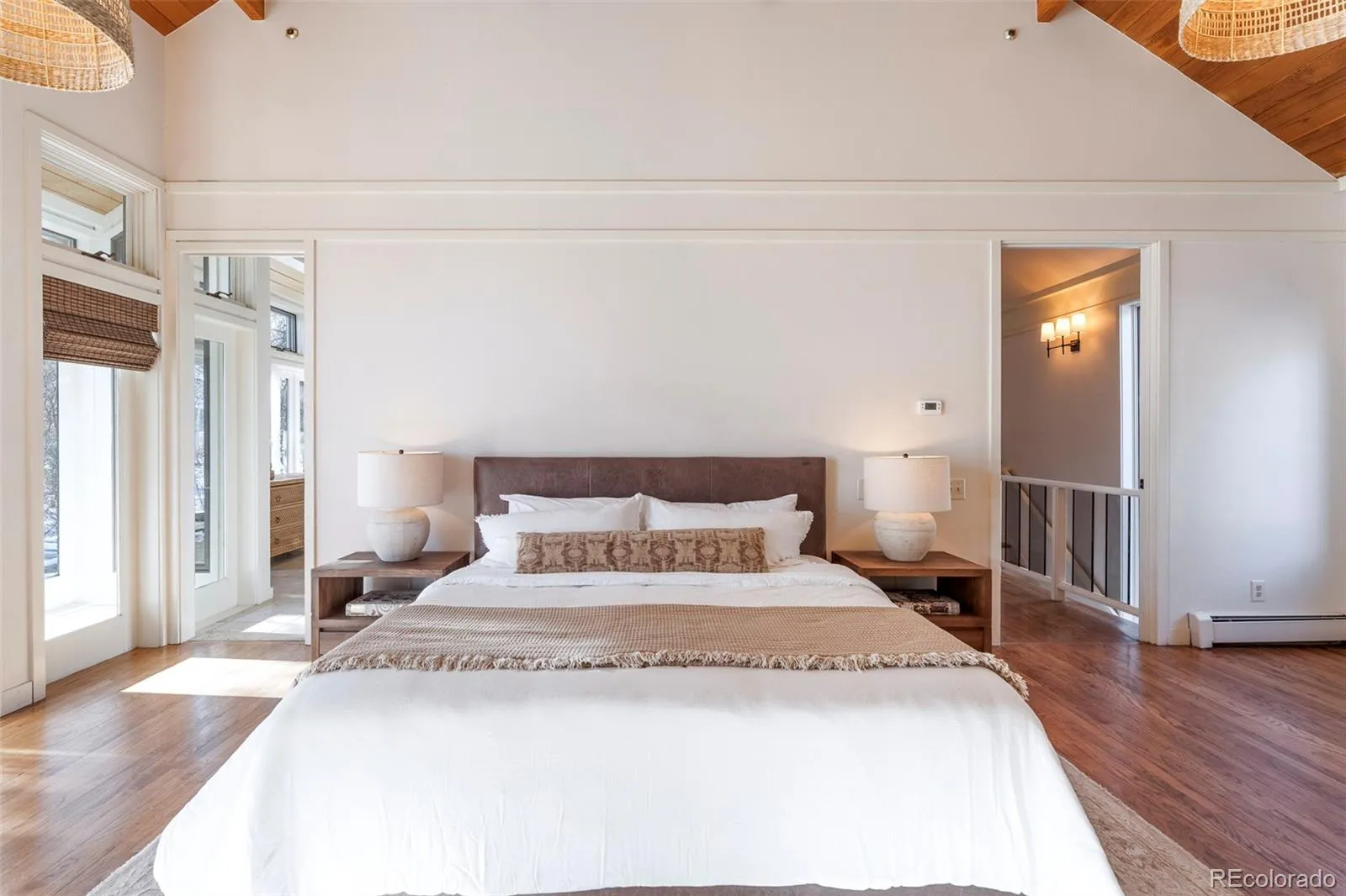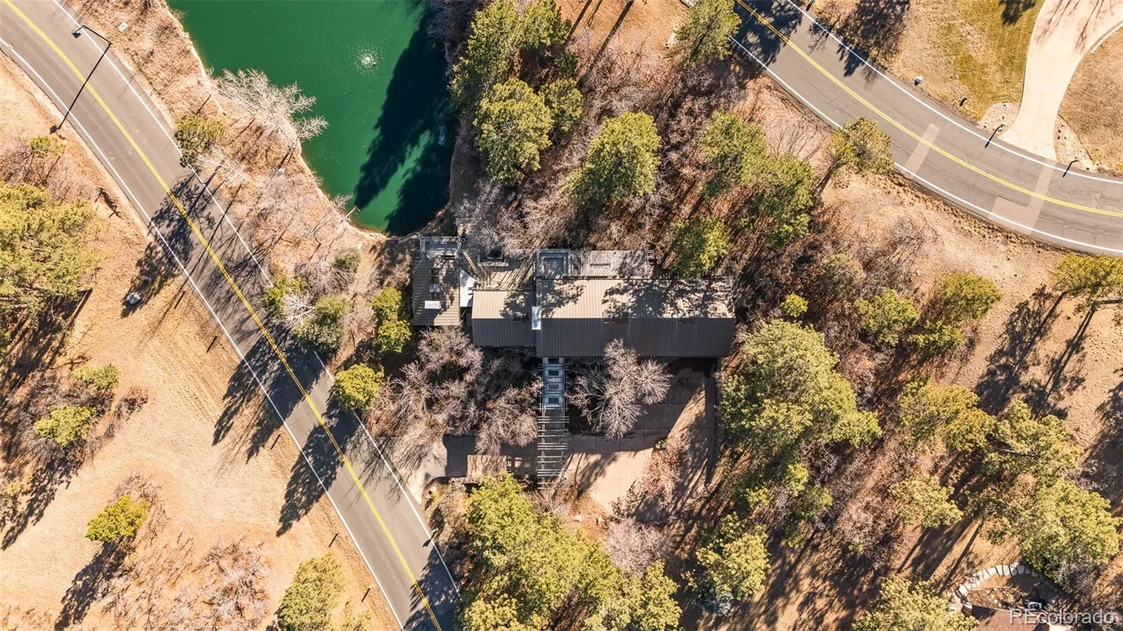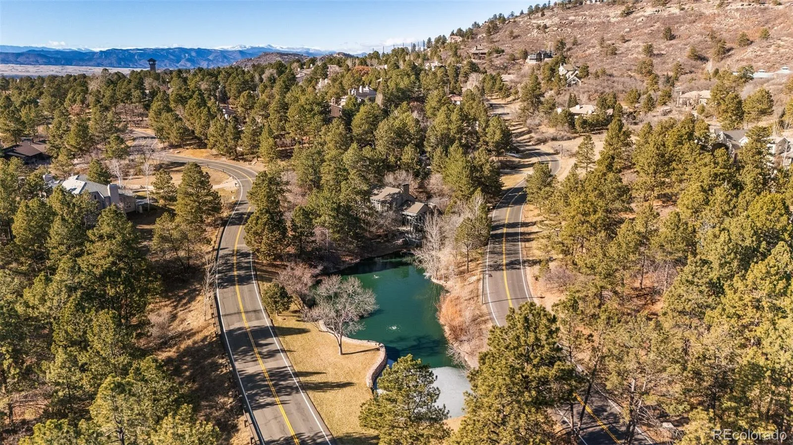 Welcome to the Iconic Lake House. A rare waterfront sanctuary nestled within the gates of Castle Pines Village, this architecturally striking home harmonizes soaring design with serene lakefront living. Situated in a gated golf course community, this residence showcases expansive south-facing windows, multiple French doors and flexible living spaces that seamlessly blend indoor elegance with stunning water views. A sunken great room with vaulted tongue-and-groove ceilings and a full wall of custom built-in bookshelves is warmed by a floor-to-ceiling stone fireplace. The expansive chef’s kitchen impresses with premium appliances and an oversized center island. Retreat to the main primary suite boasting vaulted tongue-and-groove ceilings, a private deck and a luxurious five-piece bath. A second primary suite with a large custom closet offers direct access to a versatile den connected by a glass-walled catwalk. An attached, fully equipped casita provides space for guests or multi-generational living, while the finished lower level hosts a generous flex space with a ¾ bath. Outdoors, sweeping decks, flagstone patios and a custom chiminea fireplace overlook tranquil waters and mature landscaping. This refined retreat is complete with a three-car heated garage and access to HOA amenities including pools, tennis, trails and 24/7 emergency services.