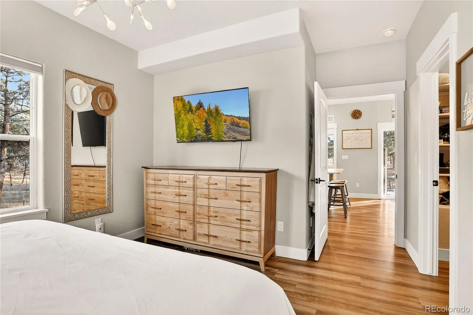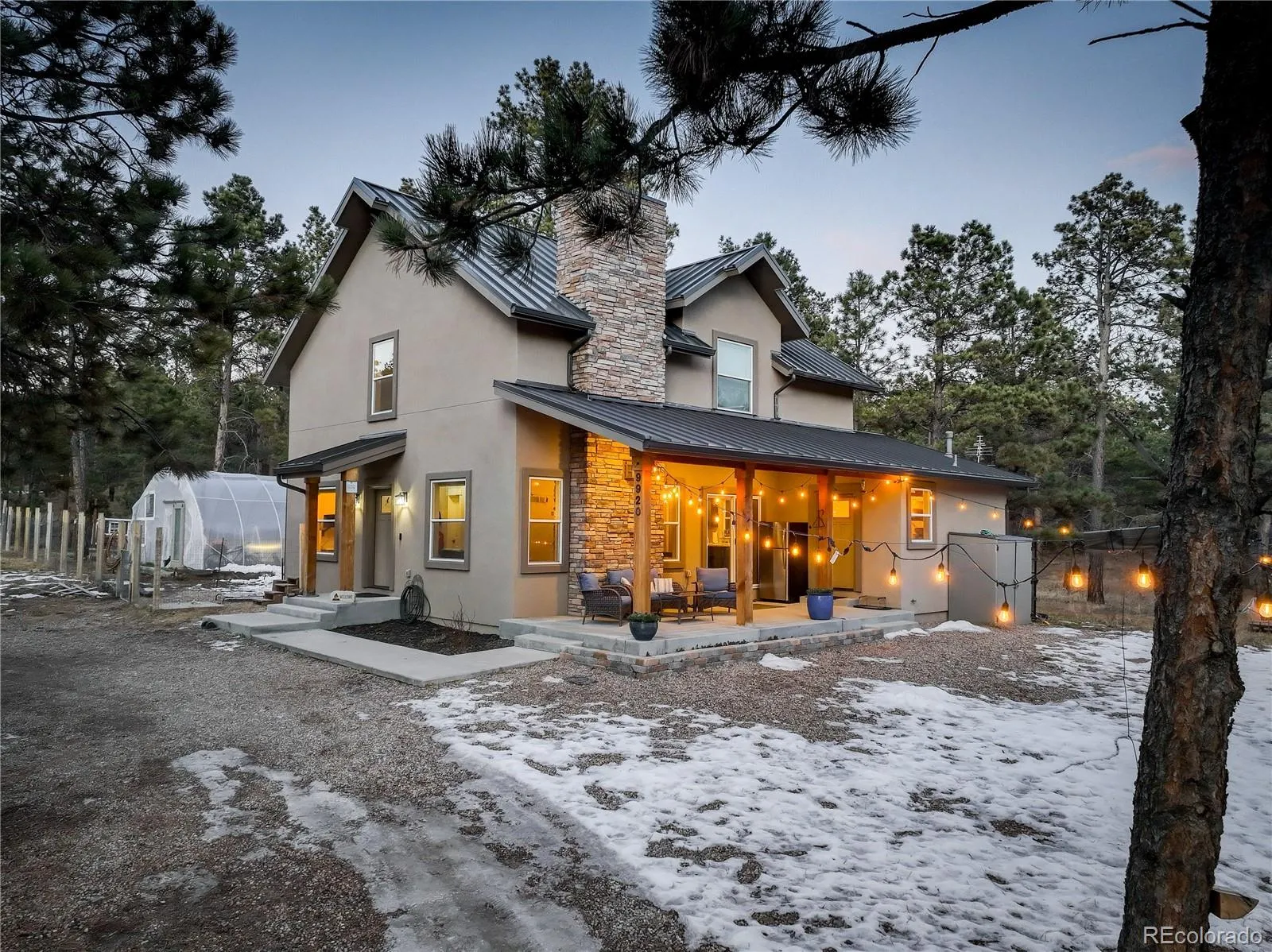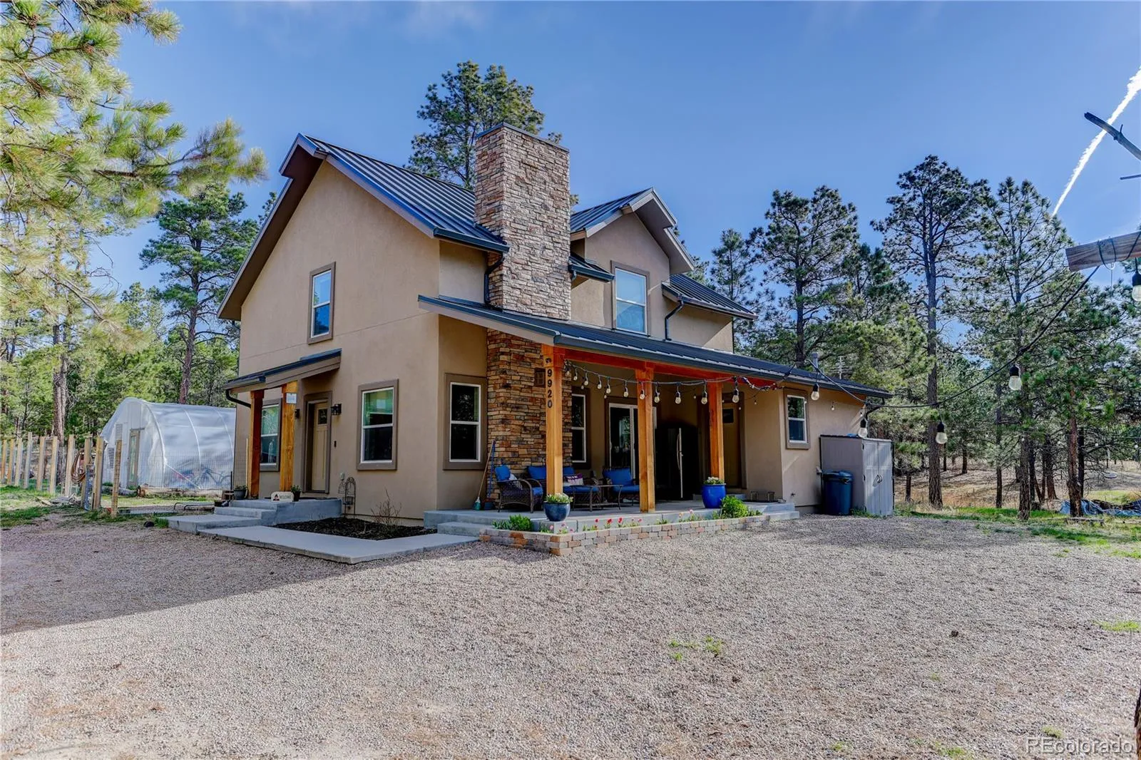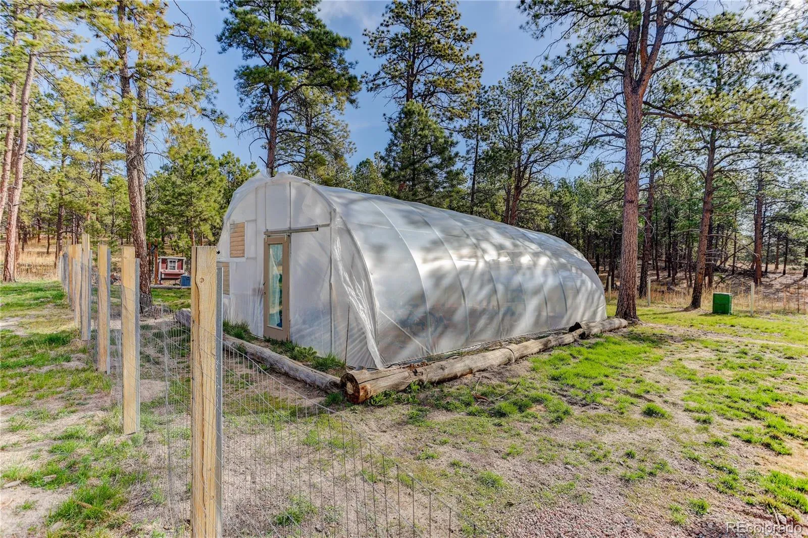 If your idea of home involves wildlife sightings and seclusion among the pines you’ve found the one. This 2019 3-bedroom, 2.5-bathroom custom home is situated in the peace and quiet of 8 acres of natural privacy, surrounded by thriving ponderosa pines. Open-concept living areas leave the home feeling bright, with a kitchen that joins with the dining and family room (complete with a gas fireplace) for seamless hosting. Find ease in your everyday routine with main-level living: the primary suite is located on the main floor with an ensuite bathroom flaunting modern fixtures. The exterior features of this home equip you for any outdoor hobby or homesteading goal you could dream of! Your outdoor oasis includes a play area complete with 150′ zipline and platform, a shooting range, and an enclosure ideal for hobby farming. A fully-enclosed greenhouse turns your slice of Colorado into a year-round gardener’s paradise. The fenced chicken run with built-in roosts, electricity, and an automated coop door allows you to enjoy fresh eggs anytime. The large dog run provides a safe play space for your four-legged family members. Complete your projects in the 120 square-foot shed, complete with electricity. You’ll avoid citywide power and water disruptions since this home draws from a high-yield private well with a backup manual pump. The property’s well-maintained 2250 gallon septic system is sized for an 8 bedroom home and has already been pumped and certified by the county. With 2×6 exterior walls spray foam insulated to R-22, A/C, heating, cooking, and hot water needs are powered by natural gas service to keep costs low. Plus, this property comes complete with an RV electrical hookup with up to 50 amps. Extras include fiber optic high speed internet, 320 amp electrical service for future expansion; garage foundation w/roughed-in plumbing & pre-run water/sewer/gas, custom R-18 garage door and approved plans for the garage. Come see this slice of Colorado paradise today!