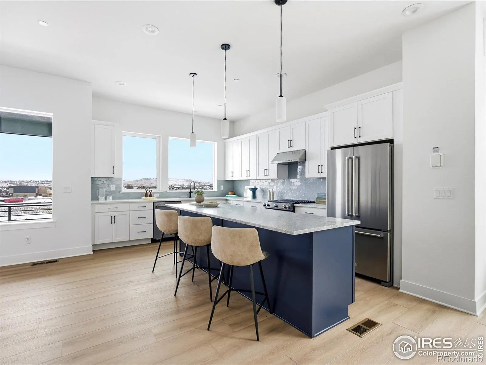 This stunning end-unit townhome blends modern beauty with thoughtful design across three spacious levels. From the moment you arrive, this newly built home impresses with its bright, open layout and stylish finishes throughout. The entry level welcomes you with a roomy two-car garage and a versatile flex space, perfect for a home office, gym, or creative studio. On the main level, the showstopping kitchen takes center stage. Sleek cabinetry, designer hardware, and gorgeous quartz countertops create a polished, contemporary look. A large center island with breakfast bar seating, generous prep space, and a walk-in pantry make this kitchen both functional and visually striking. It opens seamlessly to the sunlit dining area and expansive great room, ideal for entertaining or everyday living. Upstairs, the luxurious primary suite offers a serene retreat with a dual-sink vanity, private water closet and an oversized walk-in closet. This level also features two additional guest bedrooms and a full guest bathroom, providing plenty of comfort and flexibility for family or visitors. Enjoy access to top-tier Erie amenities, including a 63,000-square-foot community center, a 20,000-square-foot library, scenic trails, parks, and a vibrant mix of shops and restaurants. **Ask about lender incentives that include a 3/21/1 buydown @ 2.99%!!**Terms and conditions apply. Hurry and view today! To be written on builders contract