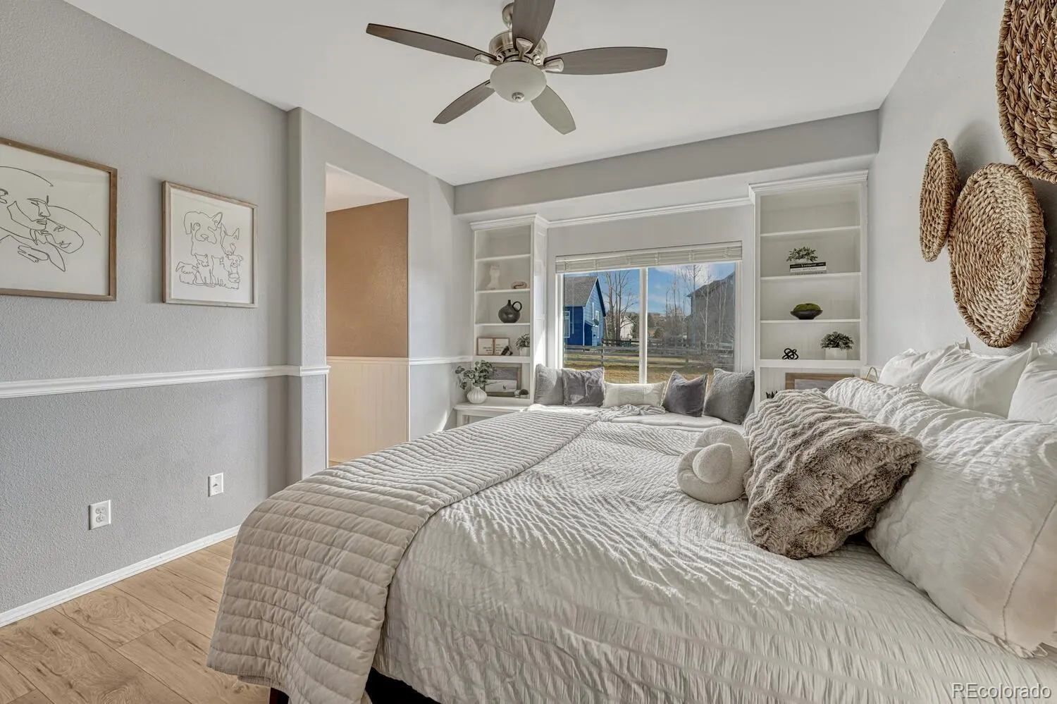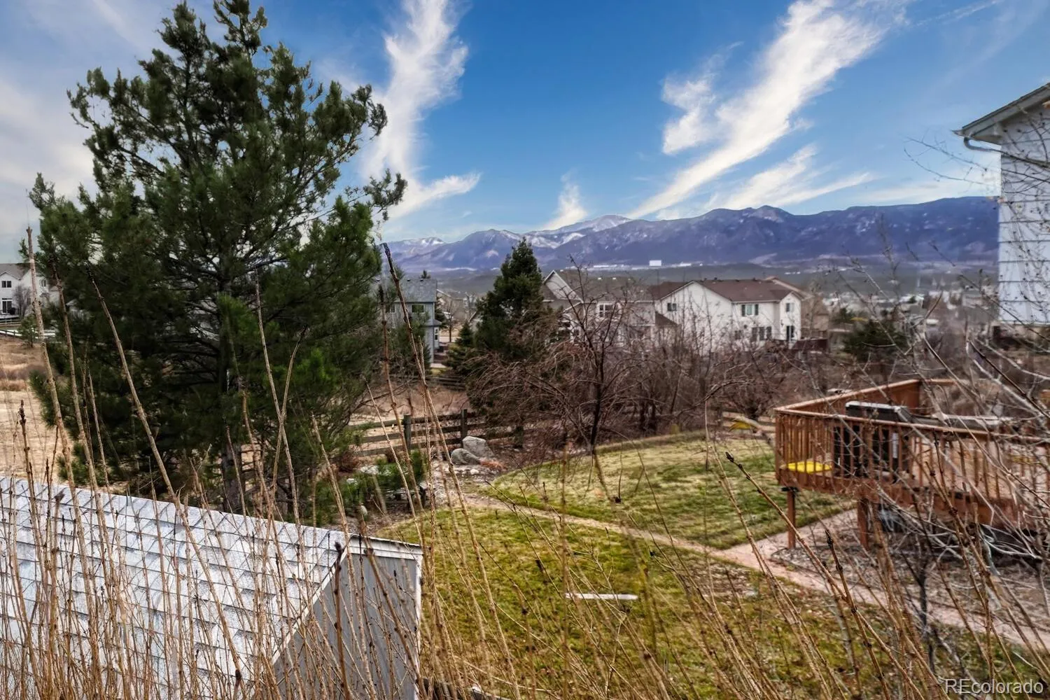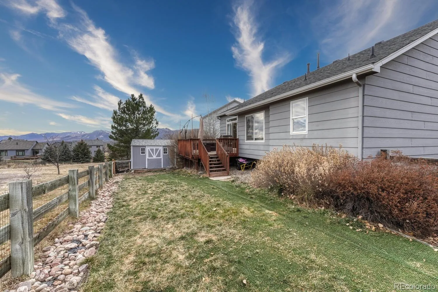 There’s still time to ask Santa for a new home for the holidays! Welcome to lovely main-level living in the coveted Jackson Creek neighborhood, backing up to open space & a walking trail with stunning mountain views from the back porch. This impressive home features 5 bedrooms, 3 bathrooms & a 2 car attached garage. Step inside to a bright, open living room with tall ceilings. Oak wood floors & a wall of built-in shelving accent a gas fireplace painted in chic charcoal grey. The open-concept main level flows effortlessly from living room to dining room to kitchen. The remodeled kitchen features stainless steel appliances, a large farmhouse sink, pantry, two-toned cabinets & a large butcher block island. Walkout patio doors off the kitchen lead to a peaceful deck with mountain views! The backyard backs to open space & a trail system, offering peace and privacy from neighbors. Newly installed hybrid grass turf provides the perfect spot for pets or kids to play. A storage shed painted to match the house can be used for extra storage—or lean into the urban farm lifestyle & house some chickens or even a bunny or two. Down the hall, discover the spacious main-level primary suite. It offers charming wainscoting trim & a wall of built-in shelving with a window seat. The ensuite bathroom has been upgraded with a huge walk-in spa shower featuring both a rain shower head & a handheld shower head. It also includes a double vanity, water closet, and large walk-in closet. The main level is complete with two additional bedrooms, a full bathroom, and a laundry closet. Down in the basement, enjoy a large family room with a wet bar. The basement features two additional bedrooms (5 total) and a full bathroom. Don’t miss the large storage room—perfect for a home gym. This home is in a great location and school district (D-38). Enjoy easy access to shopping, dining, and hiking and being perfectly situated with easy access to I-25 for those commuting to Denver. This one won’t last long!