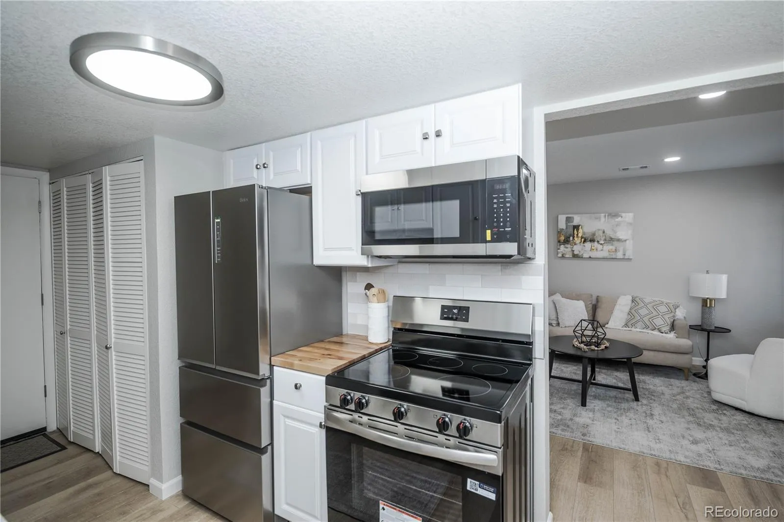 The kitchen is serving confidence with quartz countertops, a butcher block accent, and a stylish new backsplash—perfect for cooking, snacking, or pretending you’re on a cooking show. Some new lighting keeps things bright, a new storm door adds extra polish, and the attached 1-car carport means no more scraping windshields like a peasant.
