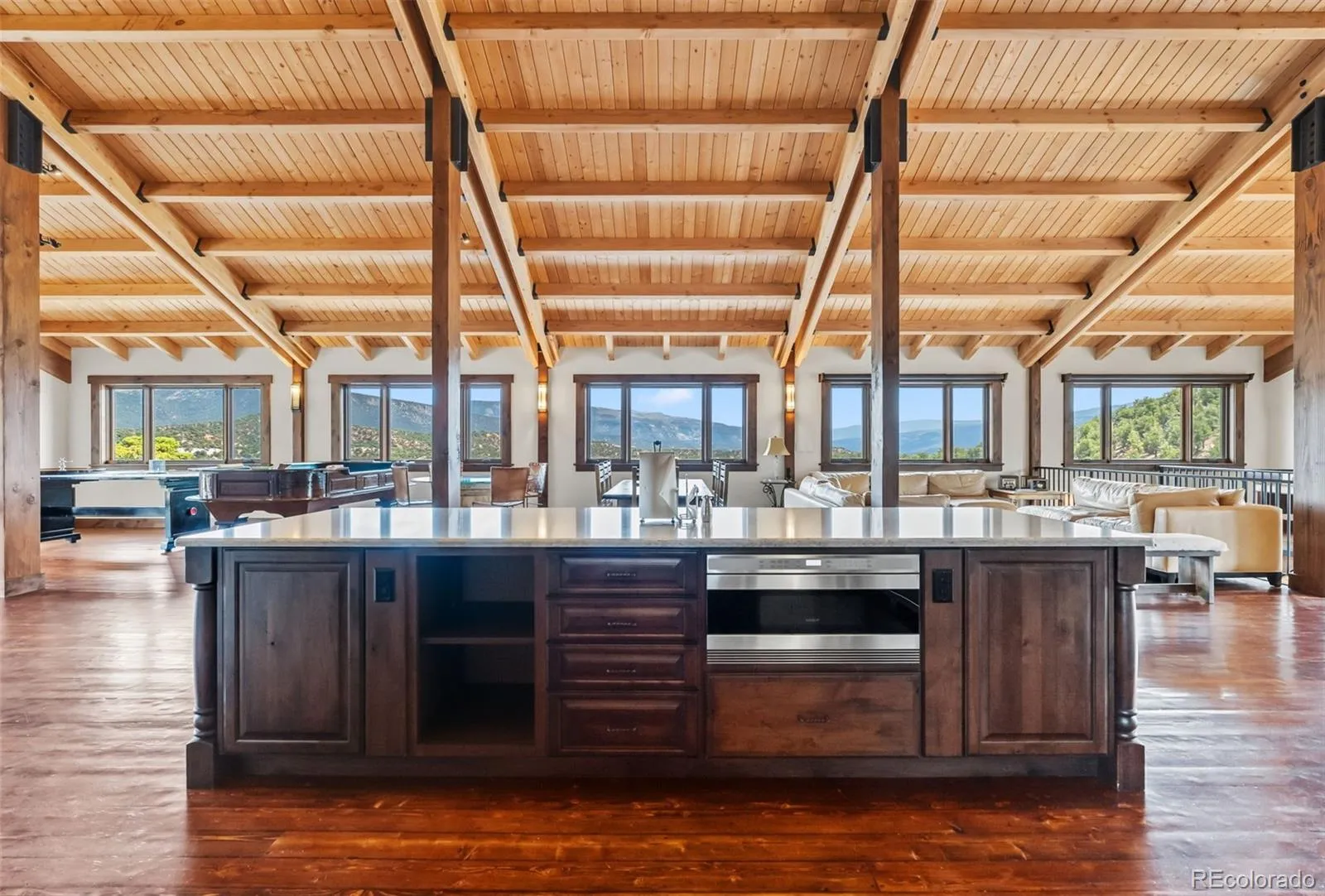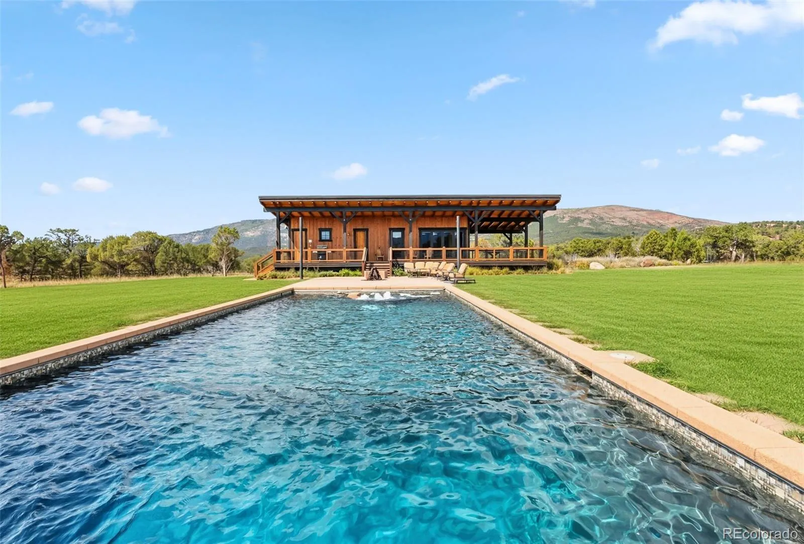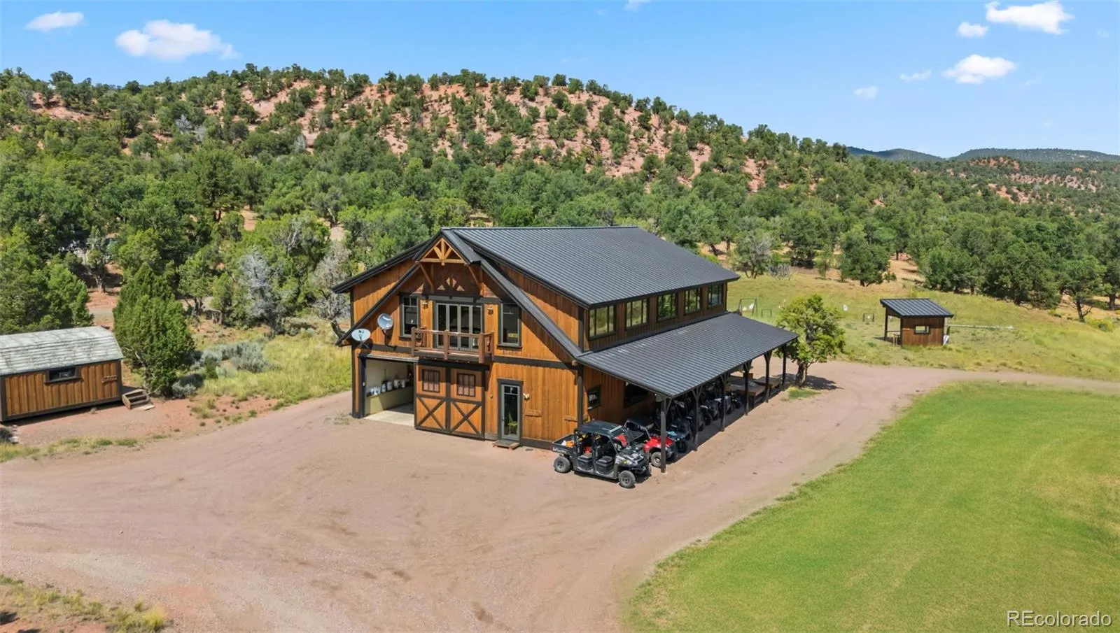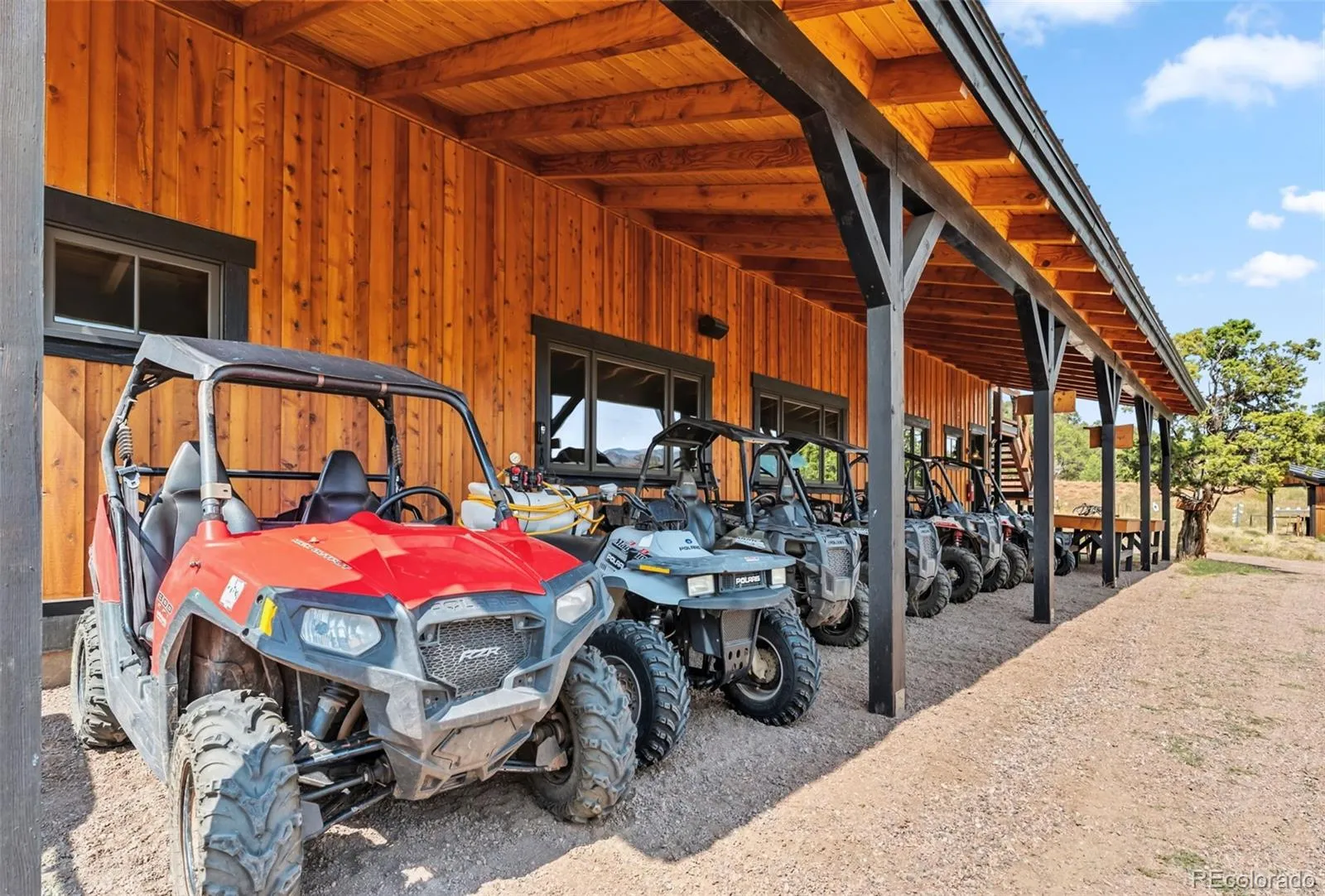At its heart are a western contemporary main house, a luxury barndominium, and a resort-style pool with pool house fully equipped for entertaining. The cantina and recreation complex features a commercial kitchen, music studio and a sports barn, making it ideal for hosting all of your guests. The property also has a stocked fishing pond, sporting clays and 3 other shooting ranges, a full suite of vehicles and maintenance equipment, miles of trails and direct access to BLM land! This property is turnkey for both relaxation and rugged exploration.