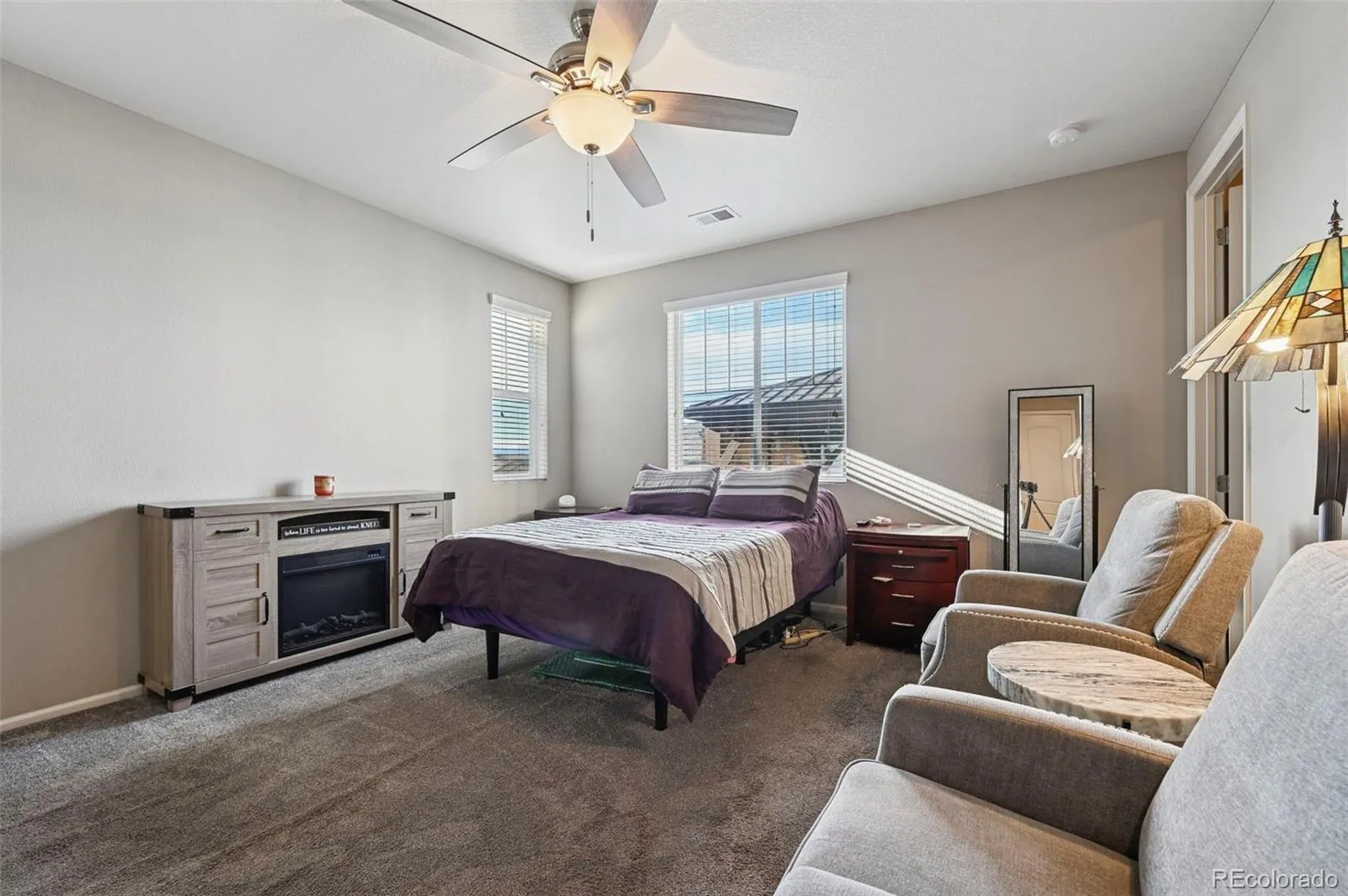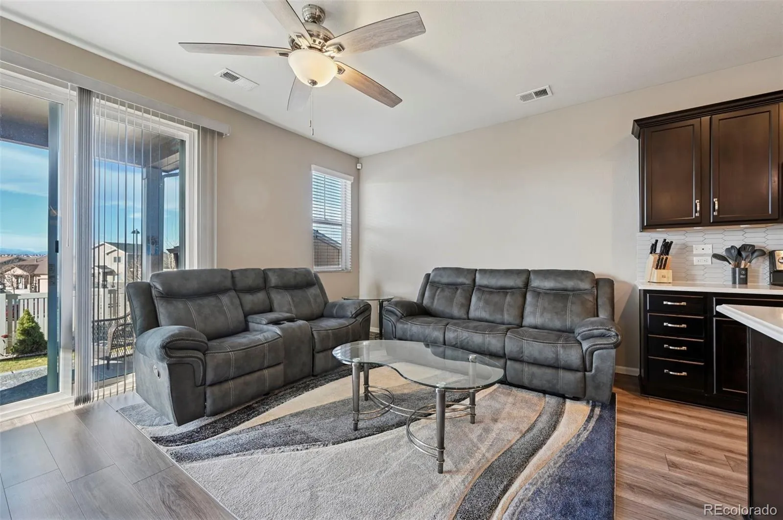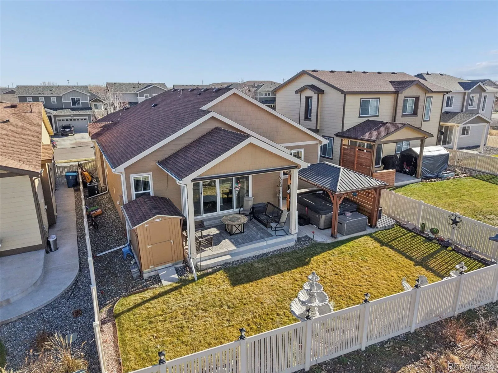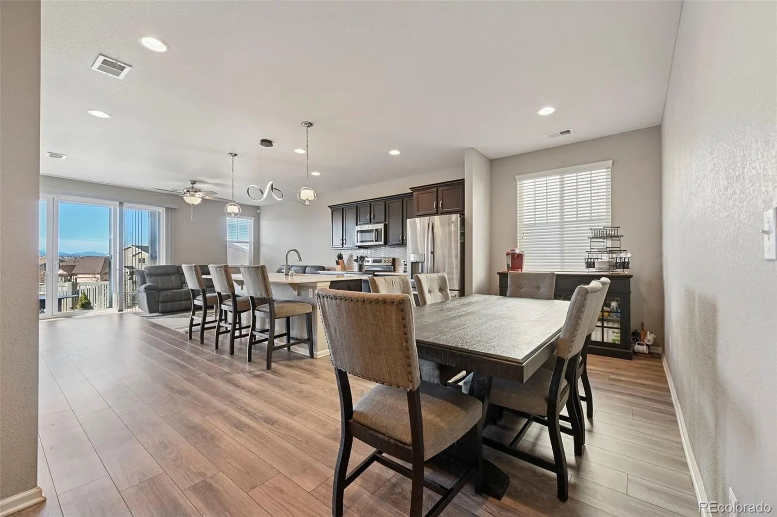 Welcome home to this beautifully maintained Ranch style home built by Richmmond. This property sits on a great lot with sweeping mountain views and a bright open concept design that feels welcoming the moment you walk in. The main living area features durable LVP flooring that flows seamlessly through the kitchen, dining, and living spaces, creating an ideal setup for everyday living and entertaining, while the bedrooms are finished with cozy carpet for added comfort. The kitchen is thoughtfully designed with an electric stove, ample cabinetry, and contrasting countertop, including a quartz countertop by the office area and beautiful countertop in kitchen, adding depth and character to the space. The primary bedroom offers a private and comfortable retreat with a stand up shower and built in linen shelving for added storage and convenience. Additional features throughout the home include washer and dryer shelving, a water softener, crawl space with liner, air conditioning, and a full sprinkler system to keep the larger lot looking its best. The insulated two car garage provides excellent functionality with shelving that stays, offering extra storage space without sacrificing parking. The spacious backyard includes a shed and pergola, offering extra storage and a great space to relax and enjoy the mountain views. With its thoughtful upgrades, functional layout, and stunning views, this home blends comfort, efficiency, and style in a way that is truly move in ready.