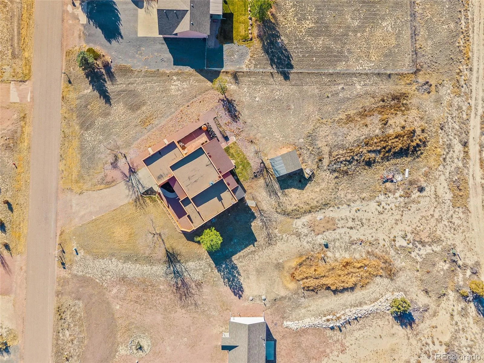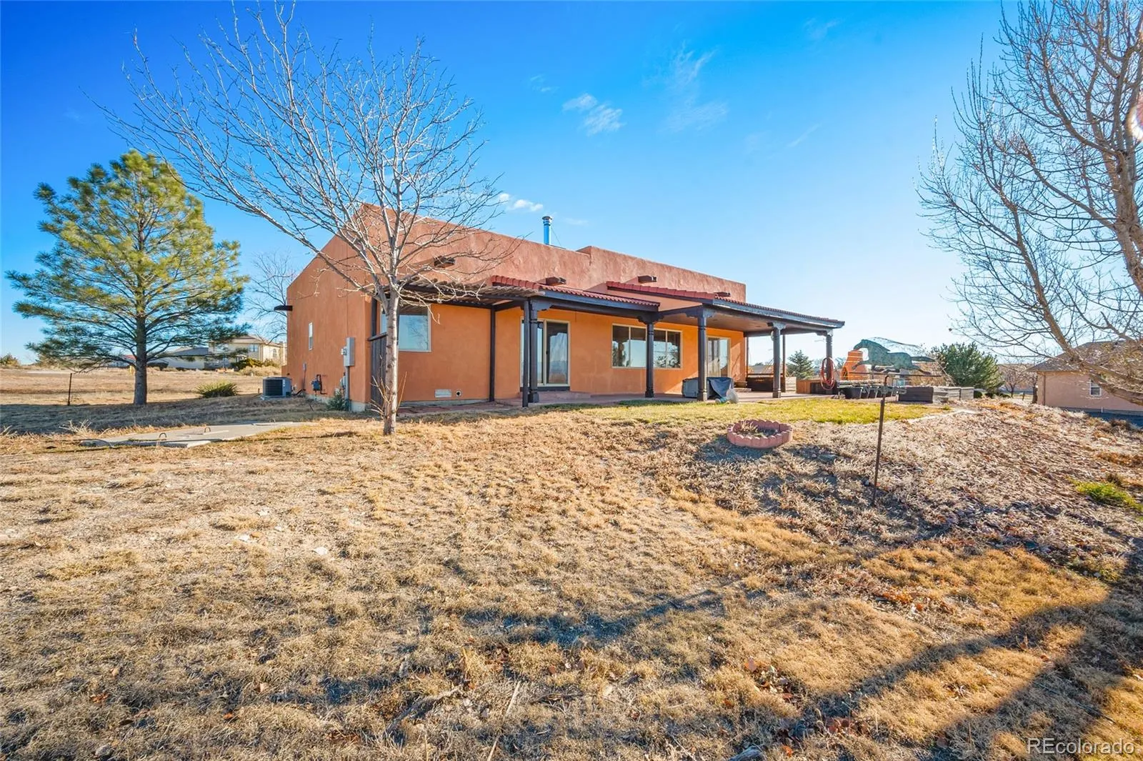 Stunning Santa Fe–style home on 1.03 acres in Pueblo West Acreage, featuring million-dollar mountain views and exceptional privacy backing to Walker Ranch. This Southwestern-inspired property offers a charming courtyard entry with stone pathways, rock accents, garden space, and a covered back porch overlooking open meadows and the mountains beyond. A separate outdoor seating area with a chimenea is perfect for enjoying iconic Colorado sunsets. Inside, nearly 1,900 sq. ft. of comfortable living space blends timeless character with modern updates. The spacious living room is centered around a wood-burning stove, while the kitchen features a raised breakfast bar, abundant cabinetry, pantry, and nearly new appliances. The dining area opens directly to the back porch for seamless indoor-outdoor living. The private primary suite includes a five-piece bath with walk-in shower, large walk-in closet, and direct porch access. Two additional bedrooms share a full bath, ideal for guests, a home office, or studio space. The two-car attached garage offers extensive cabinetry and a work area. Additional storage includes a 12’ x 16’ shed with small carport. Located in a quiet neighborhood with easy Highway 50 access to Pueblo and Cañon City, this property offers space, privacy, and unforgettable views—classic Pueblo West living at its finest.