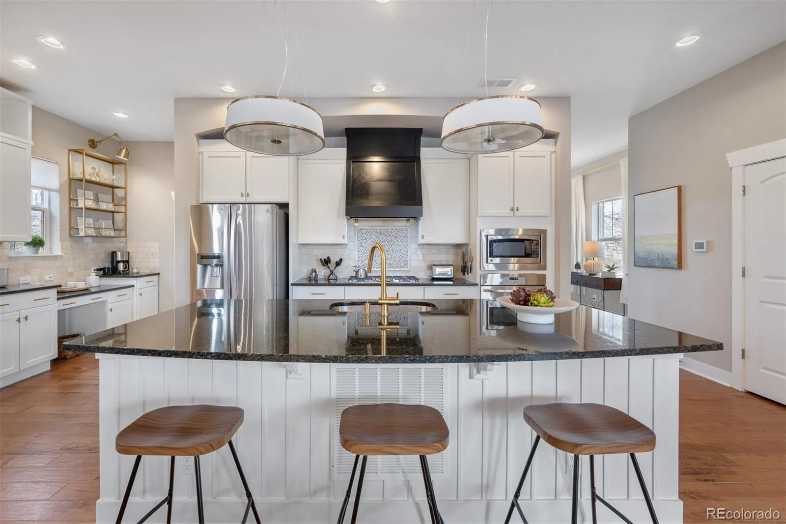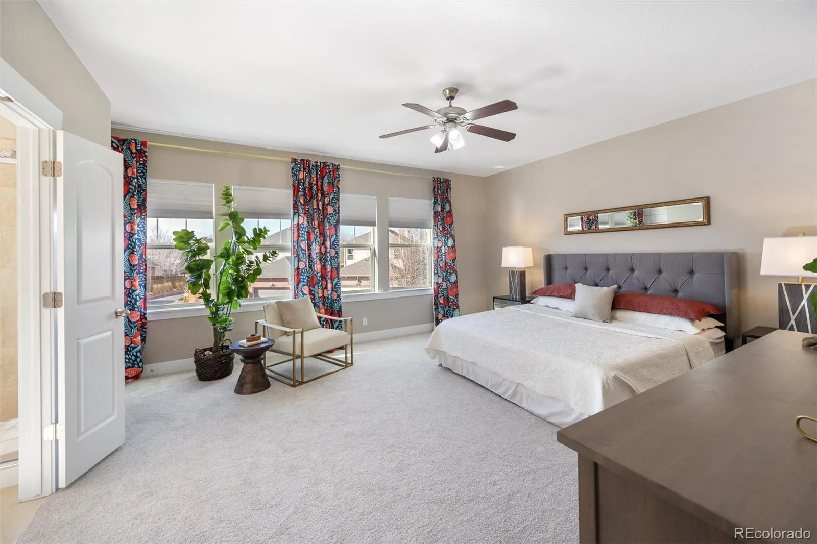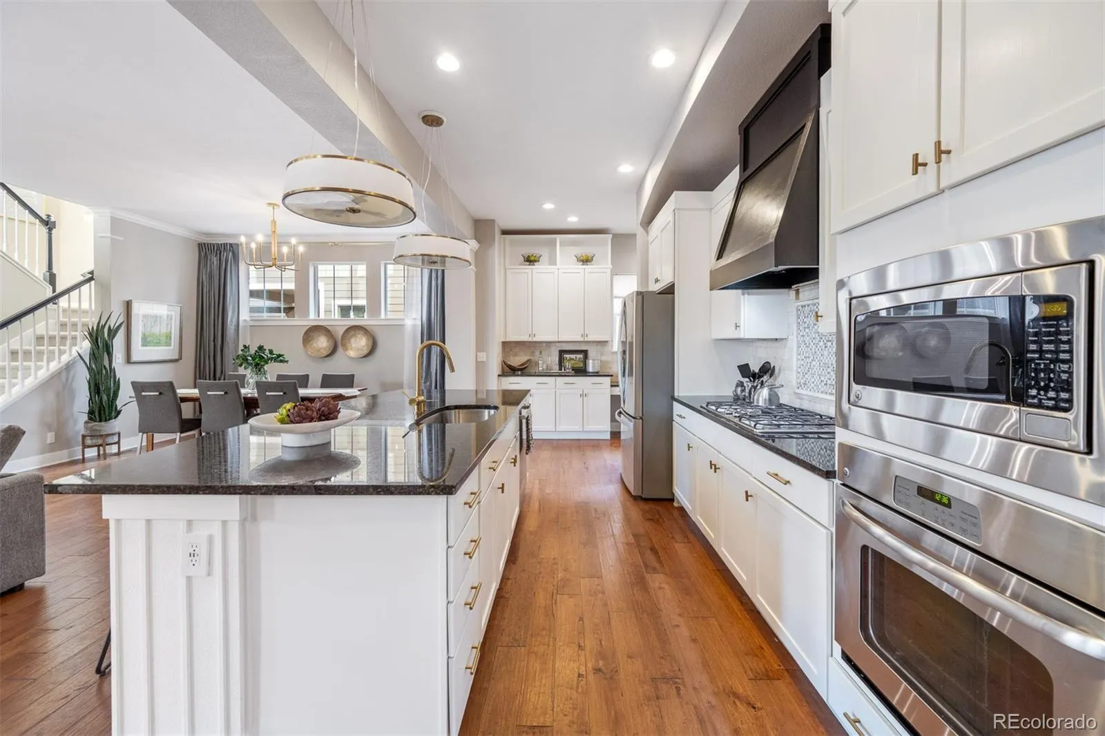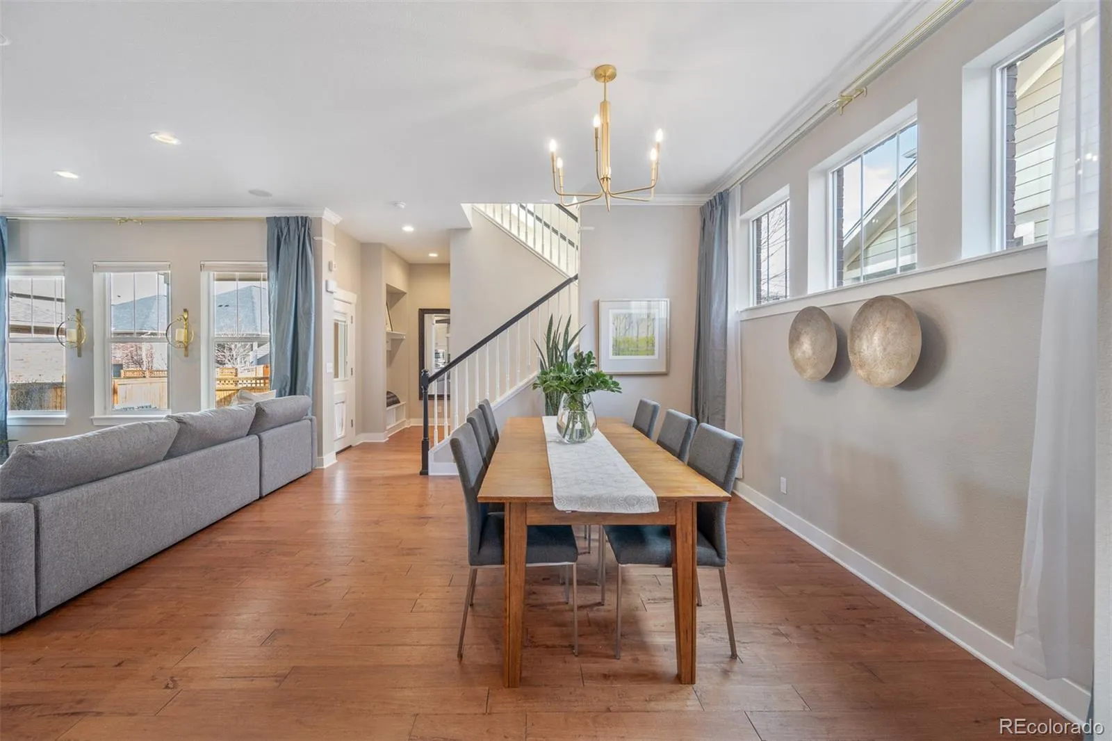 Fall in love with this special, light-filled David Weekley home with its coveted open floor plan and wonderful, quiet, interior location, off the main street. This highly desirable floor plan is perfection! A spacious foyer entry with coat closet welcomes you to the expansive Living/Great Room, Kitchen, and Dining Room accented by warm and rustic wood floors, a lovely fireplace with remodeled surround, and fantastic high ceilings. The chef’s Kitchen forms the centerpiece of the main living area, with island seating, voluminous cabinetry, granite countertops, stainless appliances, and a convenient built-in office/coffee bar area. The large pantry is a welcome bonus! An inviting open Dining Room space easily holds a large table for entertaining and family meals and gatherings. There’s also a sunny and private main floor dedicated office. Upstairs you’ll find a serene Primary Suite with five-piece bath and a large walk-in closet, in addition to two additional ample bedrooms. A cozy loft area for hanging out or studying, and a great upstairs Laundry Room complete the upper level. The fantastic, finished basement provides lots of great additional living space with high ceilings, an awesome Family/Rec Room, a fourth large bedroom, and additional 3/4 Bath, perfect for guests or teenagers. There are so many great spaces and options in this spectacular home. The oversized, attached two car garage opens into a handy mud area for coats and backpacks. New paint and carpet throughout! Outside, enjoy front and back covered patios and a charming private yard with a large deck and awesome xeriscaped garden area with raised beds. For the kids, this house sits on the beloved neighborhood interior park (The Muse), a haven for daily play and recreation. Excellent Lowry location, across the street from beautiful walking trails and a few blocks to Crescent Park and all the wonderful restaurants and shops in Lowry, the Lowry Town center, as well as Boulevard One. Spectacular!