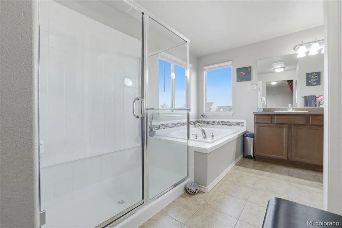 Upstairs are four bedrooms, including the primary bedroom with a five-piece ensuite bath, and another junior suite plus two more bedrooms and one full and one 3/4 bath. The basement level has a large, open family room plus a fifth bedroom and adjacent 3/4 bath. A HUGE 25×12 storage room on the basement level gives you plenty of room for all the “stuff” you need to hide away when not in use. D-20 schools (Discovery Canyon) and great location near I-25 and Hwy 83 for easy commutes to Denver and other points in Colorado Springs.