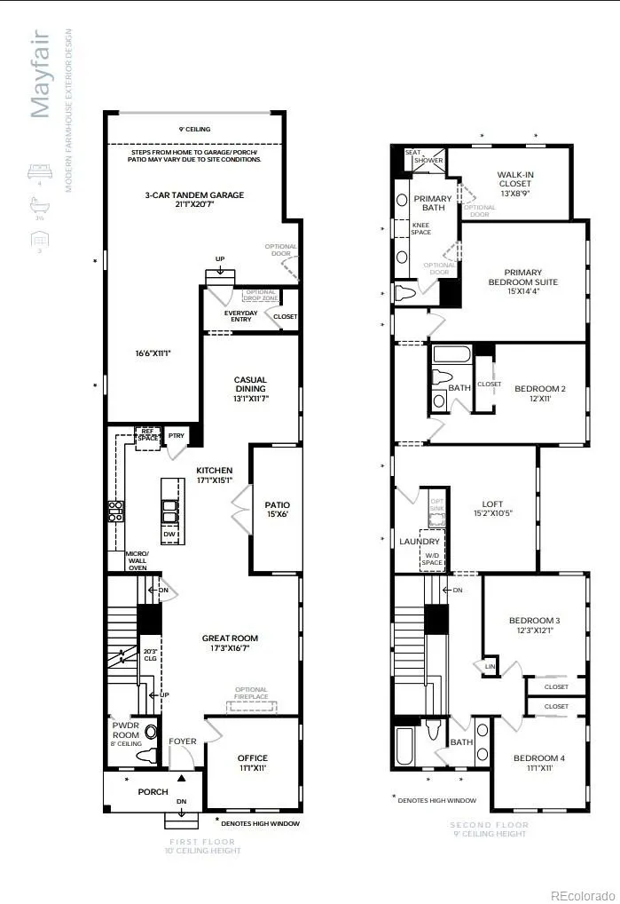 The Mayfair Cottage #24 features a spacious and light-filled open floor plan with 9-10′ ceilings throughout; oversized quartz kitchen island & Kitchen Aid appliances w/ hood perfect for entertaining & convenient to the outdoor patio; private front office; and spacious Greatroom with 48″ gas fireplace. On the 2nd floor a generous loft separates 2 secondary bedrooms and a guest room ensuite next to the Primary Bedroom suite with spa-like luxe shower w/ upgraded tile & frameless enclosure.