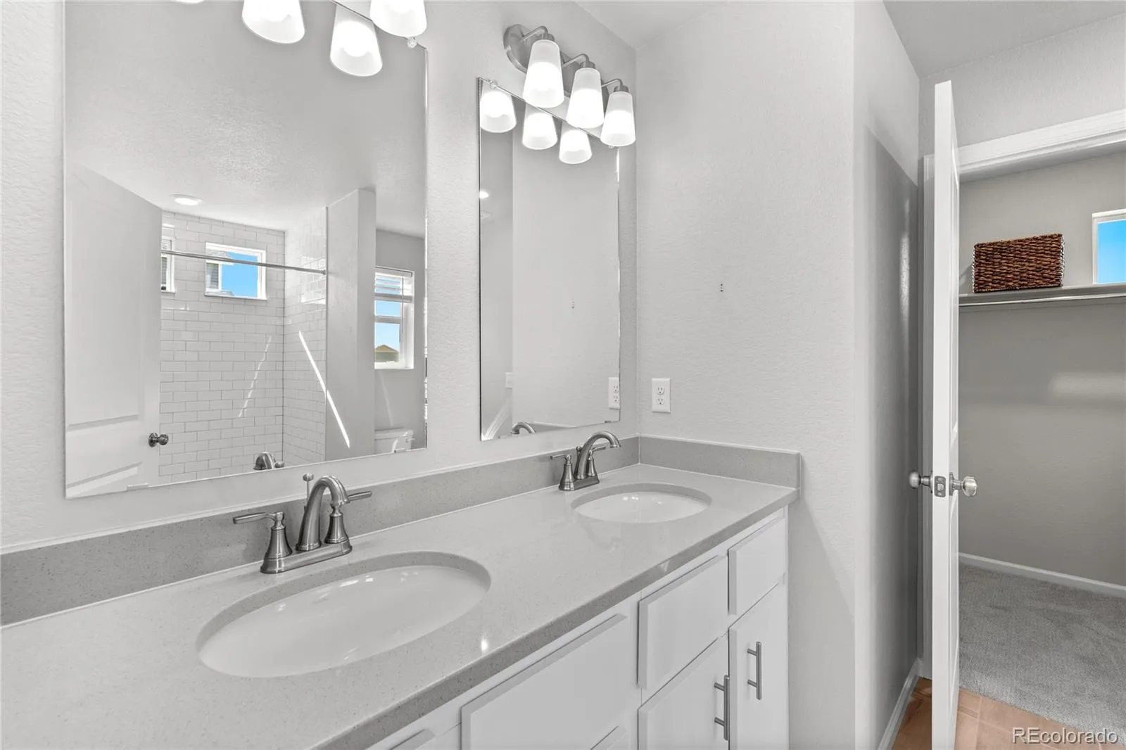 The Shire – Efficient Design, Elevated Style in Green Valley Ranch Aurora Welcome to The Shire, where practical design meets elevated everyday living. This 2-story home offers 3 bedrooms, 2.5 baths, and 1,464 sq. ft. of well-used space, all set on a quiet cul-de-sac in the heart of Green Valley Ranch Aurora. From the moment you arrive, the curb appeal stands out—with a dimensional exterior, a welcoming front porch, and 5′ privacy fencing. Inside, you’ll find 9′ ceilings and oversized windows that bring in natural light and expand the feel of the main level. The open-concept layout flows effortlessly through the great room—ideal for gathering, relaxing, or entertaining. Every finish has been carefully selected: luxury vinyl plank flooring, Shaw carpeting, Whirlpool appliances, Delta fixtures, and Sherwin-Williams paint throughout. The kitchen shines with a central dining island, stainless-steel sink, and contemporary countertops. Upstairs, retreat to your spacious primary suite featuring a walk-in closet, dual vanities, and a spa-style shower. The oversized 2-car garage provides plenty of room for storage and functionality.