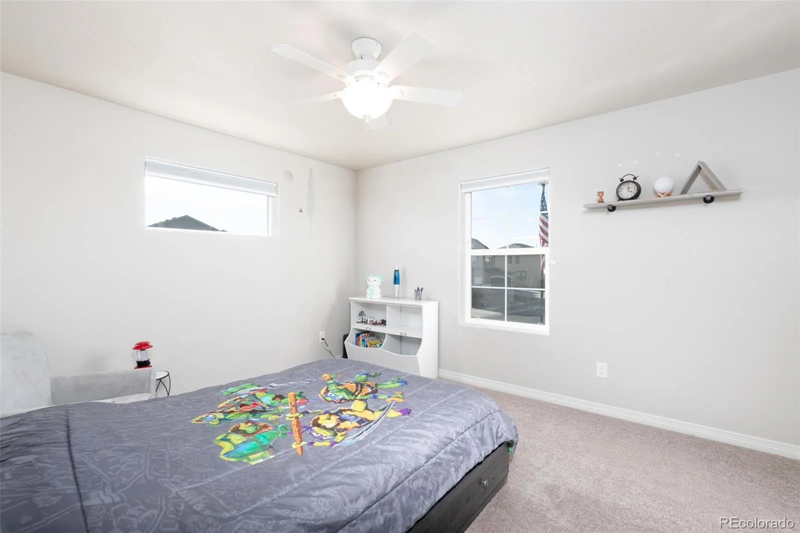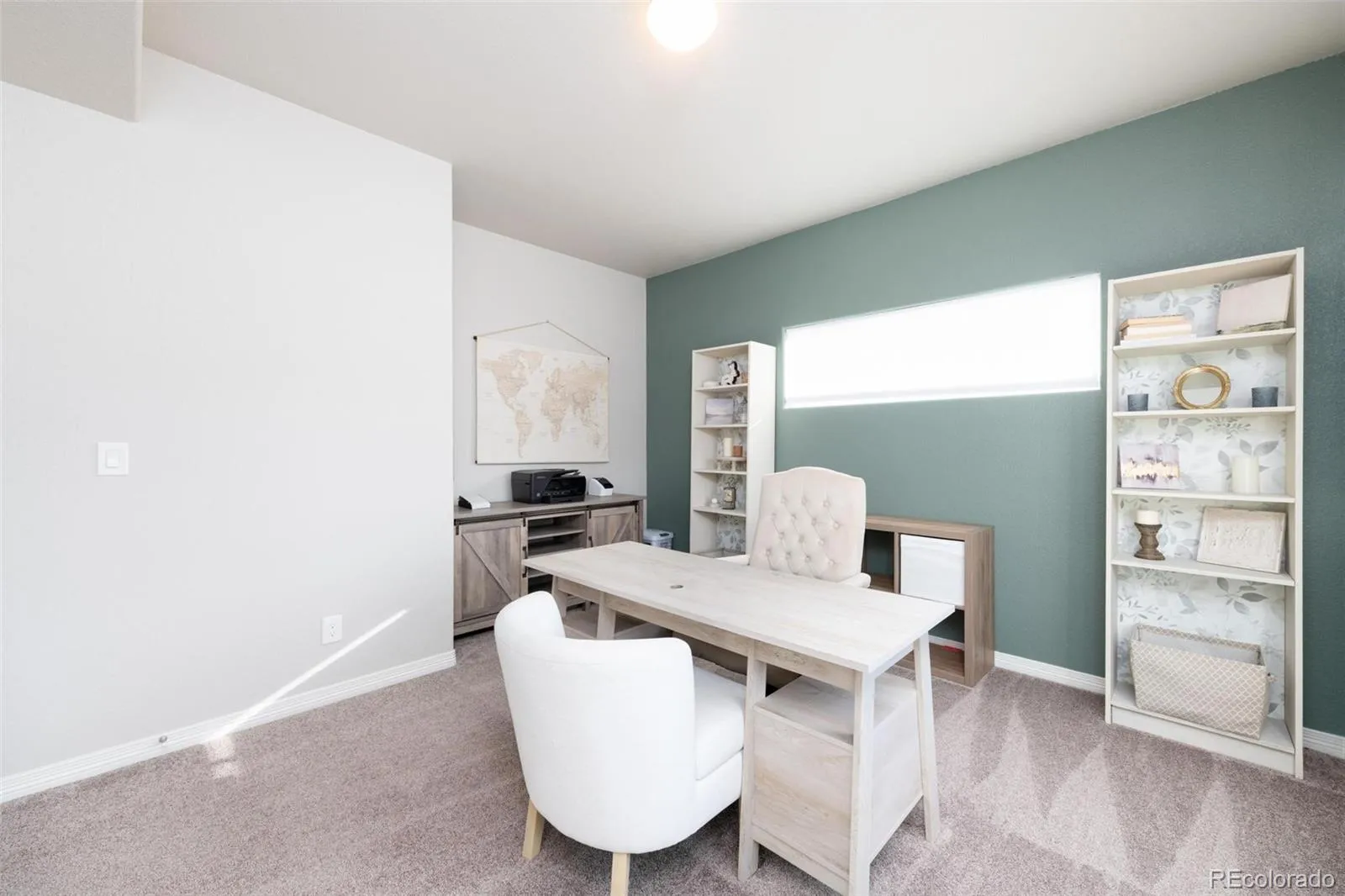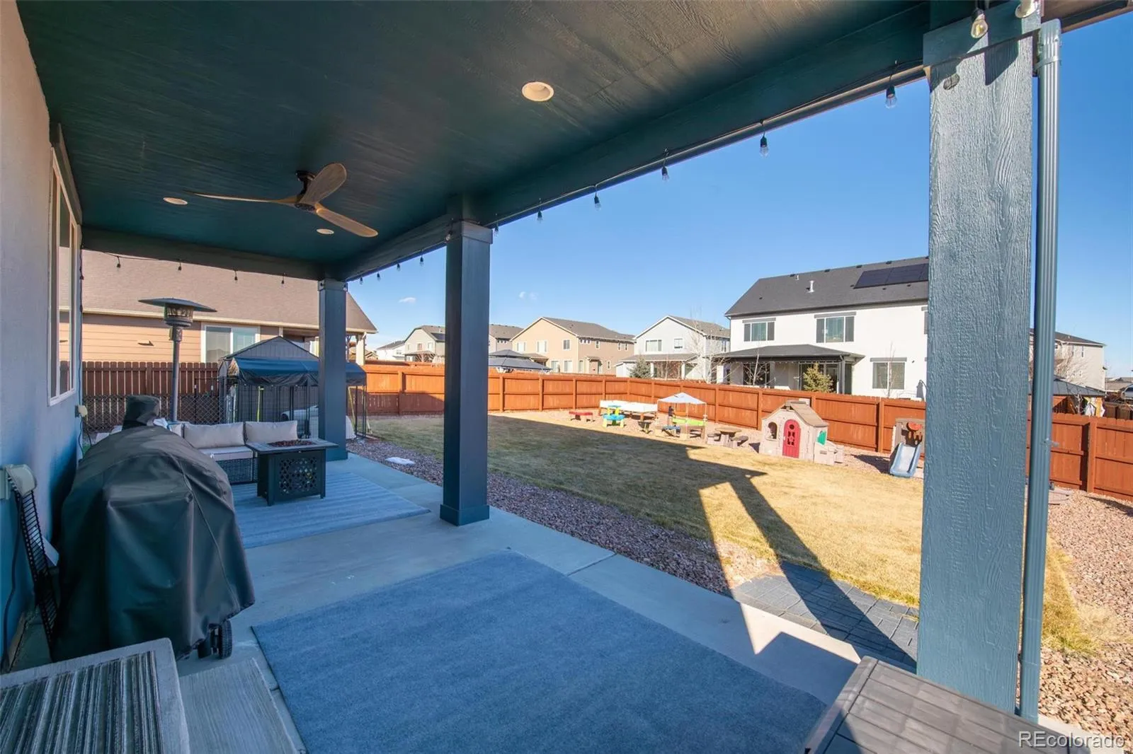 Welcome to this expansive 3,862 sq ft home built in 2020. This home offers extended living spaces across all three finished levels. The main level welcomes you with a bright entryway, private office, half bath, and a spacious living area with an electric fireplace. The kitchen is both stylish and functional, featuring quartz countertops, a large center island, 42″ upper cabinets, a walk-in pantry, and a dedicated dining area complete with a built-in buffet. Additional upgrades include a reverse osmosis water system under the sink and a whole-home water filtration and softener system. Upstairs, the primary suite is a true retreat, boasting a luxurious five-piece bath, a double vanity with quartz counters, and an expansive walk-in closet. Three additional bedrooms, 2 full bathrooms, and a laundry room complete the upper level. Blackout blinds in all bedrooms and the living room provide comfort, privacy, and energy efficiency. The fully finished basement adds exceptional flexibility with a large great room, exercise or flex space, two additional bedrooms—each with a walk-in closet—and a full bath, making it ideal for guests or multi-generational living. This home is equipped with premium health, comfort, and security features including a radon mitigation system, UV light filter in the furnace, whole-home humidifier, and a security system. Outdoor living shines with an extended covered patio measuring 29′ x 11′, complete with a ceiling fan. The fenced yard features a dog run, and storage shed. Completing the property is an oversized, fully insulated 5-car garage with a heater making it comfortable for year-round use, storage, or workshop needs. Located in the desirable Meridian Ranch community, this home offers an easy commute to military installations and access to exceptional neighborhood amenities including hiking and biking trails, a golf course, and two recreation centers featuring full gyms, childcare, and both indoor and outdoor pools.