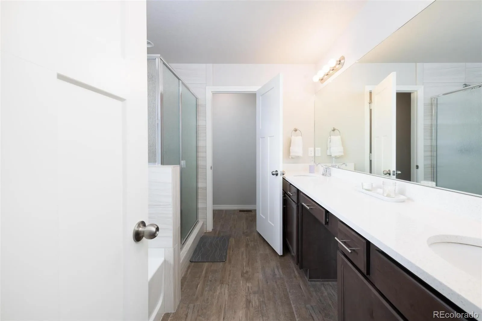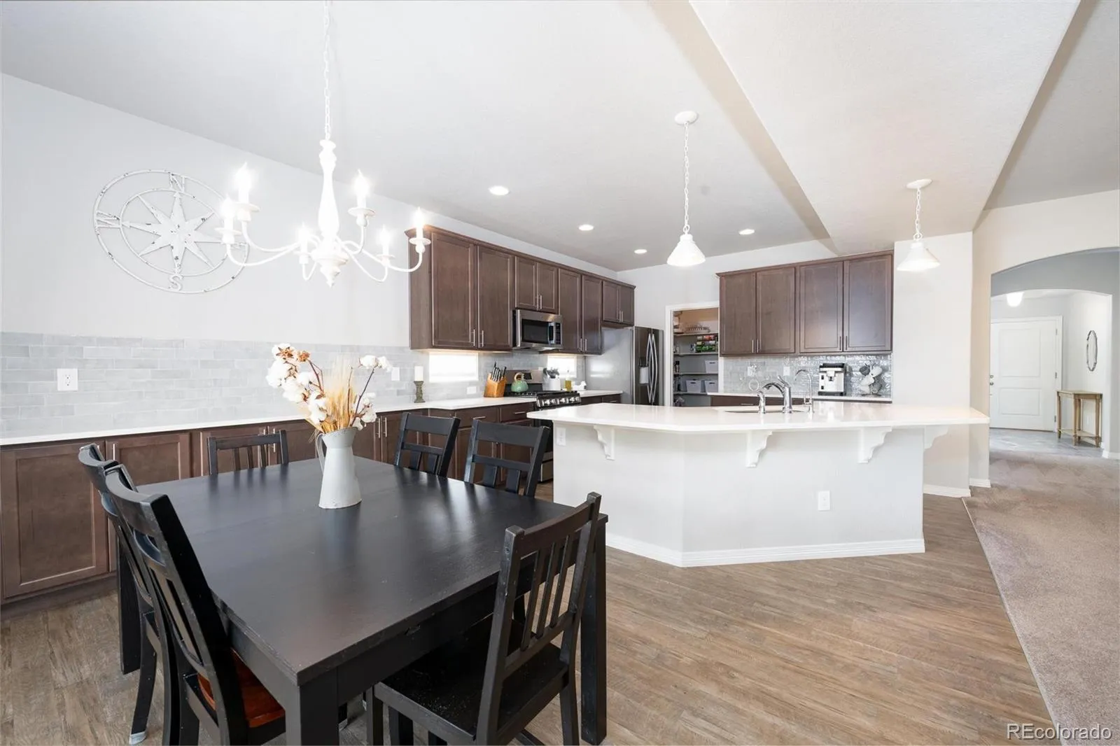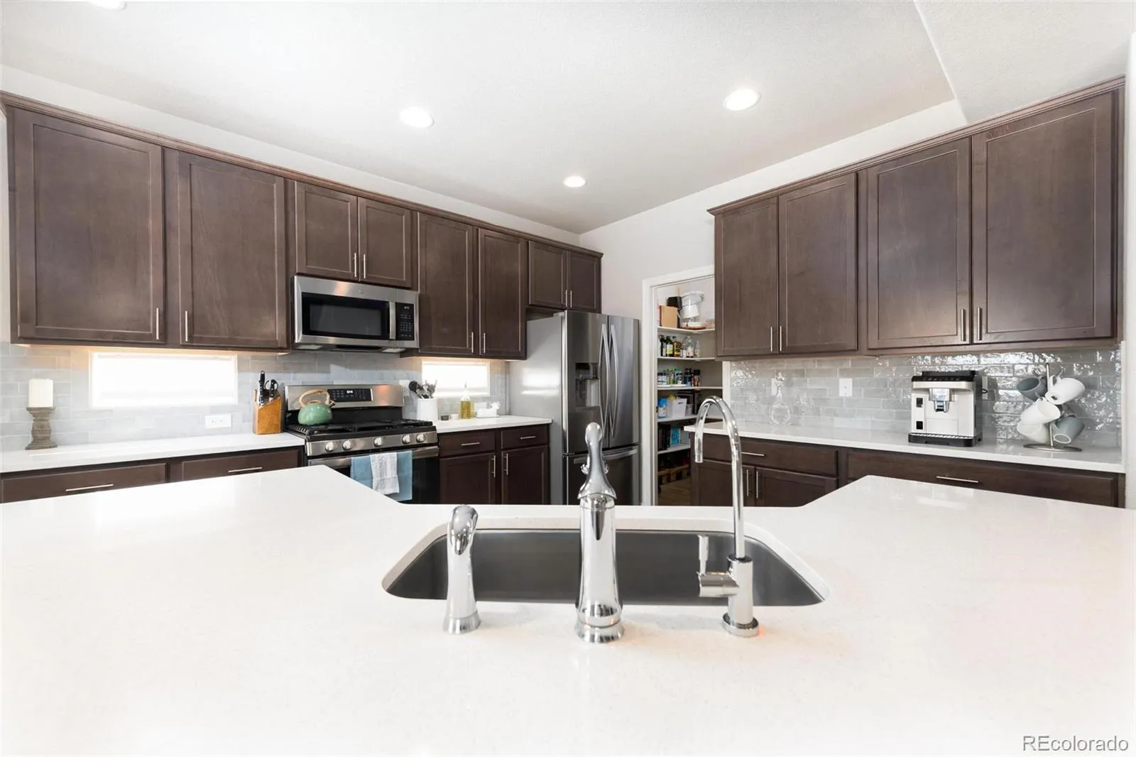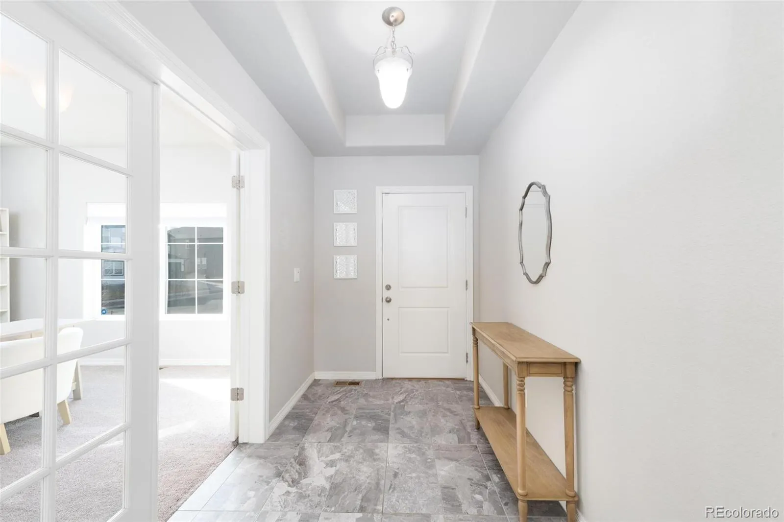 Welcome to this expansive 3,862 sq ft home built in 2020. This home offers extended living spaces across all three finished levels. The main level welcomes you with a bright entryway, private office, half bath, and a spacious living area with an electric fireplace. The kitchen is both stylish and functional, featuring quartz countertops, a large center island, 42″ upper cabinets, a walk-in pantry, and a dedicated dining area complete with a built-in buffet. Additional upgrades include a reverse osmosis water system under the sink and a whole-home water filtration and softener system. Upstairs, the primary suite is a true retreat, boasting a luxurious five-piece bath, a double vanity with quartz counters, and an expansive walk-in closet. Three additional bedrooms, 2 full bathrooms, and a laundry room complete the upper level. Blackout blinds in all bedrooms and the living room provide comfort, privacy, and energy efficiency. The fully finished basement adds exceptional flexibility with a large great room, exercise or flex space, two additional bedrooms—each with a walk-in closet—and a full bath, making it ideal for guests or multi-generational living. This home is equipped with premium health, comfort, and security features including a radon mitigation system, UV light filter in the furnace, whole-home humidifier, and a security system. Outdoor living shines with an extended covered patio measuring 29′ x 11′, complete with a ceiling fan. The fenced yard features a dog run, and storage shed. Completing the property is an oversized, fully insulated 5-car garage with a heater making it comfortable for year-round use, storage, or workshop needs. Located in the desirable Meridian Ranch community, this home offers an easy commute to military installations and access to exceptional neighborhood amenities including hiking and biking trails, a golf course, and two recreation centers featuring full gyms, childcare, and both indoor and outdoor pools.