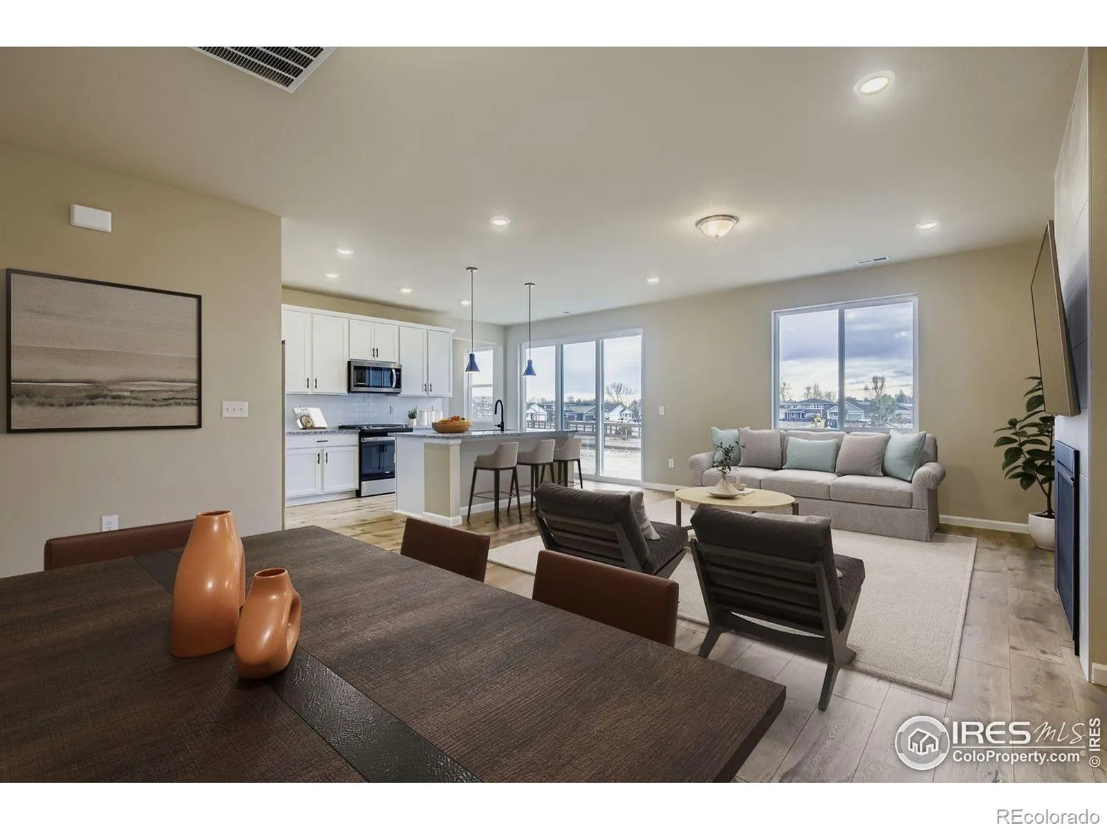 Welcome to 1821 Cord Grass, a thoughtfully designed home in the sought after Country Club Reserve community with no Metro Tax. Enjoy a peaceful, open setting while staying close to Old Town Fort Collins, local dining, and everyday conveniences. This quick move in home offers the ease of first floor living with a full bedroom and bathroom on the main level, ideal for guests, a home office, or flexible daily use. The open concept layout is warm and inviting, centered around a cozy gas fireplace and flowing seamlessly into the kitchen. The chef inspired kitchen features cotton white soft close cabinetry, quartz countertops, matte black finishes, and a gas range, creating a stylish and functional space for both cooking and entertaining. Upstairs, a spacious loft provides additional living space perfect for a media room, workspace, or relaxation area. Nine foot ceilings throughout enhance the open and airy feel of the home. Step outside to a private backyard that backs to open space, offering peaceful views and a sense of separation. The tandem three car garage adds valuable storage or room for hobbies and gear. With planned walking paths, open areas, and a setting that balances comfort with modern design, this home delivers everyday convenience in a welcoming community. This home is move in ready!