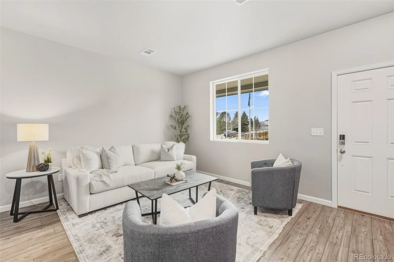 A spacious front porch welcomes you in—perfect for morning coffee or relaxing in the sunshine. Inside, the great room flows seamlessly into the L-shaped kitchen, complete with a pantry and space for a dining table. The main level also features a powder room, convenient under-stair storage, and direct access to the 2-car garage.