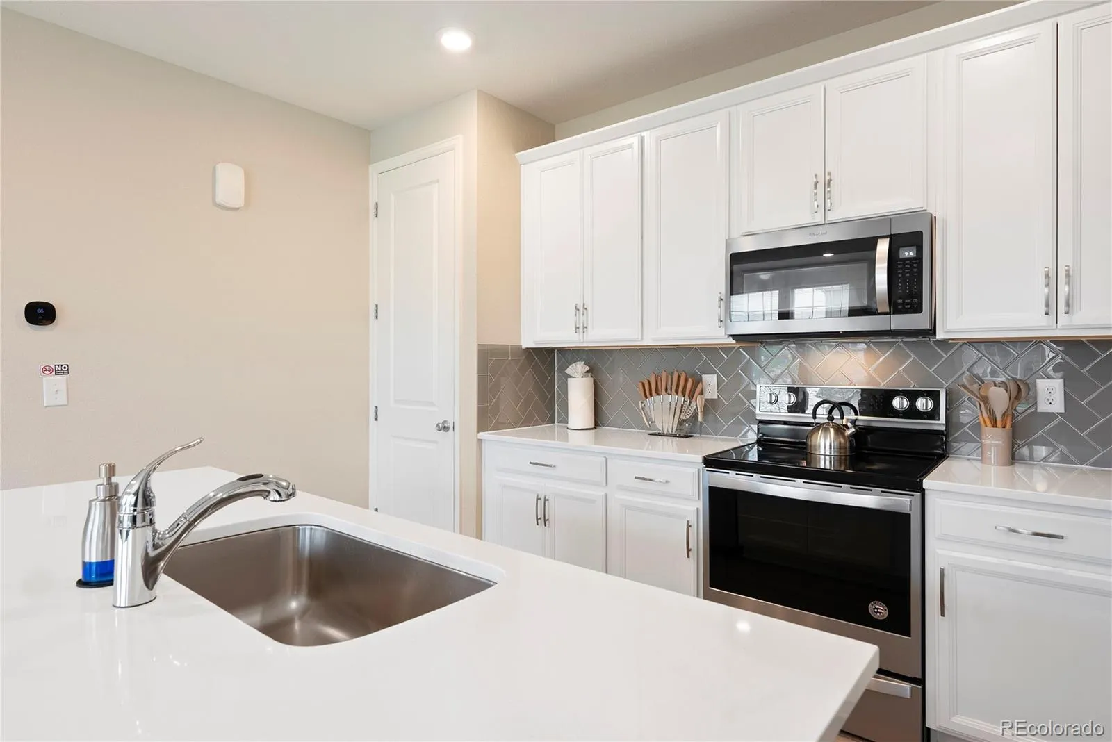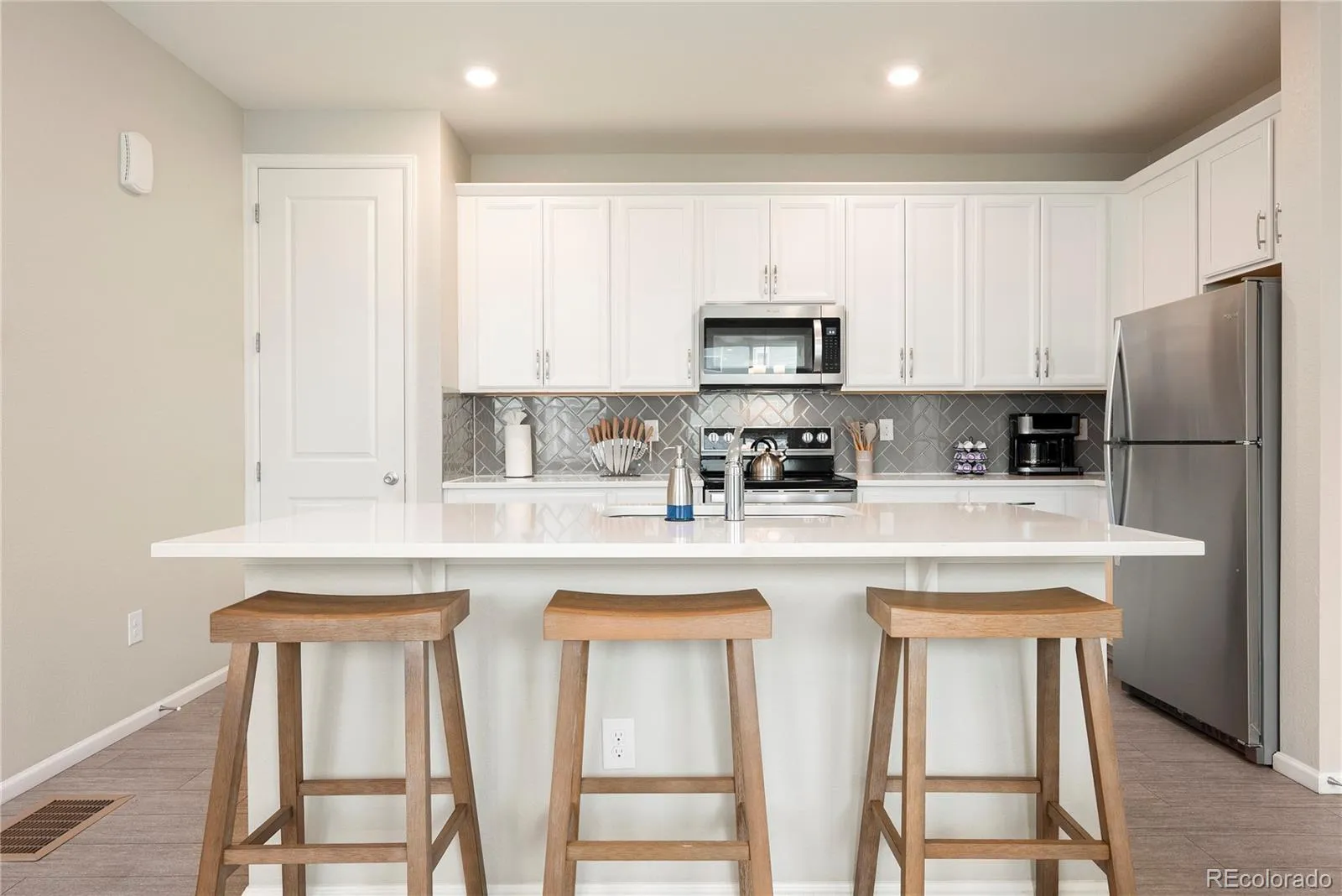 shaker cabinets, quartz countertops, stainless steel appliances, and a walk-in pantry built for real life. Working from