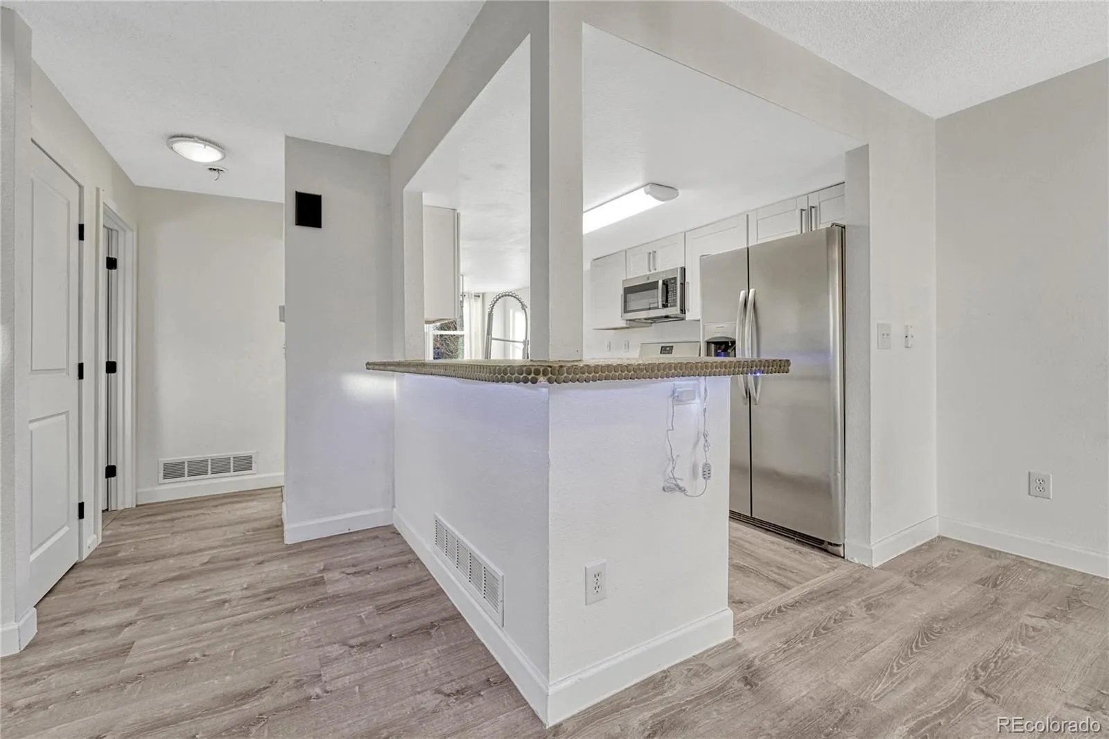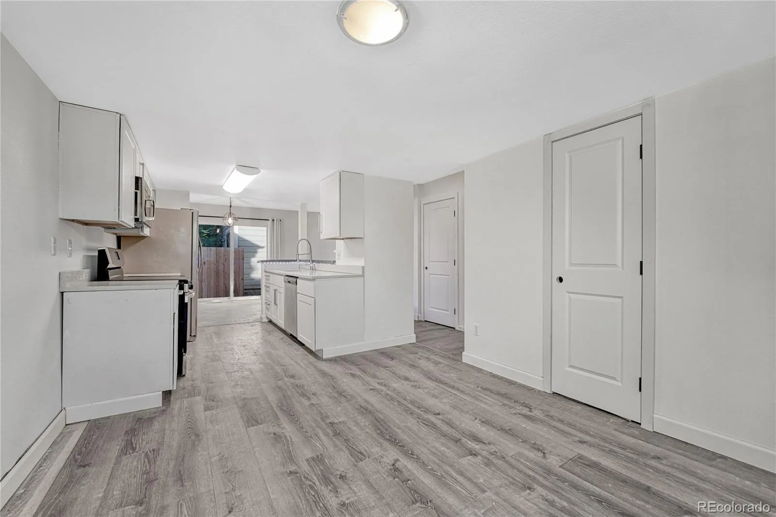 Here is your chance to buy a single family home with a small fenced in backyard/patio AND a basement. Walk to the grocery store, restaurants and public transportation. The Nine Mile Station (Park and Ride) is minutes away. This newly updated and renovated single family home has three bedrooms and three bathrooms. Dining room, family room with vaulted ceiling and skylights. Fireplace with stone front. The main floor has a bedroom or a study…very flexible space. Upstairs there are two large bedrooms…each with their own bath. The primary bedroom has an ensuite with a large tub and new vanity/ dual sinks. The second bedroom has an updated ensuite 3/4 bath. There is an updated powder bath on main floor. Newer windows, flooring, cabinets, appliances and countertops. New doors and hardware with a new vanity as well. There is NEW modern black staircase railing. The basement has 8 1/2 foot tall ceilings and a conforming window for an additional bedroom. Basement could easily have a bathroom making this a finished space that you could add value to your home. There is a large private backyard with new 6ft fence, a perfect space for kids or your fur baby. Located strategically to have easy access to I225 for a quick commute to DIA and DTC. Parents will love the schools as they are in Cherry Creek School District.