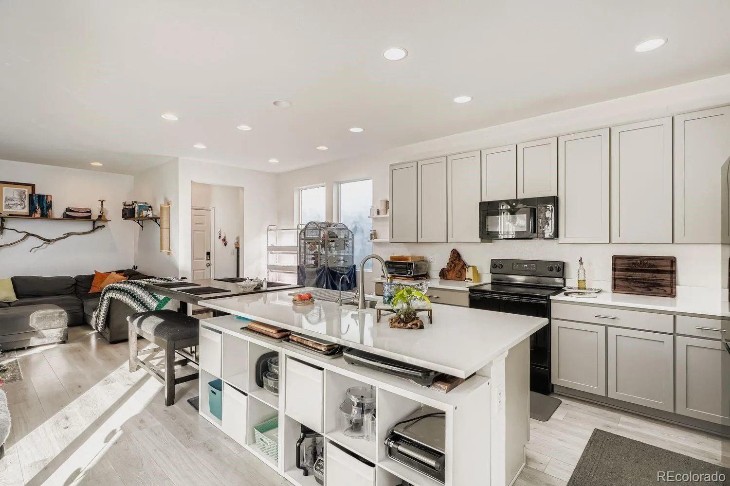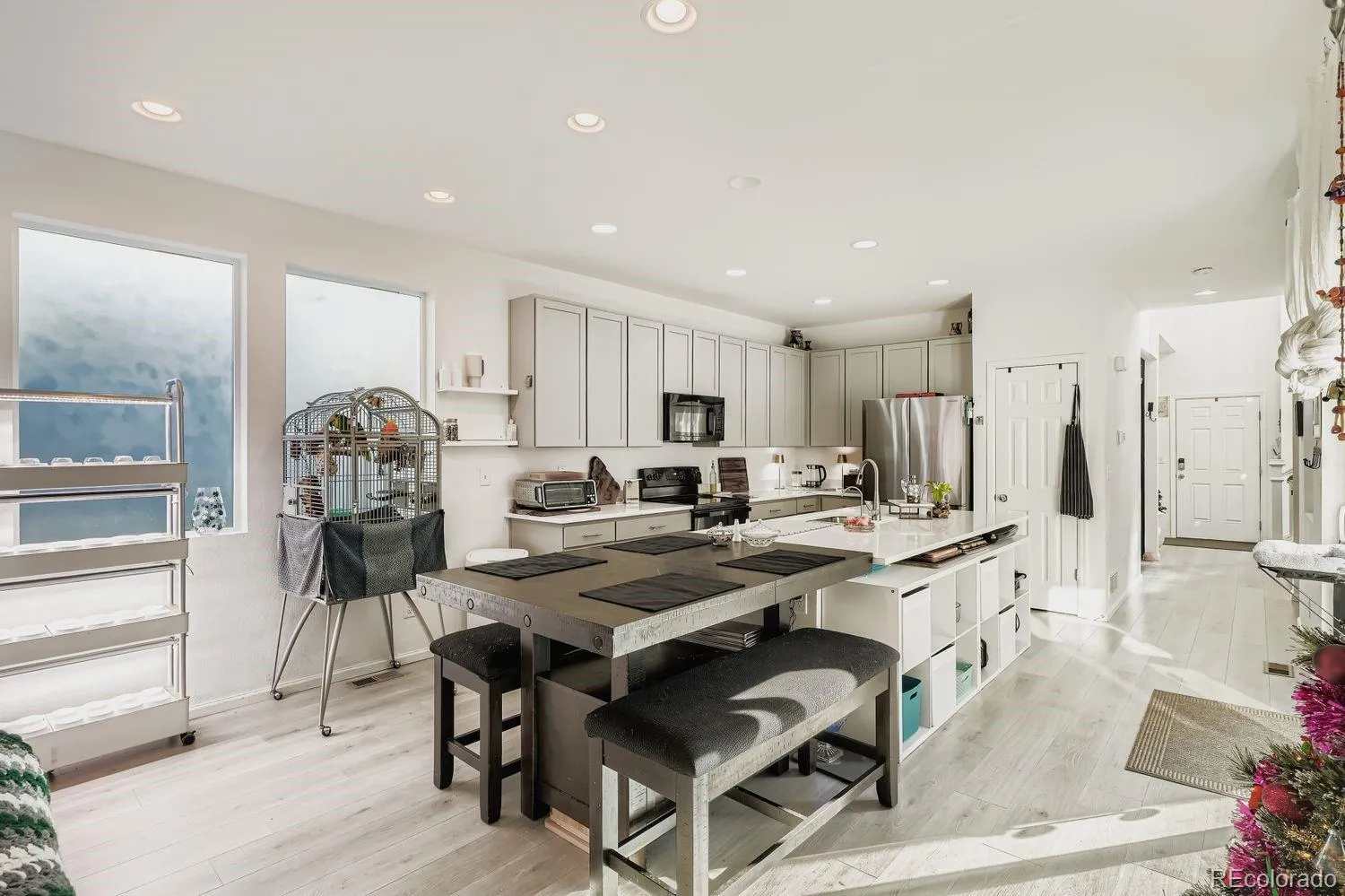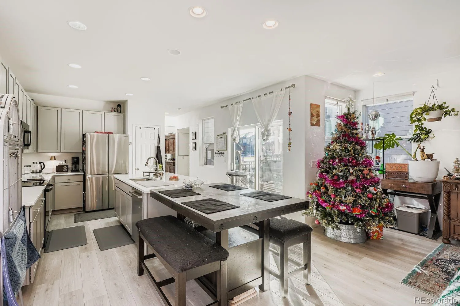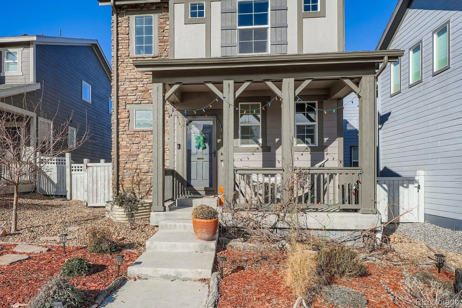 Welcome home to this fabulous 2021 home that is filled with abundant east and south-facing natural light, perfect for plant lovers and quicker snow melt. This thoughtfully designed home blends beautiful finishes, smart upgrades, low-maintenance living, comfort, functionality, and modern convenience to fit anyone’s lifestyle. The state-of-the-art kitchen flows seamlessly into the main living area, and is ideal for everyday living and entertaining. The kitchen island and counters glimmer with white quartz, and the island has bar seating and extra storage adding to the already-generous storage space. The natural light pours through the home and highlights the eye-catching staircase that opens to a cozy loft, perfect for a gaming area, media space, or additional lounge. A dedicated downstairs office is ideal for remote work, home library, etc. The spacious primary suite is drenched in natural light, and includes a custom closet, offering style and thoughtful organization. Smart convenience continues with keyless garage entry and keyless front door entry with fingerprint access, combining ease and security. The solar panels reduce energy costs and improve energy efficiency. The deliberately designed outdoor space features mostly drought-tolerant landscaping that provides vibrant summer color with little upkeep. A peaceful garden area in the side yard is accessible through the glass sliding door just feet from the kitchen, and opens to a patio perfect for a grill and outdoor dining. Irrigated raised garden boxes make it easy to grow flowers, herbs, or vegetables. The nearby walking paths in this welcoming neighborhood are perfect for enjoying the outdoors, and nature lovers will never tire of being just a short drive from the Rocky Mountain Arsenal National Wildlife Refuge. This prime location is close to Denver International Airport, the Gaylord, Costco, and restaurants. You’ll also benefit from a new Target and recreation center coming soon.