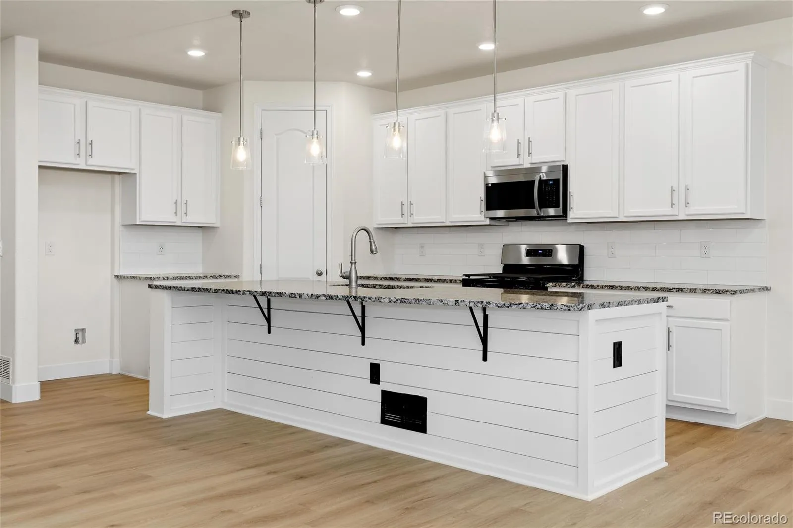 The gourmet kitchen features granite countertops, a large island, stainless steel appliances, a pantry, and direct access to the elevated deck through the adjoining dining area—ideal for outdoor meals, morning coffee, and Colorado sunsets. A built-in office nook and easy access to the oversized FOUR-car garage add daily convenience. A Full Walk-out basement brings a lot of options for your family!