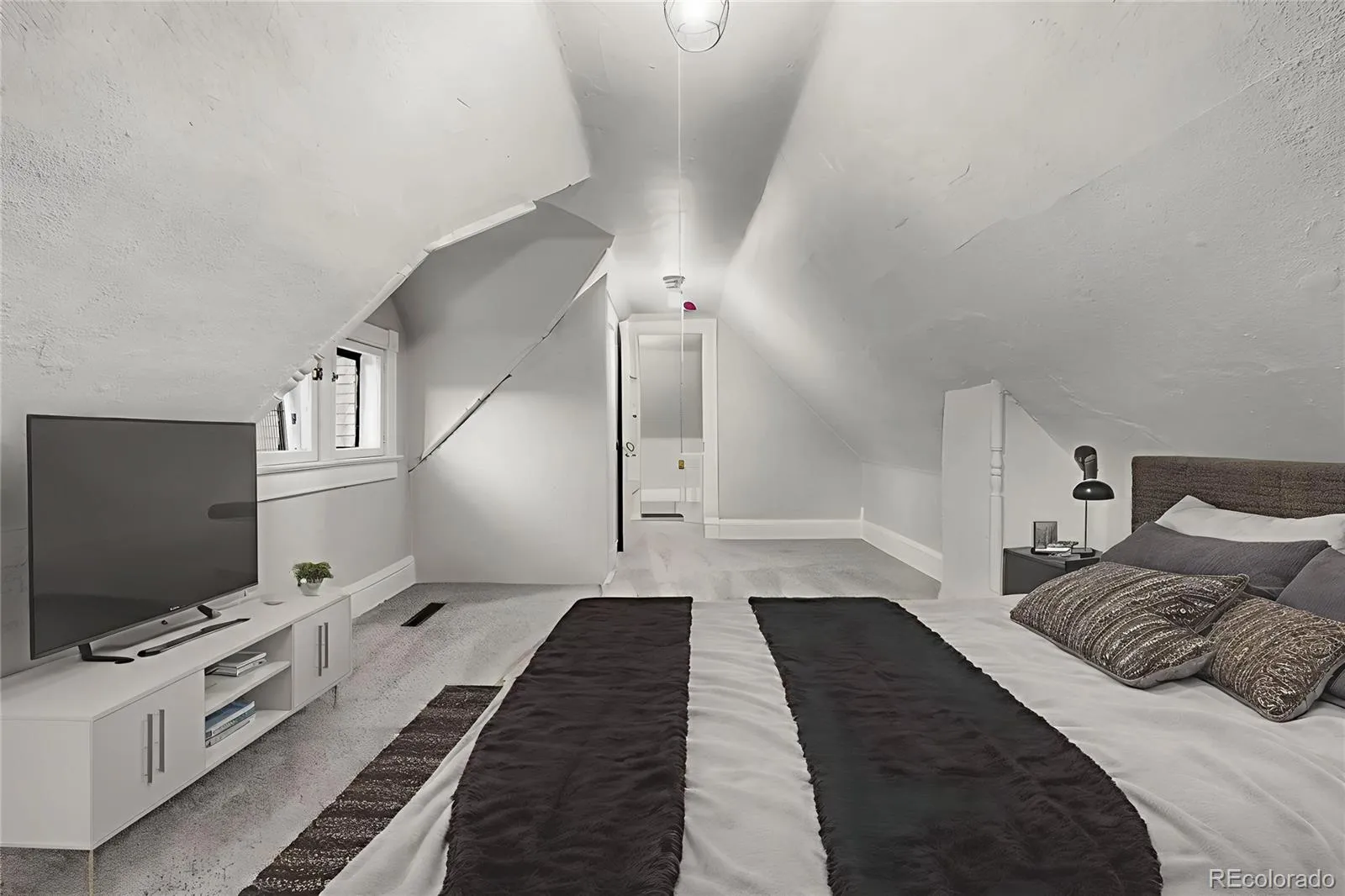 Step inside to find fresh interior finishes including new flooring, updated lighting, and a remodeled kitchen with stone countertops, sleek cabinetry, and stainless appliances. The full bathroom has been renovated with timeless tile work, gold accents, and a skylight that fills the space with natural light. Upstairs, the second bedroom offers unique character and bonus flex space—ideal for a home office, reading nook, or creative studio.
