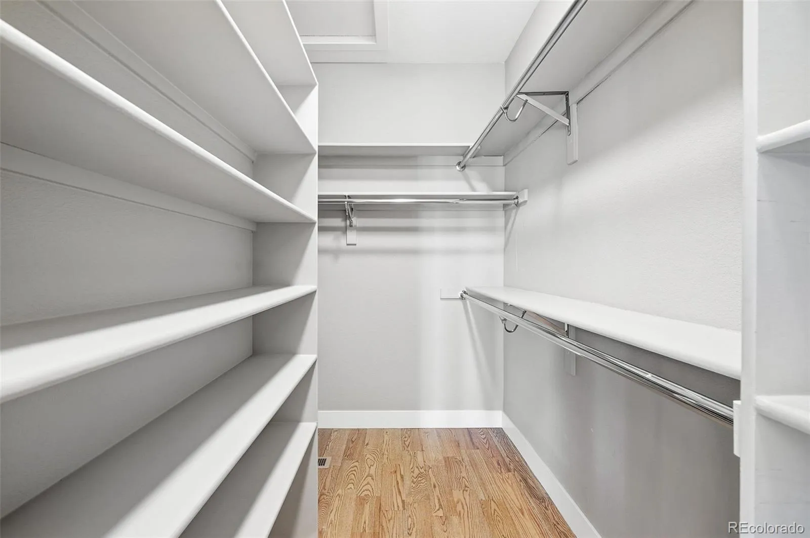 The welcoming primary suite includes dual walk-in closets and a spa-like bathroom with an oversized walk-in shower, rainfall fixture, pebble flooring, and elegant stone and tile finishes.
