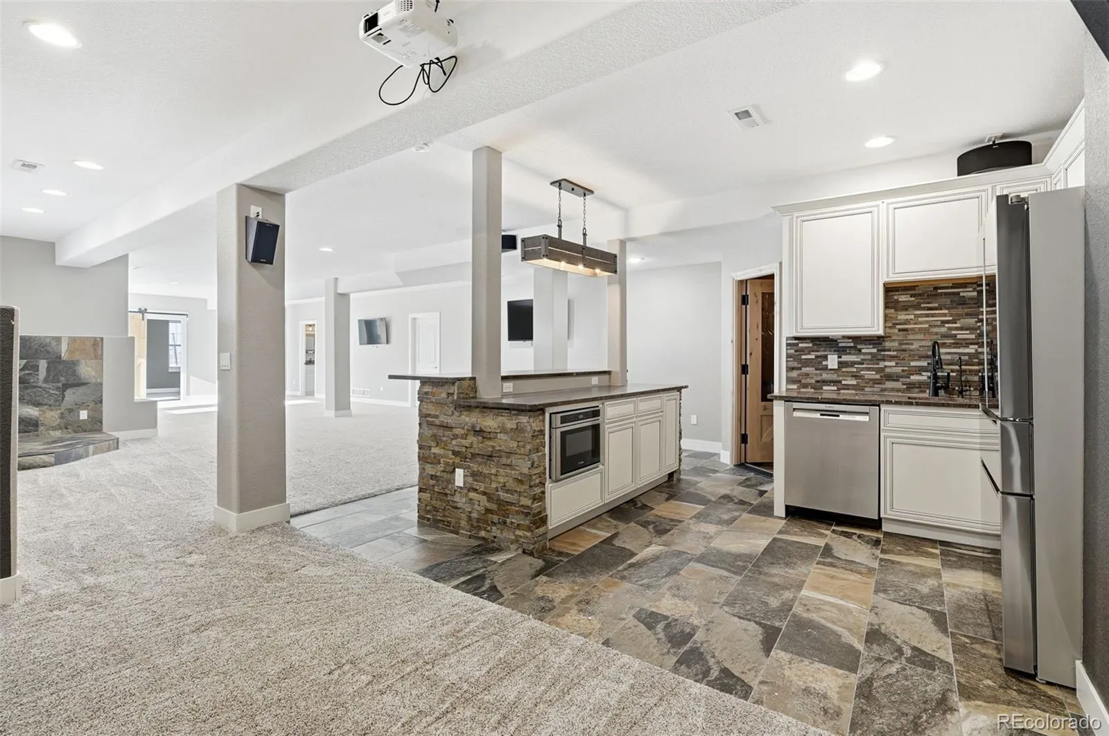The finished walk-out basement serves as an exceptional entertainment level, complete with a full wet bar featuring stone accents and new appliances, a dedicated wine room, and a home theater with projector—ideal for game nights. This level also provides an additional bedroom, bathroom, and a fitness room that can easily be converted to a 5th bedroom.
