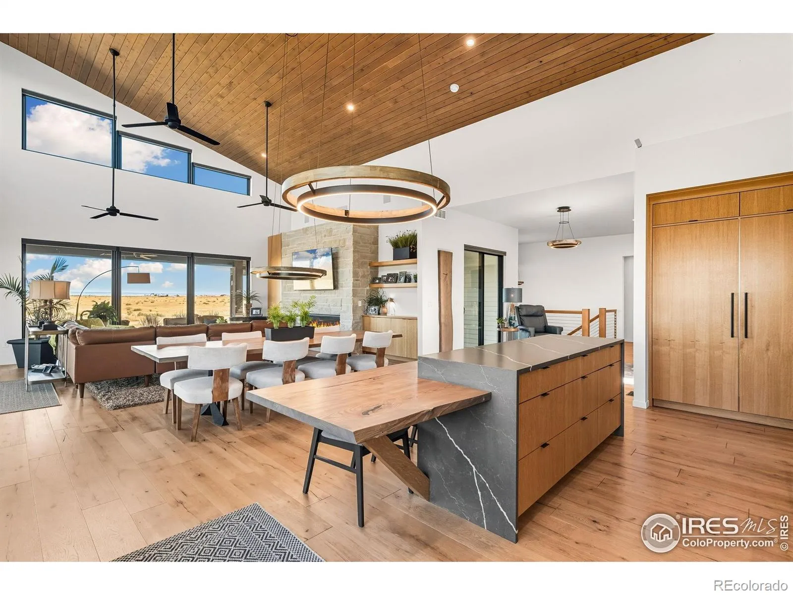 Discover an extraordinary 8-acre retreat in Wellington, where sweeping mountain views meet refined luxury and wide-open space. At the center of this pristine property sits a stunning custom home, crafted by award winning Buer Homes, nearly 4,000 sq. ft. of exceptional craftsmanship and comfort.The main level features two spacious en suite bedrooms, each with its own private outdoor seating area-perfect for morning coffee or quiet evenings taking in the panoramic scenery. A professional, light-filled office provides inspiring views of the surrounding farmland, creating an ideal setting for working from home. The great room boasts soaring ceilings and a wall of windows that give the home a grand feel, while a natural stone fireplace creates a cozy and inviting atmosphere. The chef’s kitchen is a true showpiece, thoughtfully designed with high-end appliances including a gourmet built-in coffee maker, ice maker and wine fridge. High quality quartersawn white oak cabinetry is a feast for the eyes, not only for its exceptional quality but meticulously matched wood grain. The abundance of storage is truly remarkable including a walk-in pantry with thoughtful built-ins for easy organizing. This kitchen is suited for both everyday cooking and entertaining on a grand scale. The expansive basement extends the home’s living space with a large recreation room, dedicated exercise room, spacious bathroom, and a guest bedroom-offering comfort and privacy for visitors.Completing this remarkable property is a 2400sf outbuilding equipped with a heated shop. With ample electricity for large scale power tools, a half bathroom, and an impressive heated RV parking garage this space is perfect for hobbyists, storage, or business use.A rare blend of luxury, functionality, and breathtaking surroundings, this Wellington estate is a one-of-a-kind opportunity for those seeking space, serenity, and impeccable design.