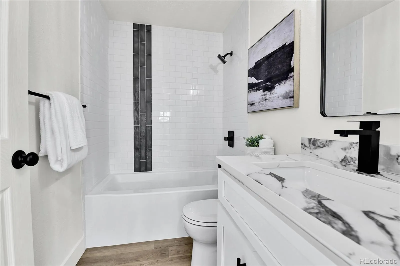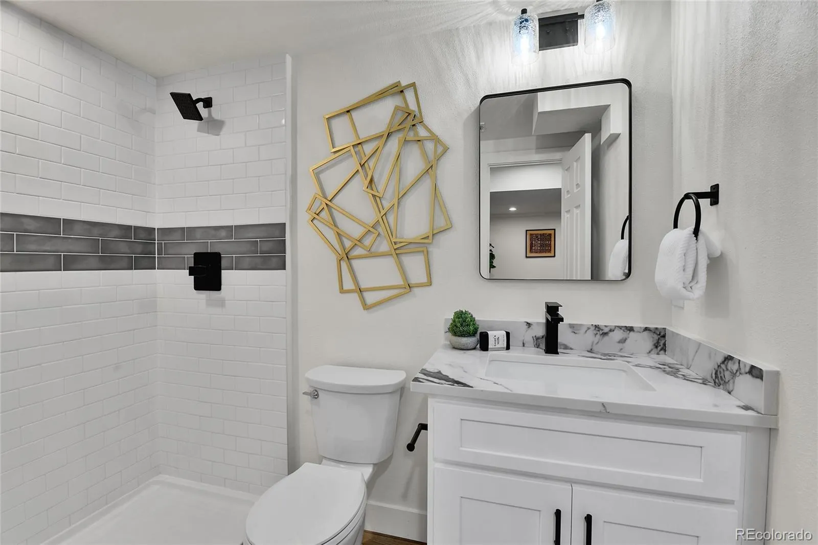 Welcome to this three-bedroom, two-bathroom home in Montbello. This beautifully remodeled home sits on a huge lot and offers ample amounts of upgrades. From fresh interior and exterior paint, new luxury vinyl plank flooring, new lighting, and more, this home is truly move-in ready! Upon entering, you will be greeted by the living room. Enjoy the luxury vinyl plank flooring, stunning accent wall, and large window allowing light to pour in. Venture to the kitchen, which is truly a dream. Enjoy the spacious quartz countertops, ample amounts of cabinetry, and open concept, allowing you to cook while still enjoying company. Plus, all brand-new, stainless steel appliances are included! The primary bedroom is conveniently located on the main level and offers plenty of space and natural light, easy access to a bathroom, and a sliding glass door leading to the deck and large backyard. The updated bathroom and second bedroom complete the main level, offering plenty of space. Head downstairs to the finished basement, where you will find an additional living room. This spacious area is great for entertaining friends and family, and offers brand-new, plush carpet flooring. A bonus room is also found in the basement, great for just about anything, including a sitting room, game room, movie room, or a kids playroom…the possibilities are endless! The third bedroom also features brand-new, plush carpet flooring and offers plenty of space, and easy access to the second updated bathroom. But wait, there’s more! Head outside to the backyard, where you will find a spacious, brand-new deck. With easy access to anywhere, it is perfect for outdoor entertainment. You will love the luxury of having a huge lot, great for anything you could imagine, and ideal for kids and pets! Prime location offering easy access to just about anywhere, including I-25, Downtown Denver, Denver International Airport, and plenty of shopping, dining and entertainment options. Don’t miss this amazing opportunity!