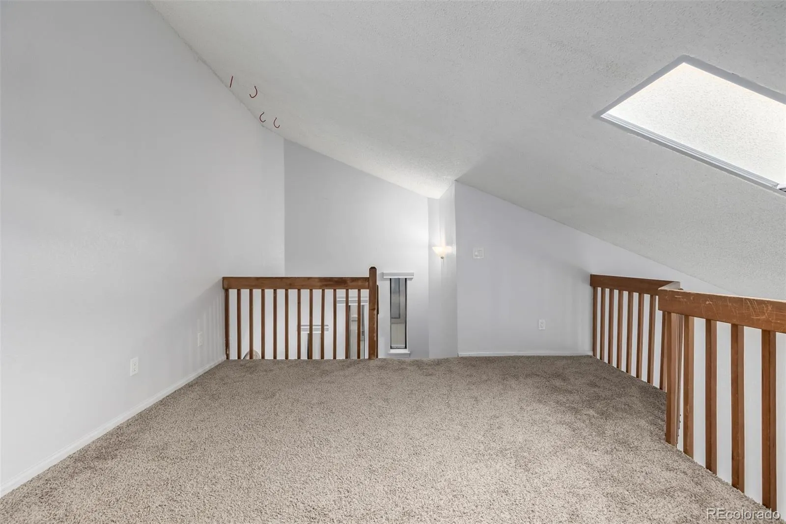 Home, sweet home—reimagined. Welcome to this exceptional top-floor, loft-style residence offering over 900 square feet of thoughtfully designed living space, available exclusively on the third floor. With soaring vaulted ceilings, an open-concept layout, and an oversized loft, this home lives like a true two-bedroom, a rare and highly desirable offering. The great room is serene and inviting, bathed in natural light from south-facing windows and enhanced by a soothing color palette, elegant sitting nook, and a refined blend of wood and tile flooring throughout the main level. The airy layout is ideal for both everyday living and intimate gatherings with friends and loved ones. The kitchen is both stylish and functional, featuring granite countertops, flat-panel wood cabinetry, stainless steel appliances, and a two-tier peninsula with breakfast bar seating, perfect for casual meals or entertaining. An adjacent dining area flows seamlessly into the living space, reinforcing the home’s open and welcoming design. The primary bedroom is a private retreat, highlighted by custom barn doors, a spacious walk-in closet, and direct access to a full bathroom appointed with granite countertops. Newer double-pane windows help maintain a comfortable interior climate year-round, adding efficiency and peace of mind. Above, the cozy yet expansive loft is illuminated by skylights and offers exceptional versatility—ideal as a guest suite, home office, media lounge, or second bedroom. Additional conveniences include an in-unit stackable washer and dryer. The well-maintained community features ample parking, manicured common areas, and a refreshing pool for warm summer days. Enjoy easy access to public transportation, shopping, dining, and major commuter routes including I-25, US-36 (Boulder Turnpike), I-76, and I-270. A rare combination of space, elegance, and location—this top-floor gem is not to be missed. Schedule your private showing today before this opportunity slips away.