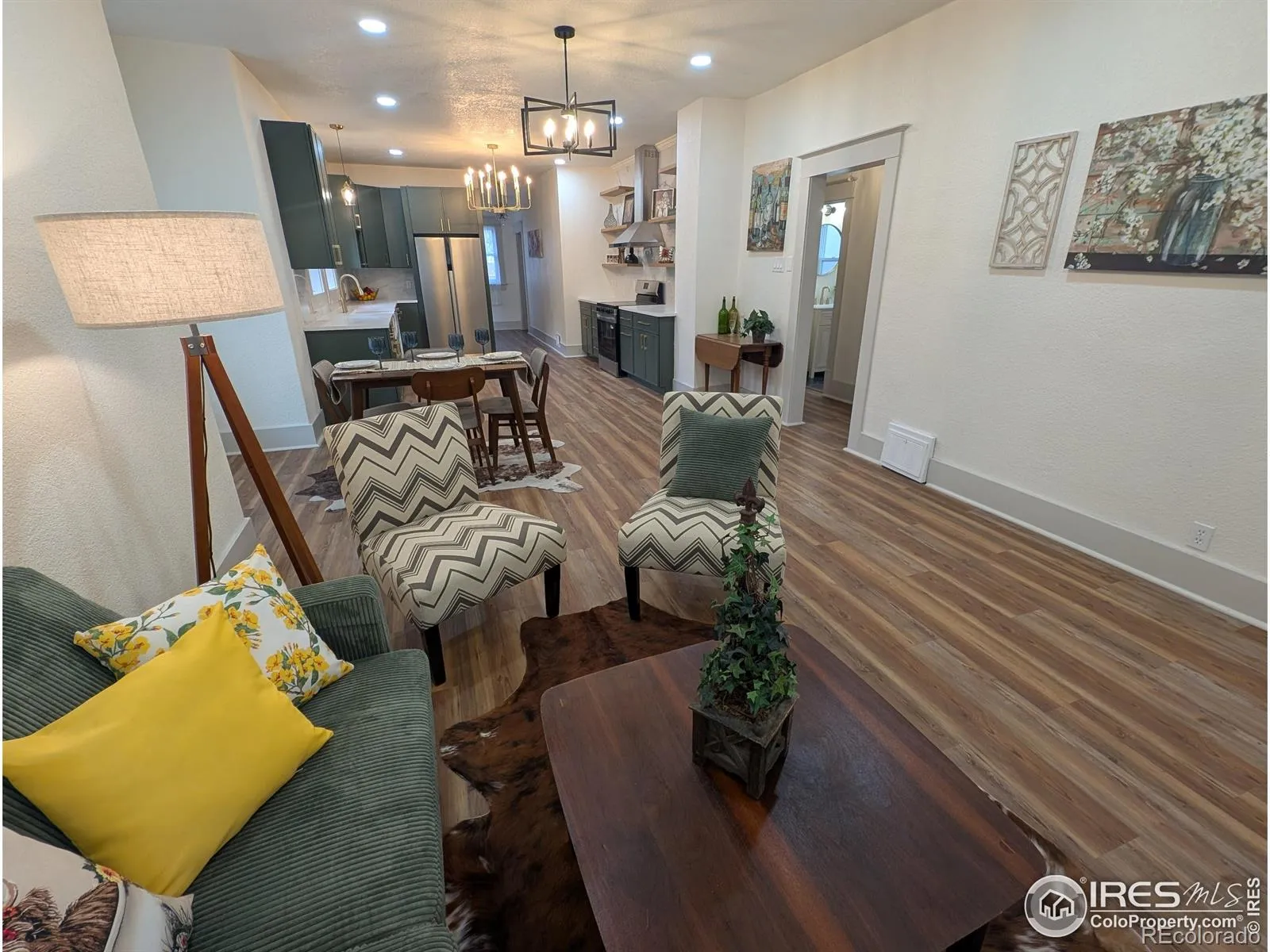Completely remodeled with thoughtful upgrades throughout, this home blends fresh modern finishes with functional space. Enjoy fresh interior and exterior paint, along with new windows and doors, and a welcoming covered front porch. The backyard is ready for your outdoor vision with a new concrete slab-ideal for entertaining or future upgrades. The interior has been transformed with a brand-new kitchen and bathrooms, featuring custom cabinetry, solid surface countertops, new appliances, and striking light fixtures that elevate every room. The layout includes three main-level bedrooms, plus a spacious basement with a fourth bedroom, utility room, and additional flex space. With off-street parking and alley access for RV parking or hobby storage, this home is both polished and practical.
