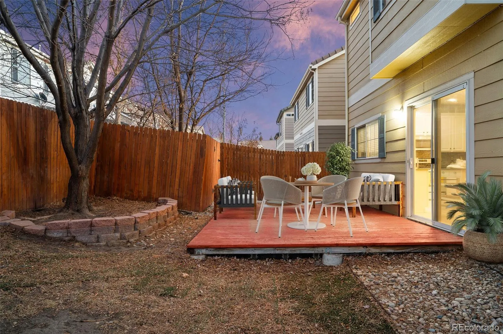 Outdoor spaces include a newly painted back deck and a cozy, private backyard, while the front features an attached two car garage for everyday convenience. Nearby Cherry Creek Valley Ecological Park provides access to scenic trails for walking, biking, and running, while public transit is just a short walk away.