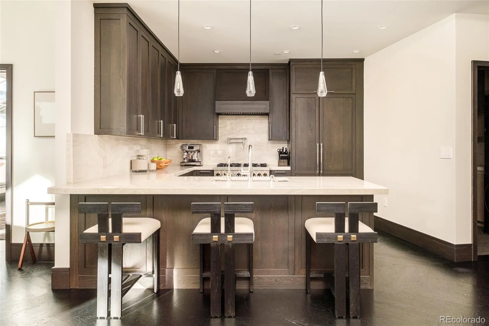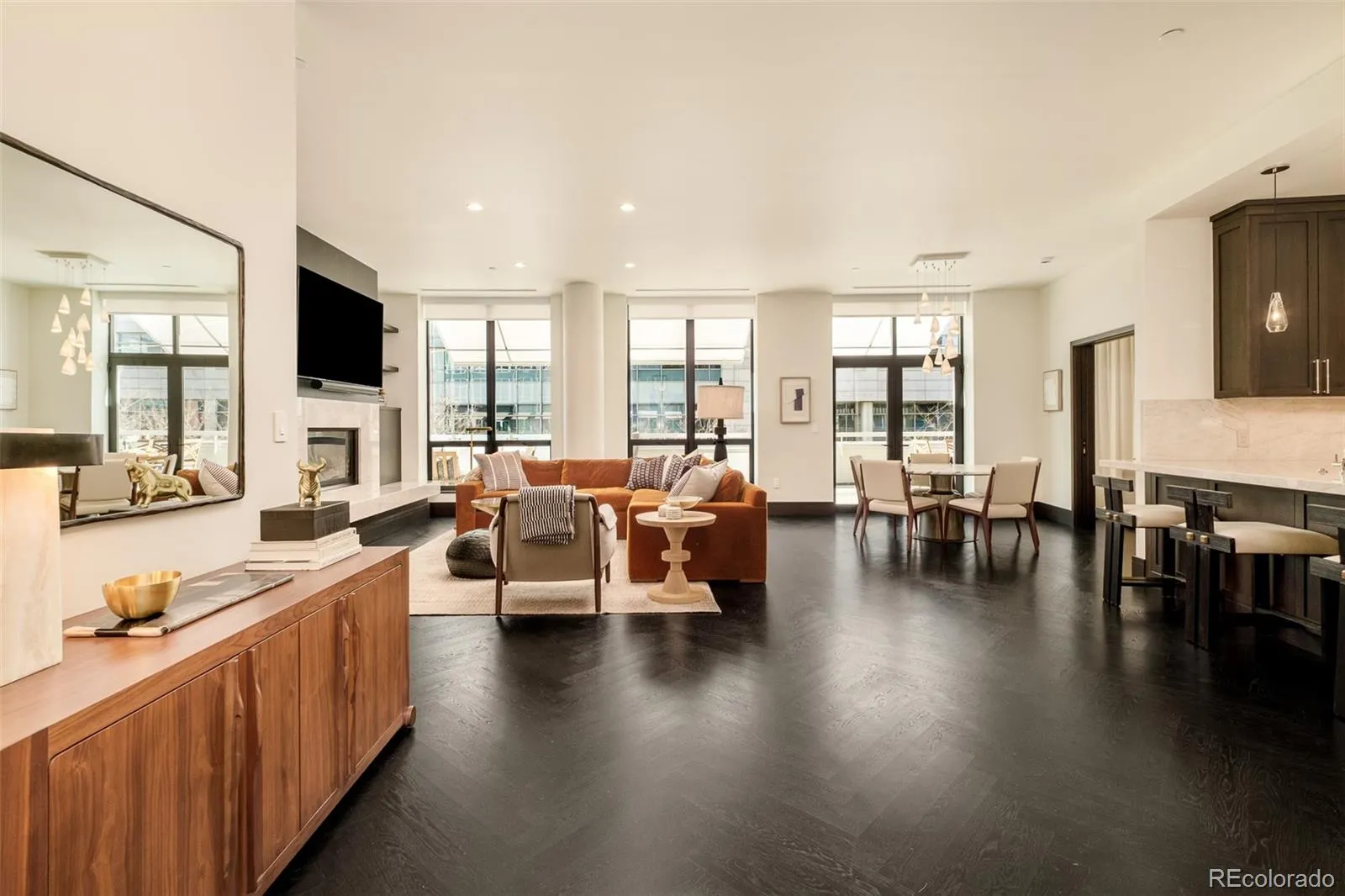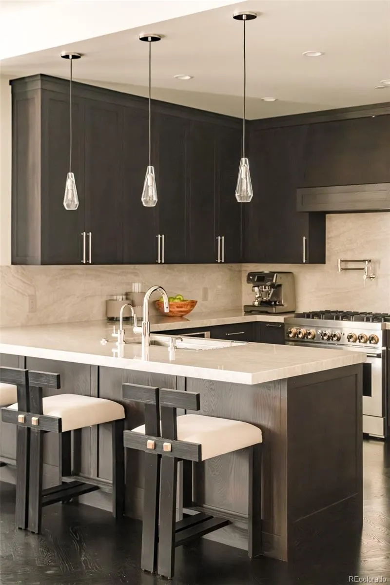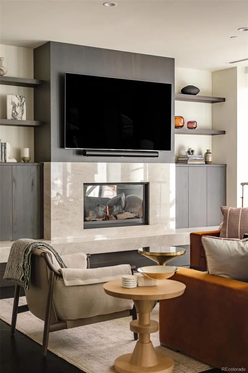 True Luxury whispers its arrival at North Creek, Cherry Creek North’s most coveted enclave, this 2 plus bed and 3 bath home underwent a bespoke transformation, completely rebuilt from the studs up with opulent high-end finishes throughout. The moment you are received through the foyer, the great room welcomes you with uncompromising quality, where custom lighting and gas fireplace encased in quartzite anchor warmth flowing into a dining area crowned by a dancing teardrop chandelier that transforms intimate gatherings into unforgettable occasions. This exquisite kitchen redefines culinary artistry with Jenn-Air gas range and appliances, precision Miele dishwasher, and quartzite surfaces while an eat-in island serves both solitary mornings and grand entertaining, adjoined with ample pantry, wet bar and Samsung smart laundry elevating every practical detail. The primary suite, a tranquil retreat illuminated by a stunning chandelier and elegant bedside pendants, features an ensuite boasting extensive marble finishes, spacious steam shower and gorgeous lighting opens directly onto your private 1000-square-foot patio—a Cherry Creek rarity—with new tile, irrigated landscape planters and complete outdoor kitchen featuring transformative Al Fresco grill, warming oven and refrigerator where new exterior canopies orchestrate light seamlessly integrating indoors and out. The gorgeous guest bedroom with ensuite including steam shower, floor to ceiling windows, elegant drapery, linen covered walls and floating marble vanity ensures every visitor experiences thoughtful luxury. A flexible snug adapts as private office or intimate den, adjoining powder room. Two deeded parking spaces plus dual storage complete this curated sanctuary. Nestled within Cherry Creek North’s protected community with 24-hour concierge—craftsmanship with soul, exclusivity with substance, functional beauty that enhances every day. Welcome to a narrative so rare it becomes irresistible. Furnishings negotiable